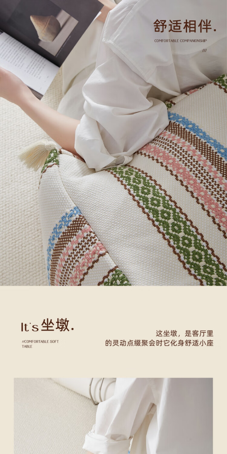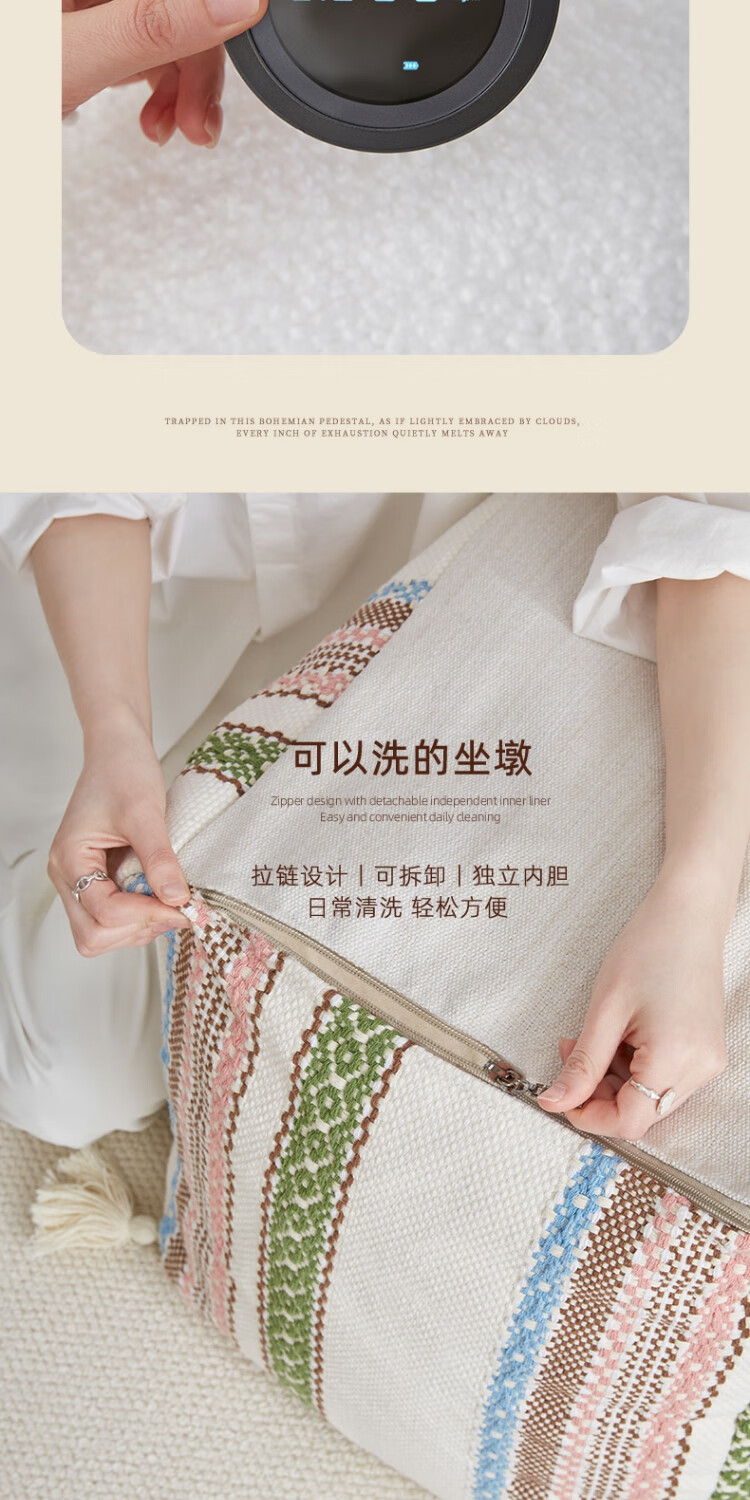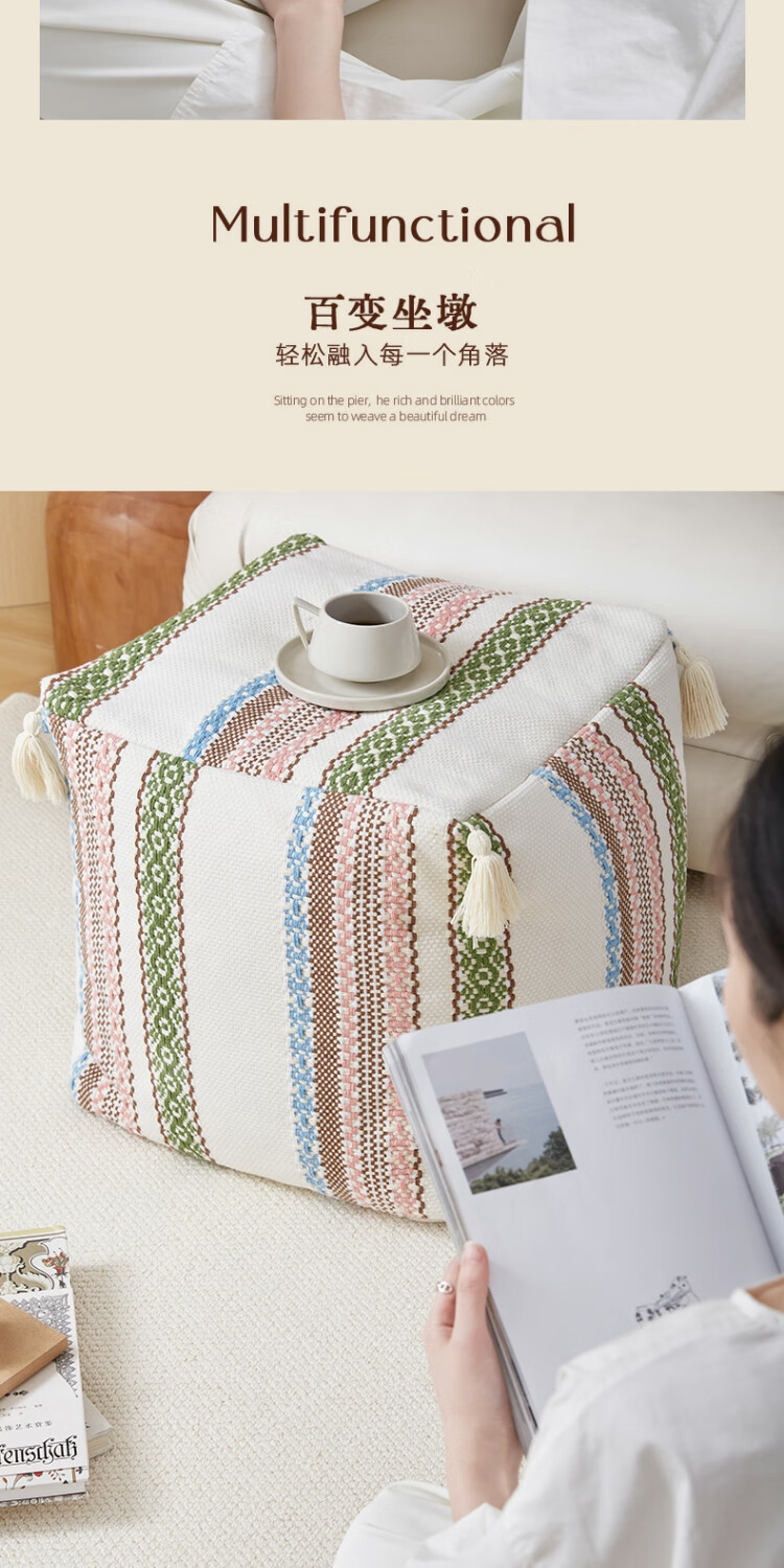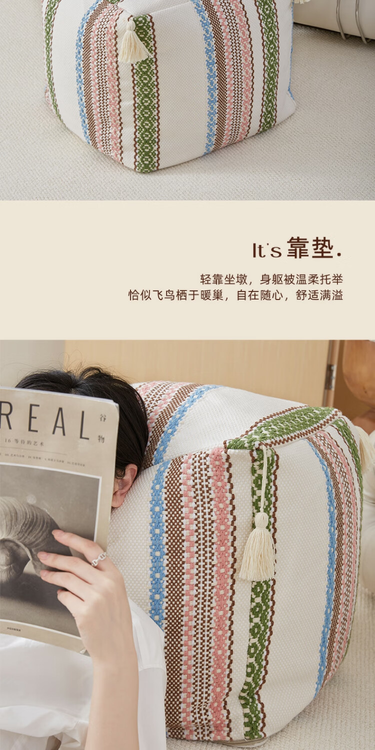京华中古波西米亚坐墩多用轻奢榻榻米客厅地上坐垫可拆洗懒人沙发蒲团 布拉诺 40*40*30