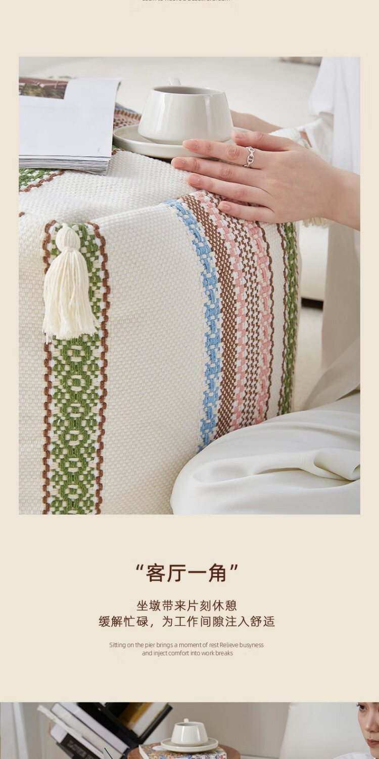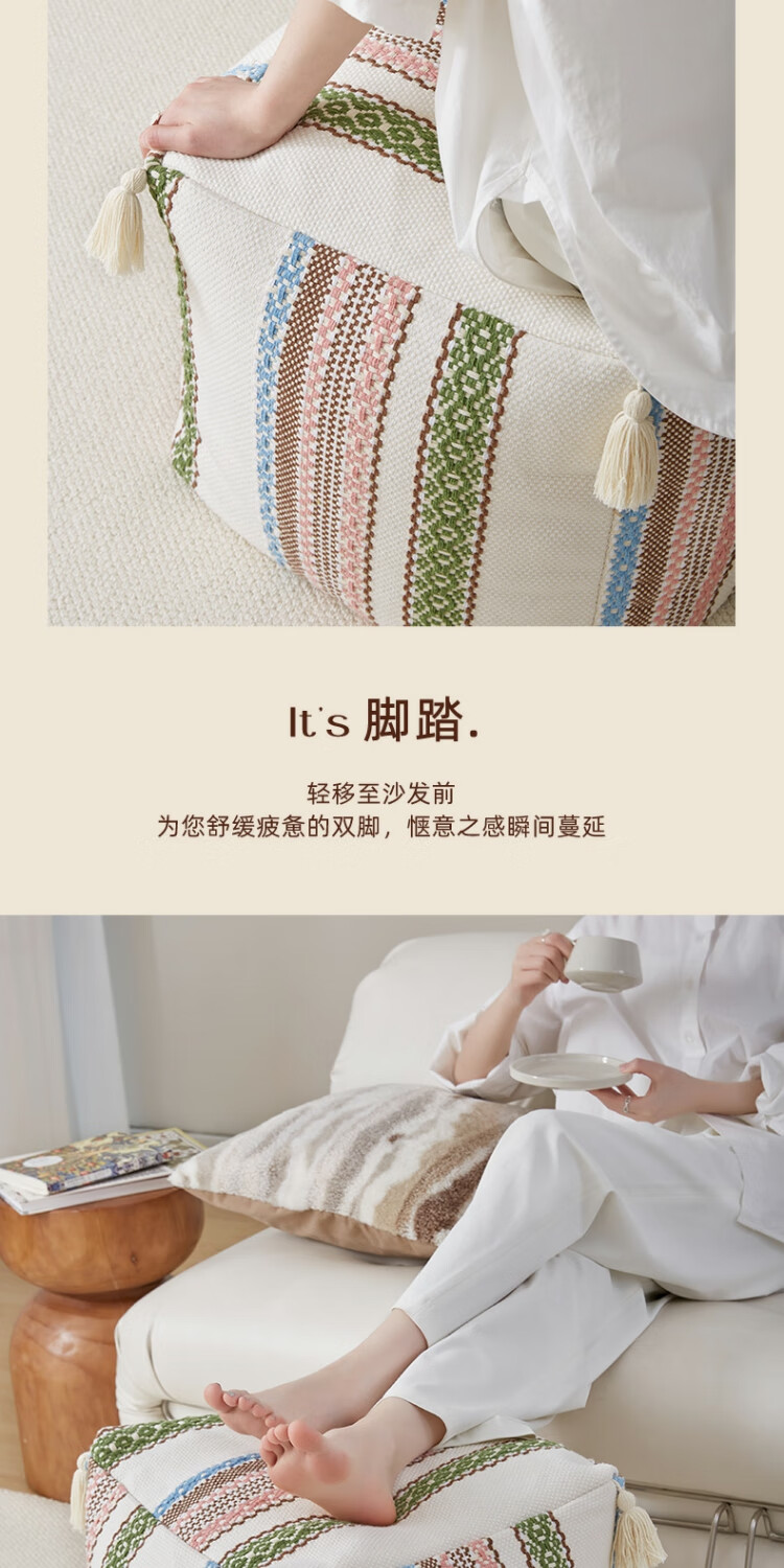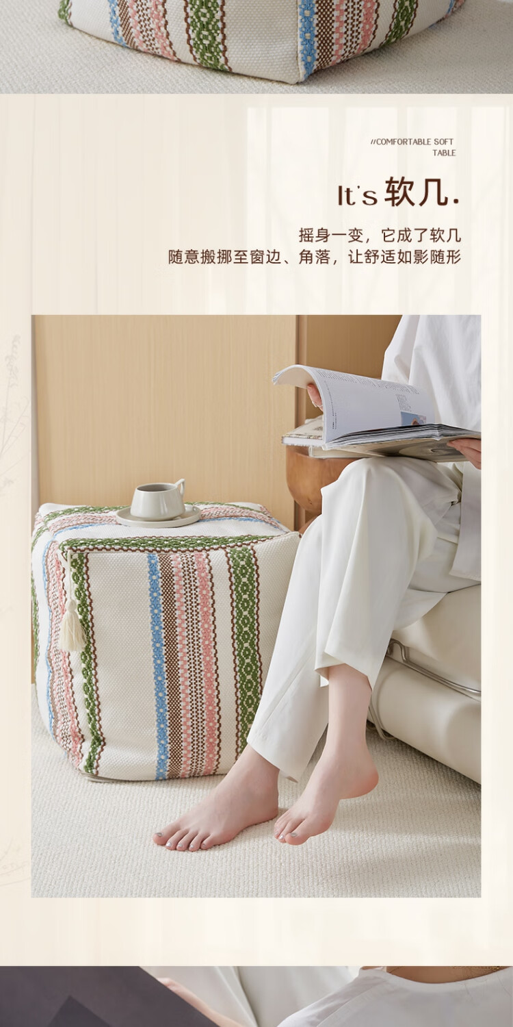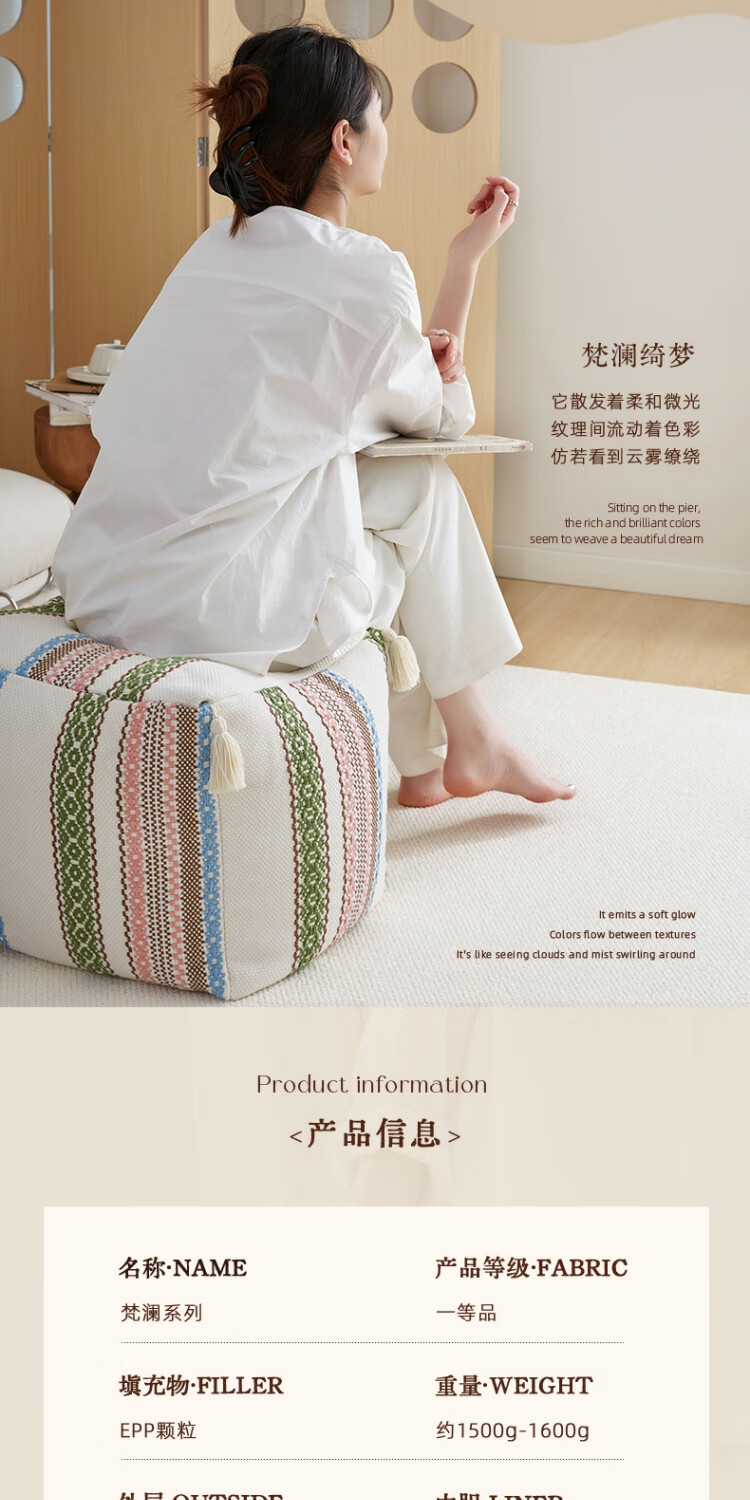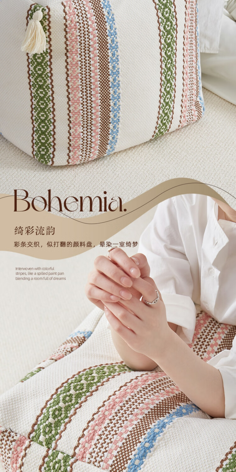 京华中古波西米亚坐墩多用轻奢榻榻米客厅地上坐垫可拆洗懒人沙发蒲团 布拉诺 40*40*30
