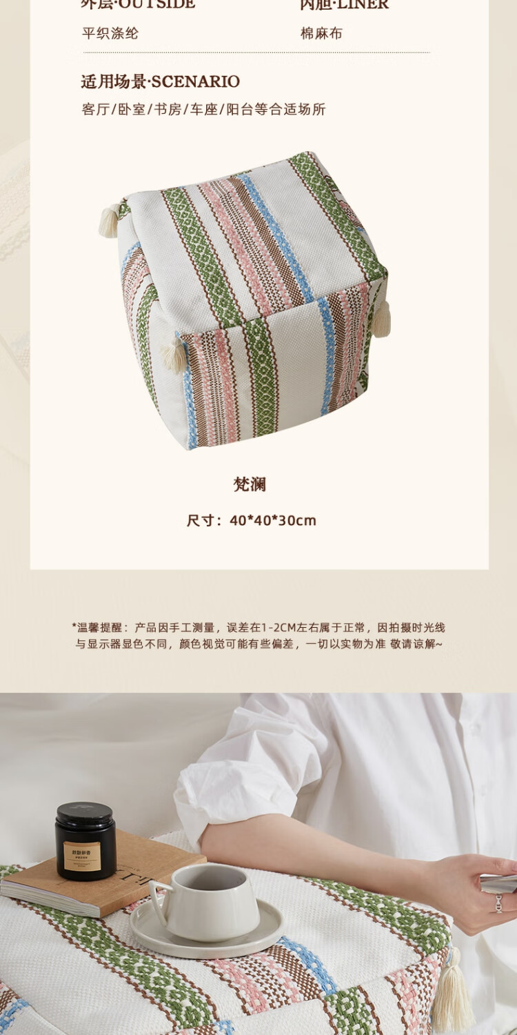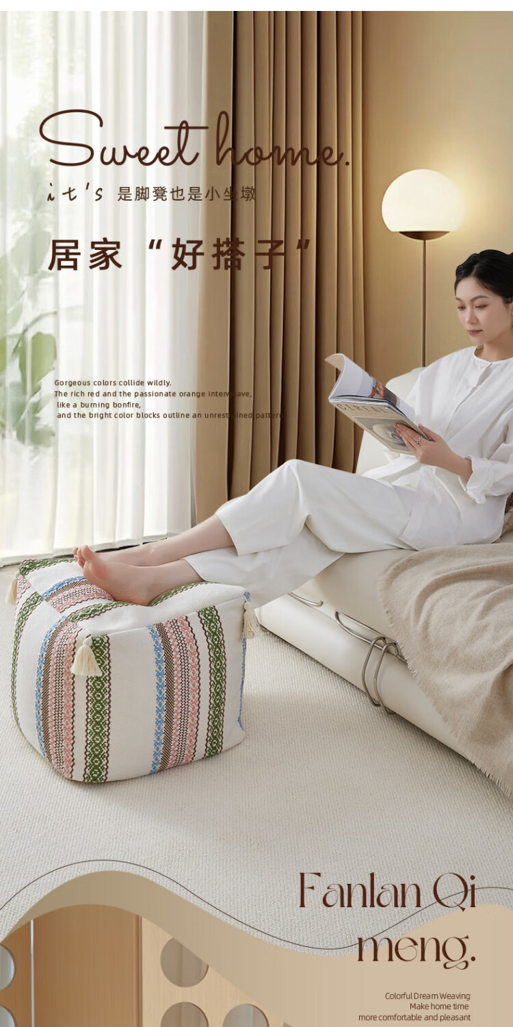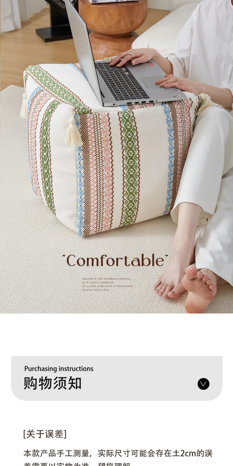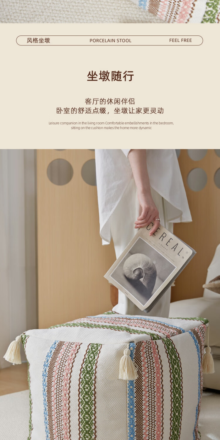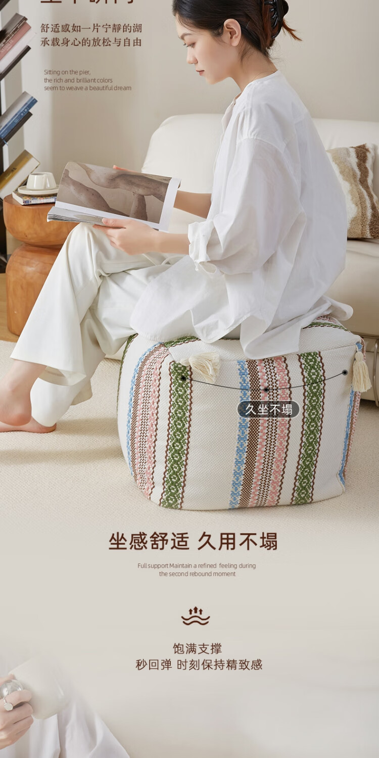 京华地毯民族风坐墩家用客厅沙发蒲团现代简约创意坐垫阳台换鞋凳 贝伊 40*40*30
