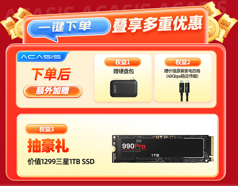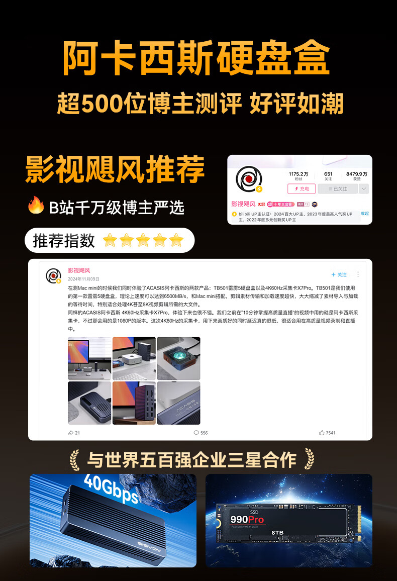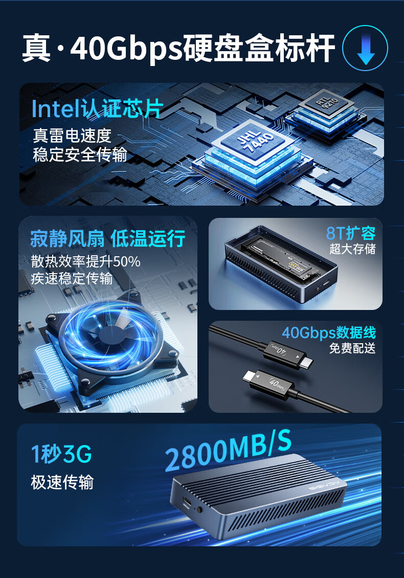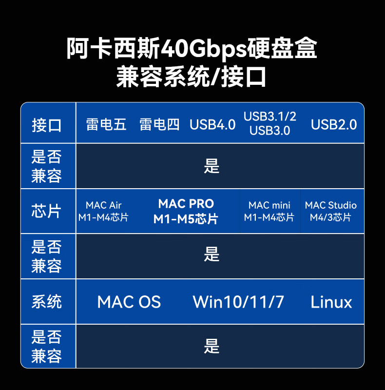 阿卡西斯(acasis)USB4.0硬盘盒NVMe M.2移动硬盘盒40Gbps兼容雷电5/4/3适用苹果Mac mini笔记本SSD固态TBU405Pro