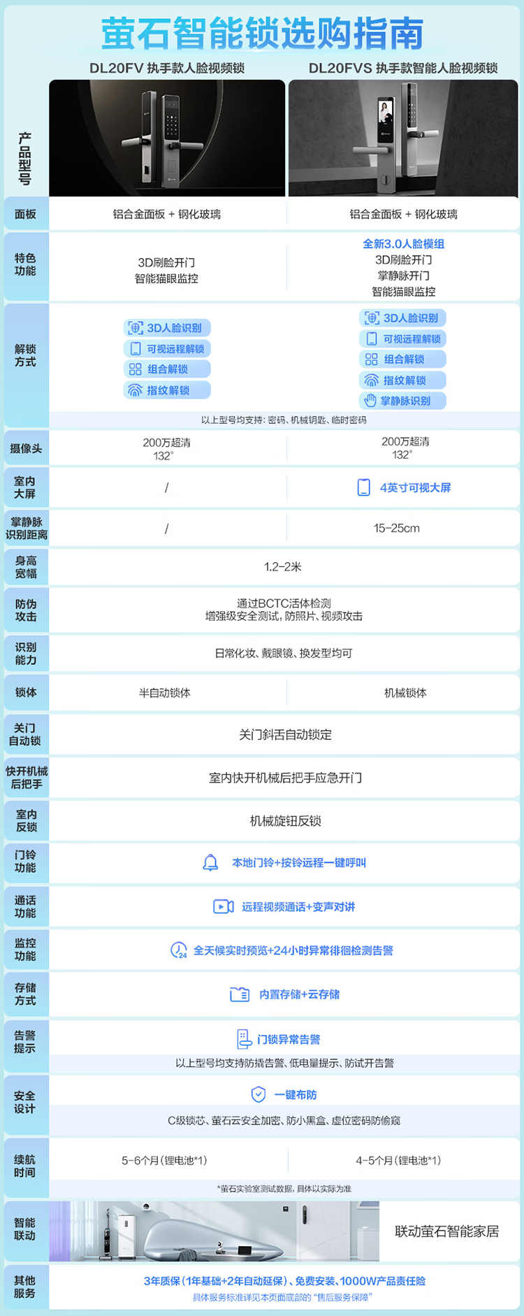 萤石DL20FV系列智能门锁人脸视频锁支持指纹指静脉握开式掌静脉智能锁C级锁芯猫眼防盗门锁电子锁 DL20FVS灰色-标准版