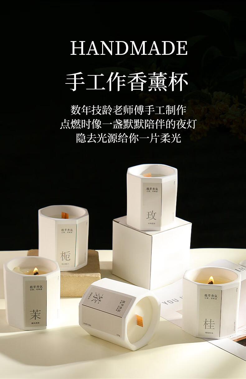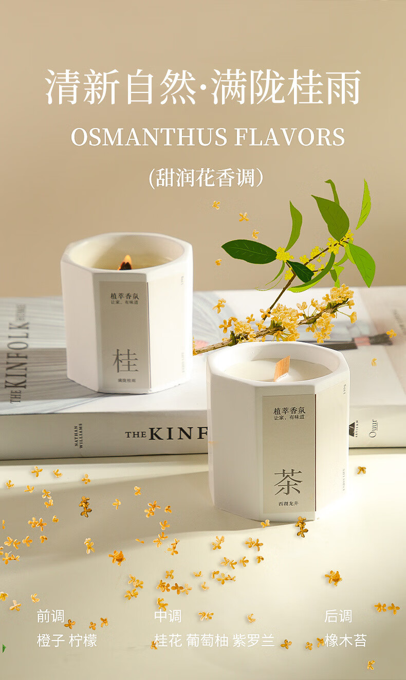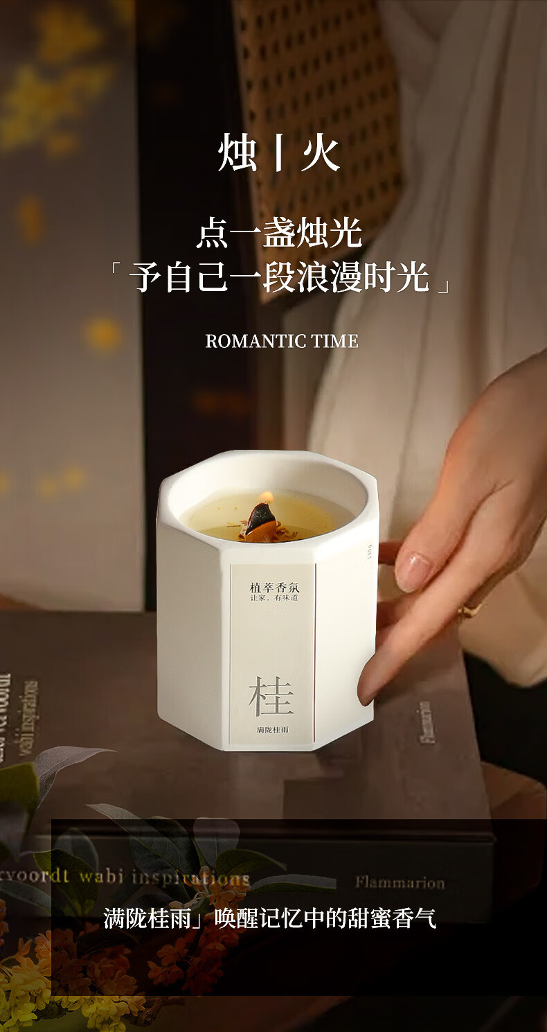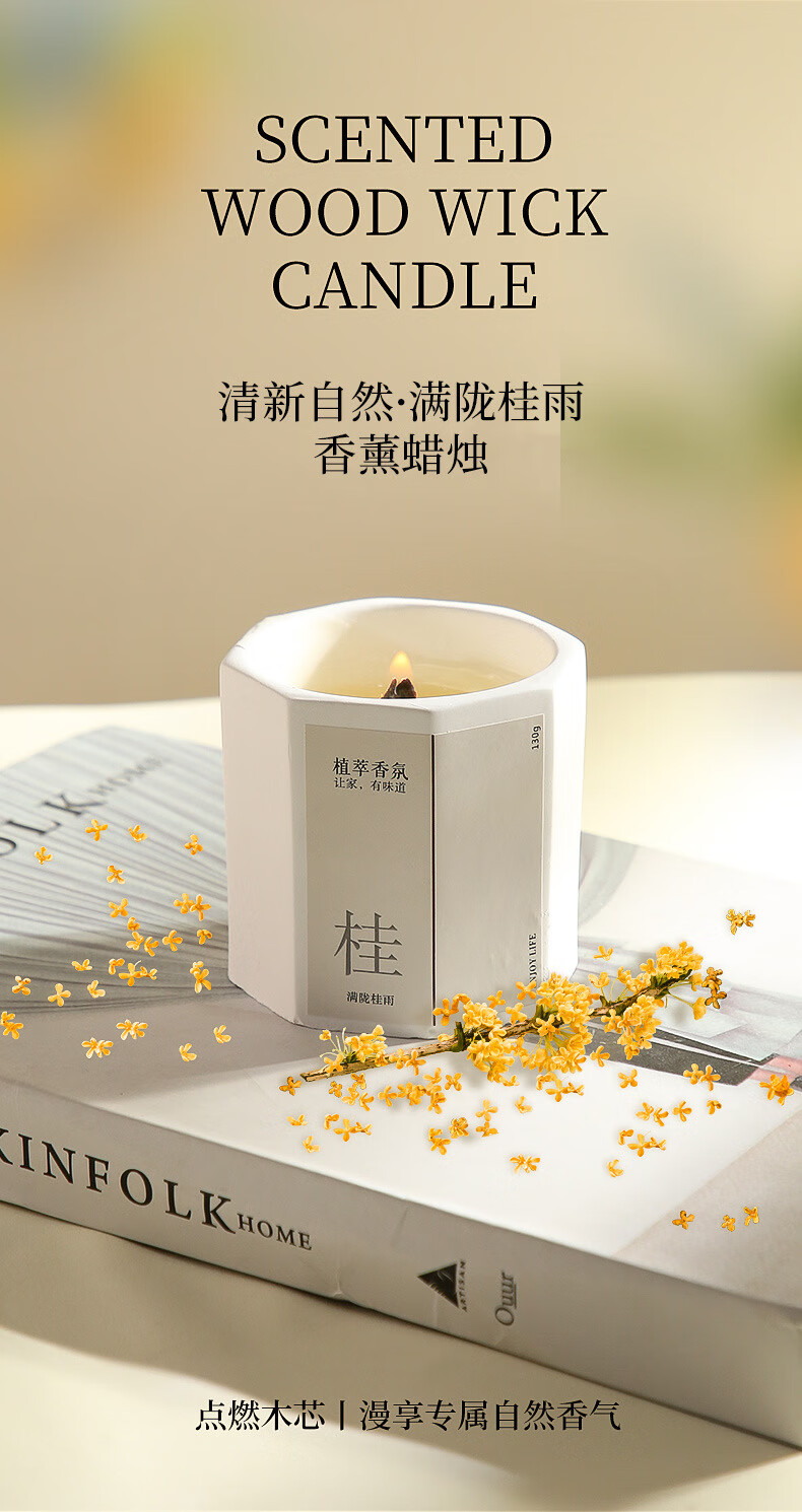 桂花香薰蜡烛卧室家用室内持久熏香八角低温香氛围感创意熏 微风茉莉-1盒装 无规格