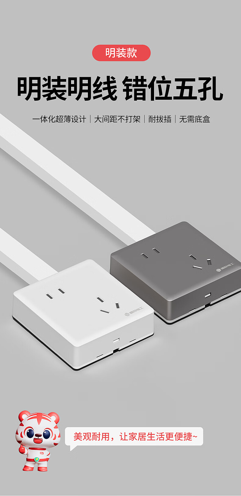 国际电工86型家用明装插座斜五孔插座明线错位5孔空调热水器16A三插面板 白色 10A错位五孔【明装一体式】