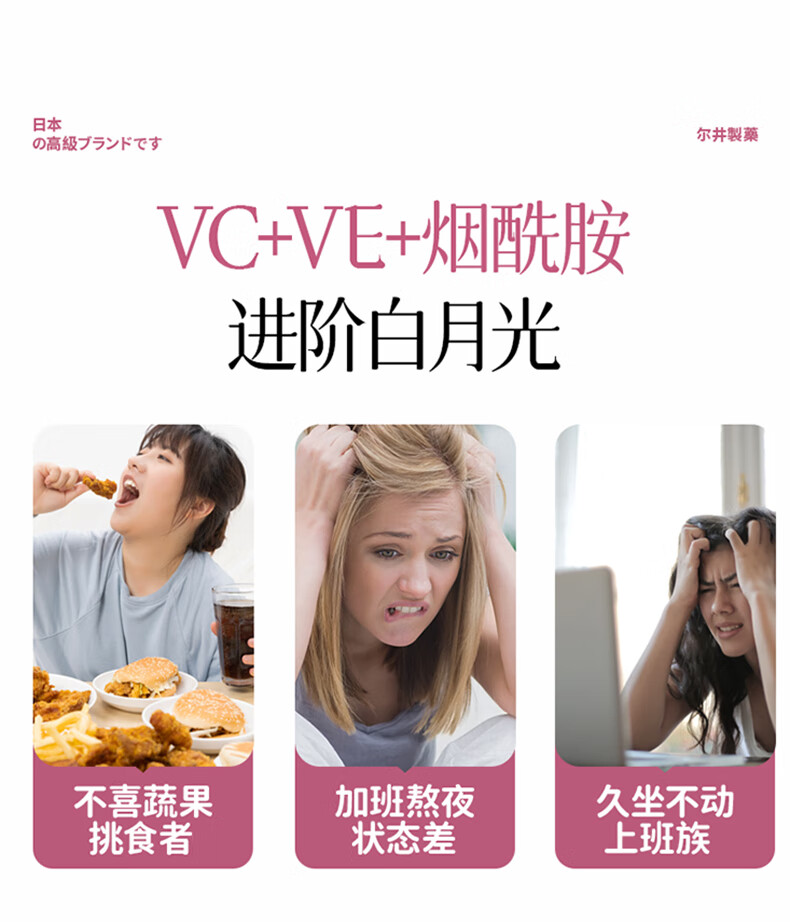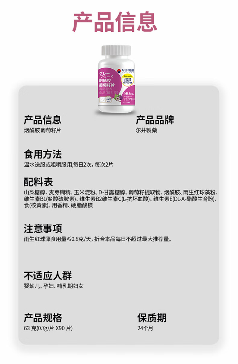 尔井制药烟酰胺葡萄籽片维生素C+E胶原蛋白肽淡化黑色素美白紧致抗衰老