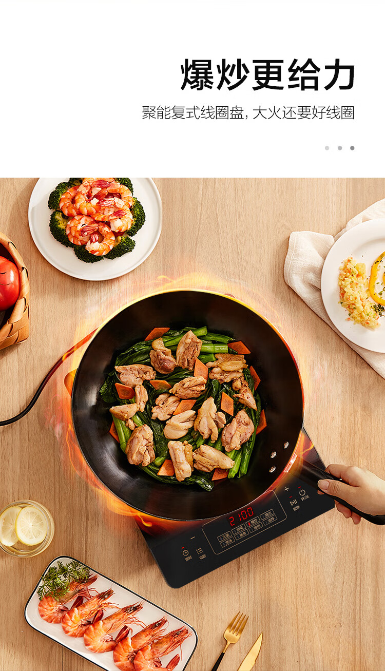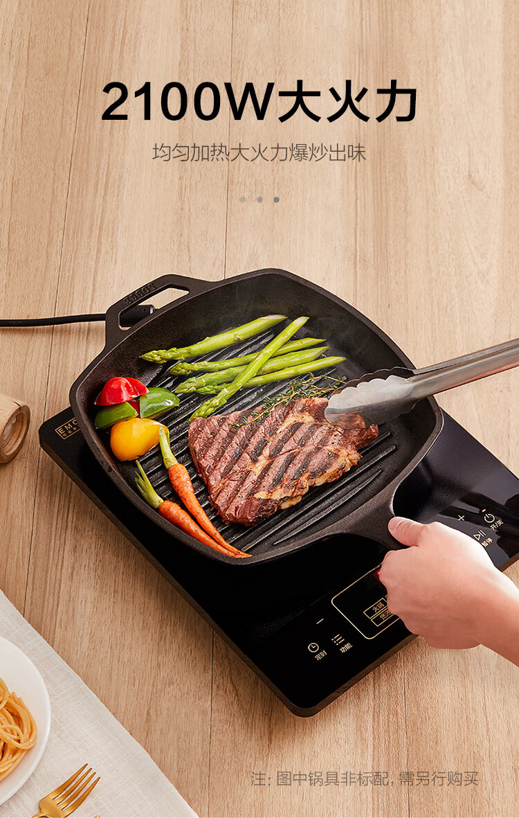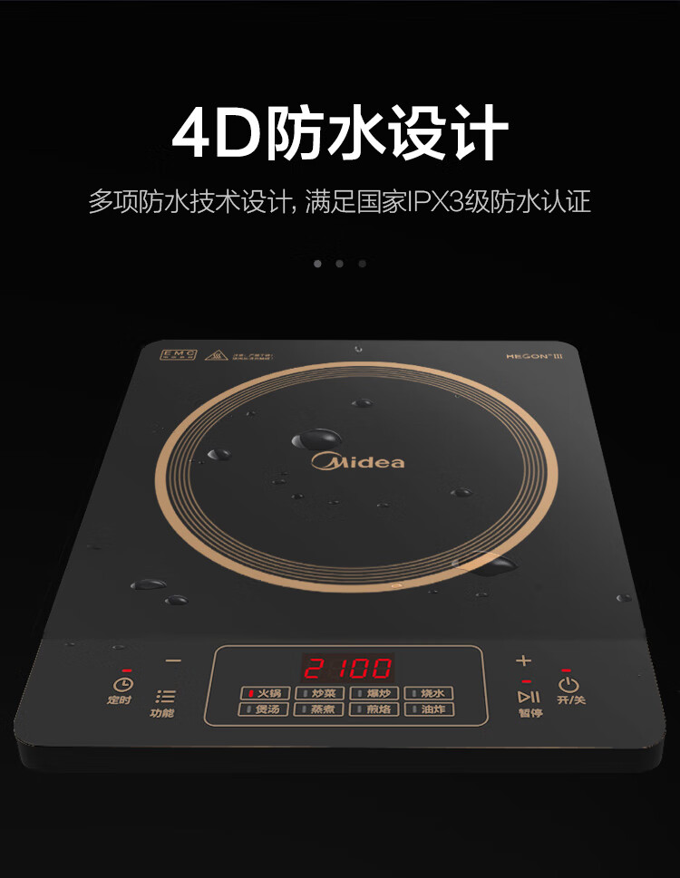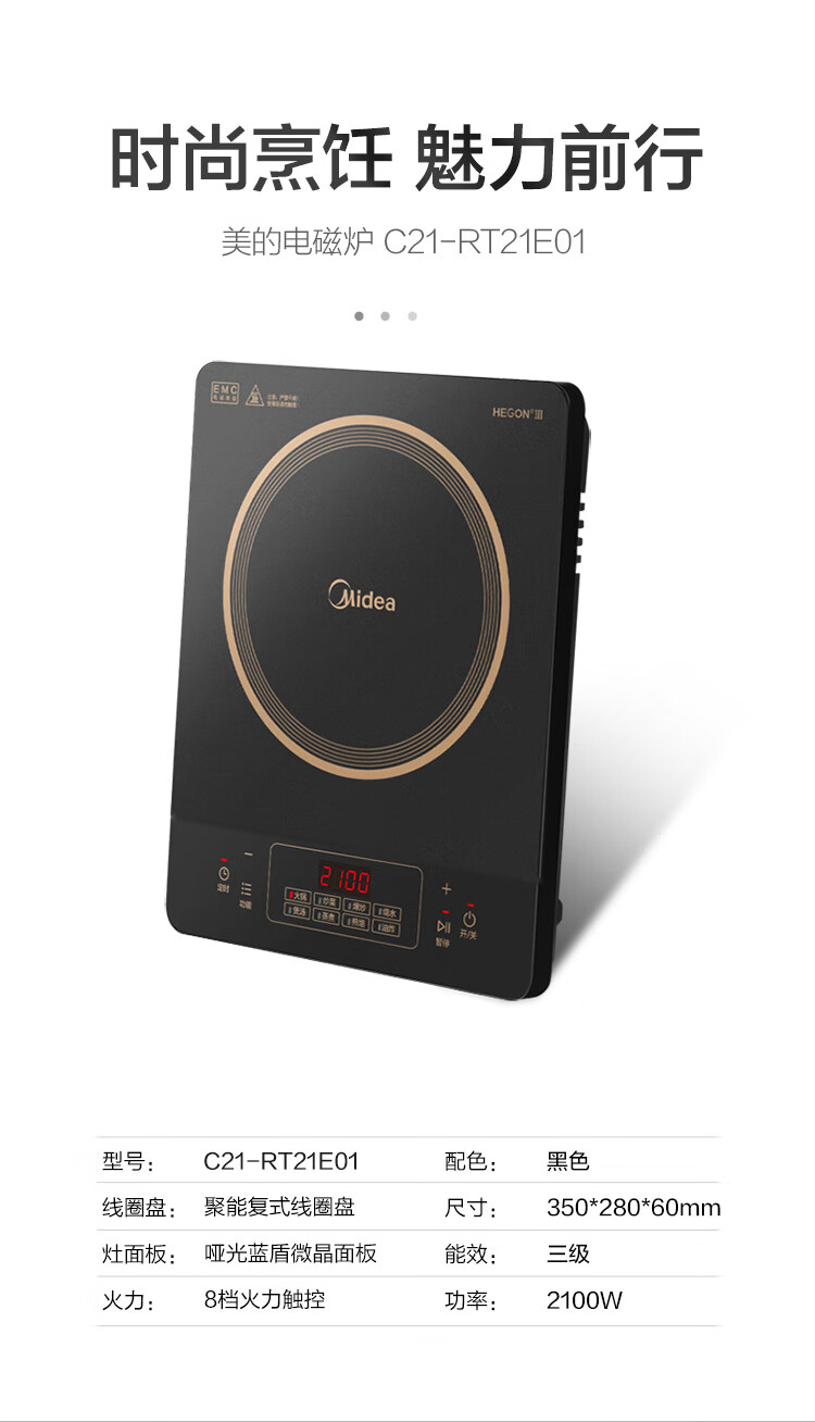 美的(Midea)电磁炉大功率家用猛火爆炒8档火力调节防水耐用350mm大面板专用炒菜锅电磁灶火锅炉C21-RT21E01