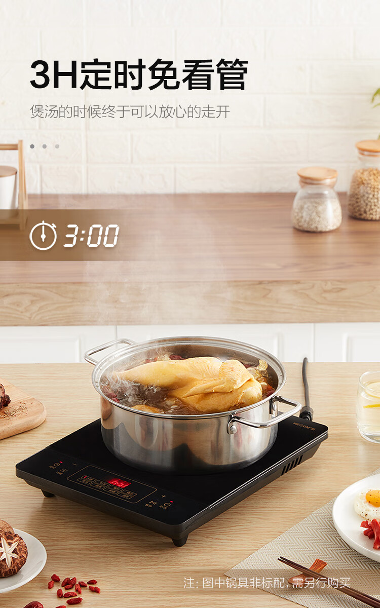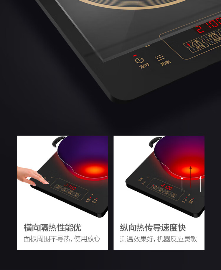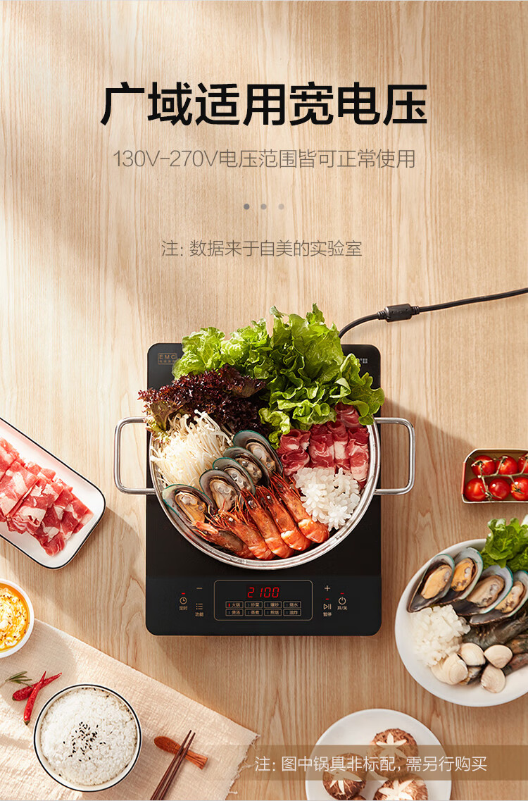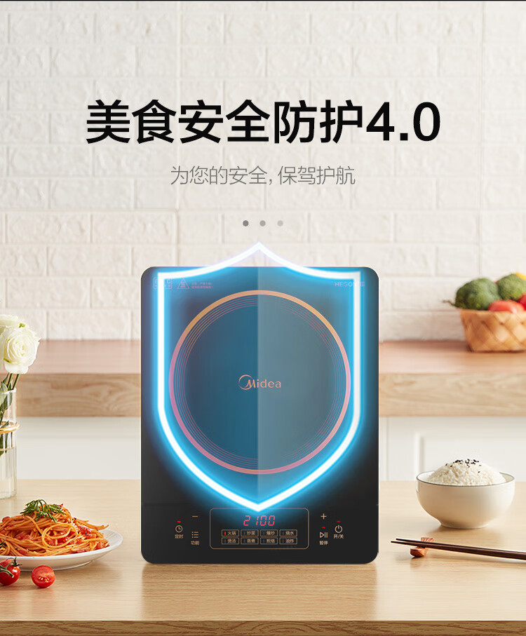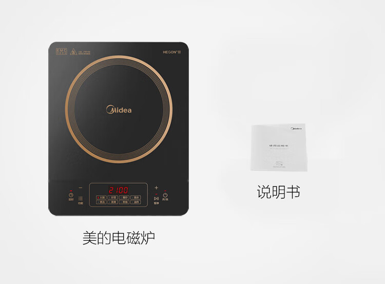 美的(Midea)电磁炉大功率家用猛火爆炒8档火力调节防水耐用350mm大面板专用炒菜锅电磁灶火锅炉C21-RT21E01