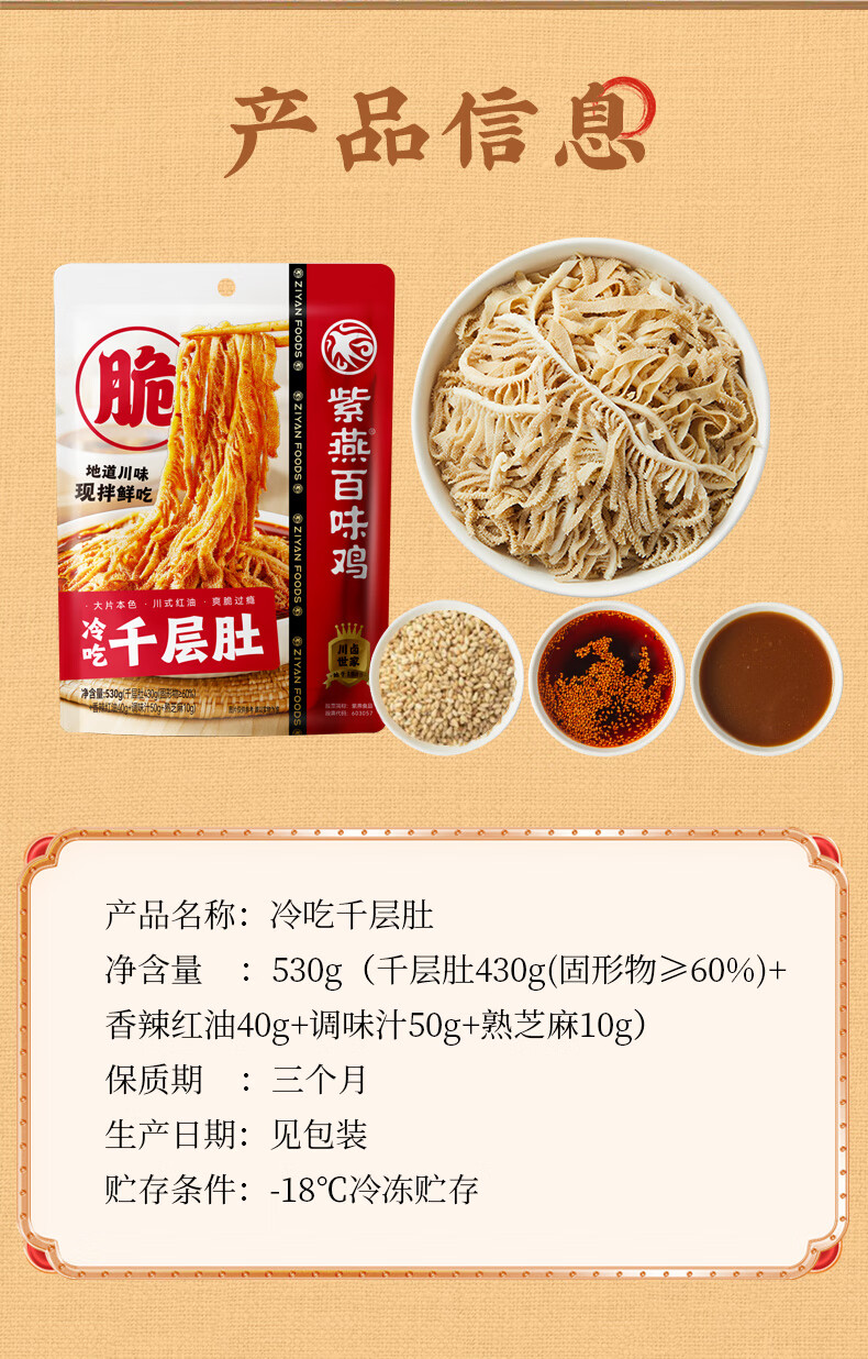 紫燕百味鸡百味鸡 千层肚烧鸡酱卤牛肉香辣蘸料卤菜调料休闲零食熟食牛肉干 千层肚530g+厚切牛肚530g共1060g