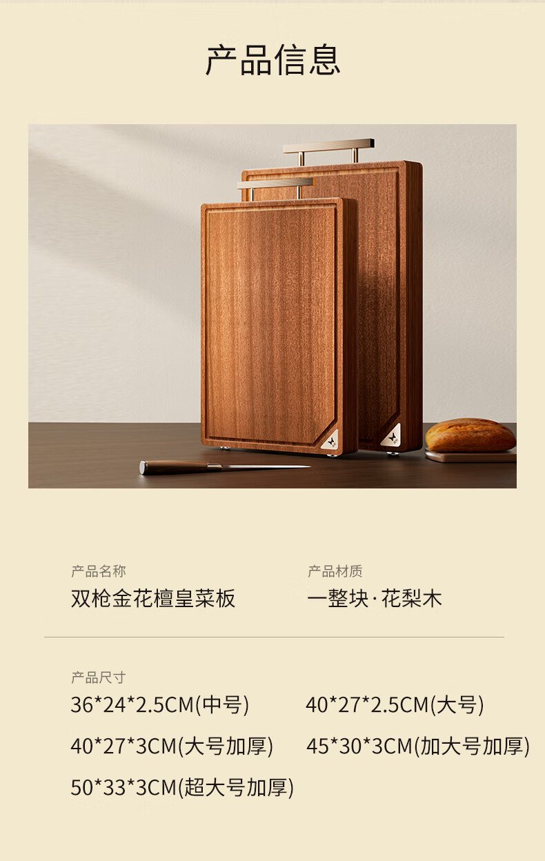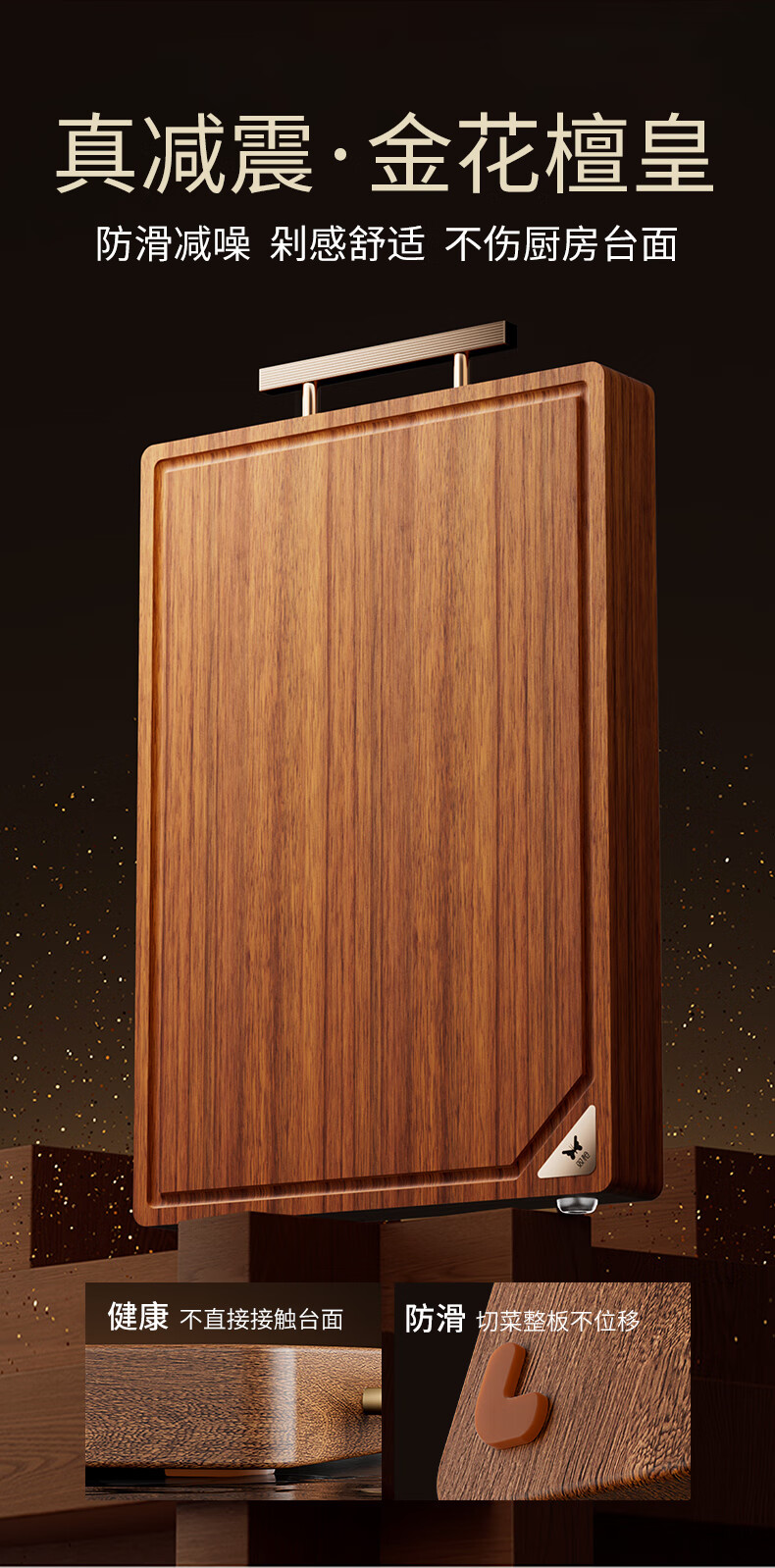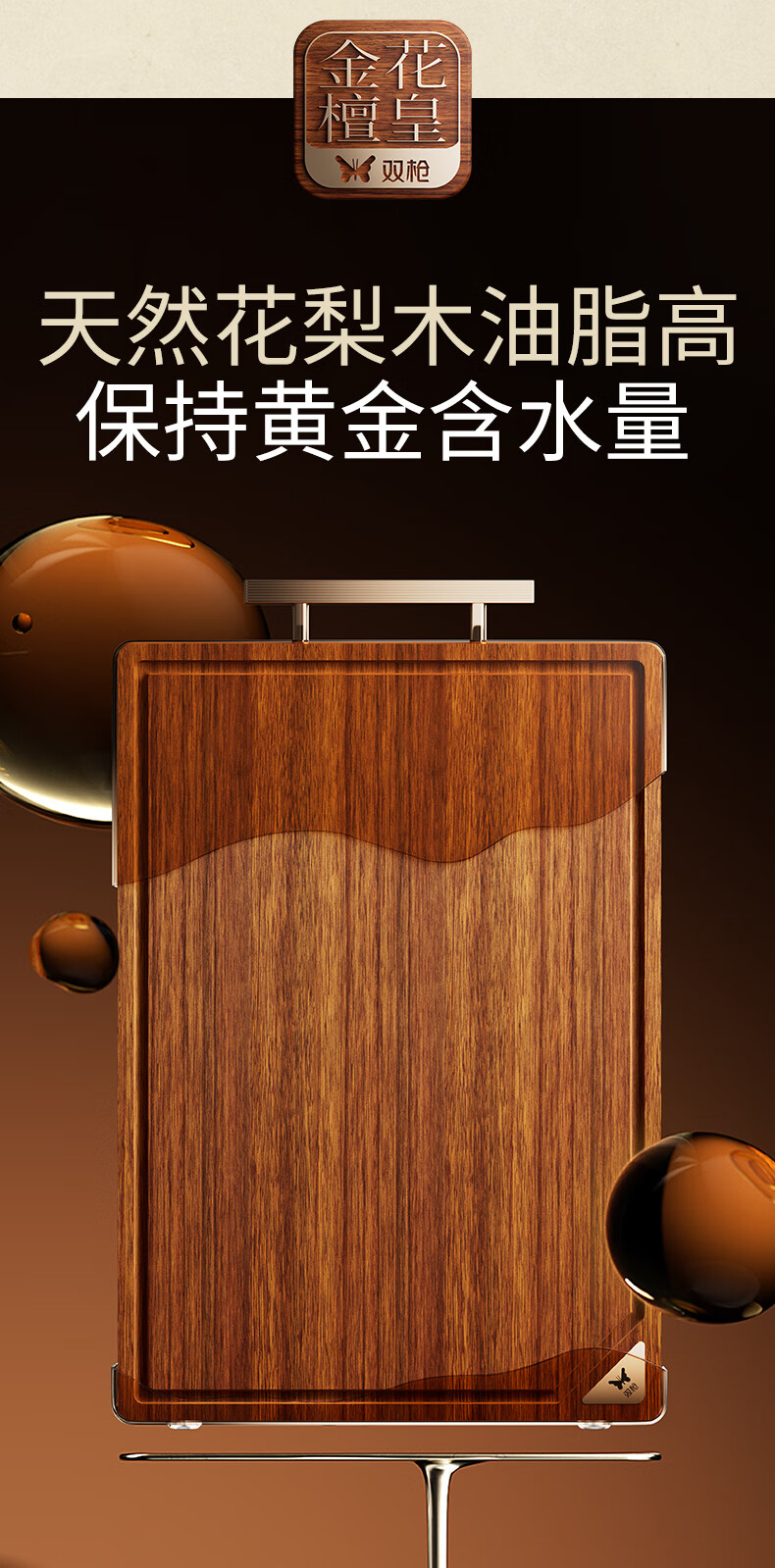双枪金标花梨木菜板 整木砧案板抗菌防霉家用食品级切菜实木40*27*2.5