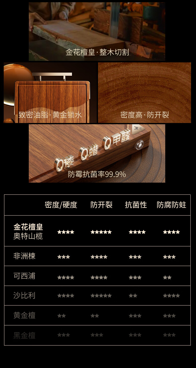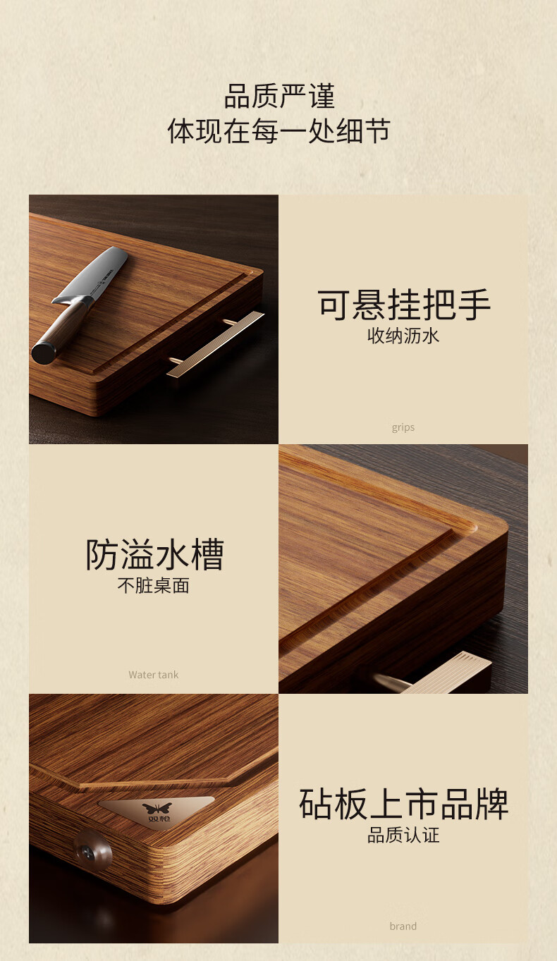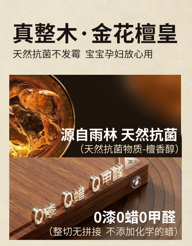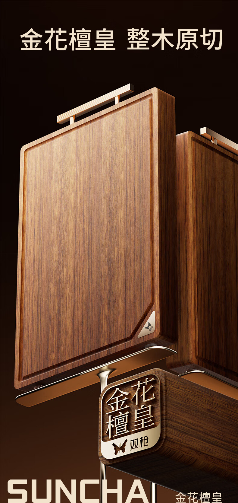 双枪金标花梨木菜板 整木砧案板抗菌防霉家用食品级切菜实木40*27*2.5