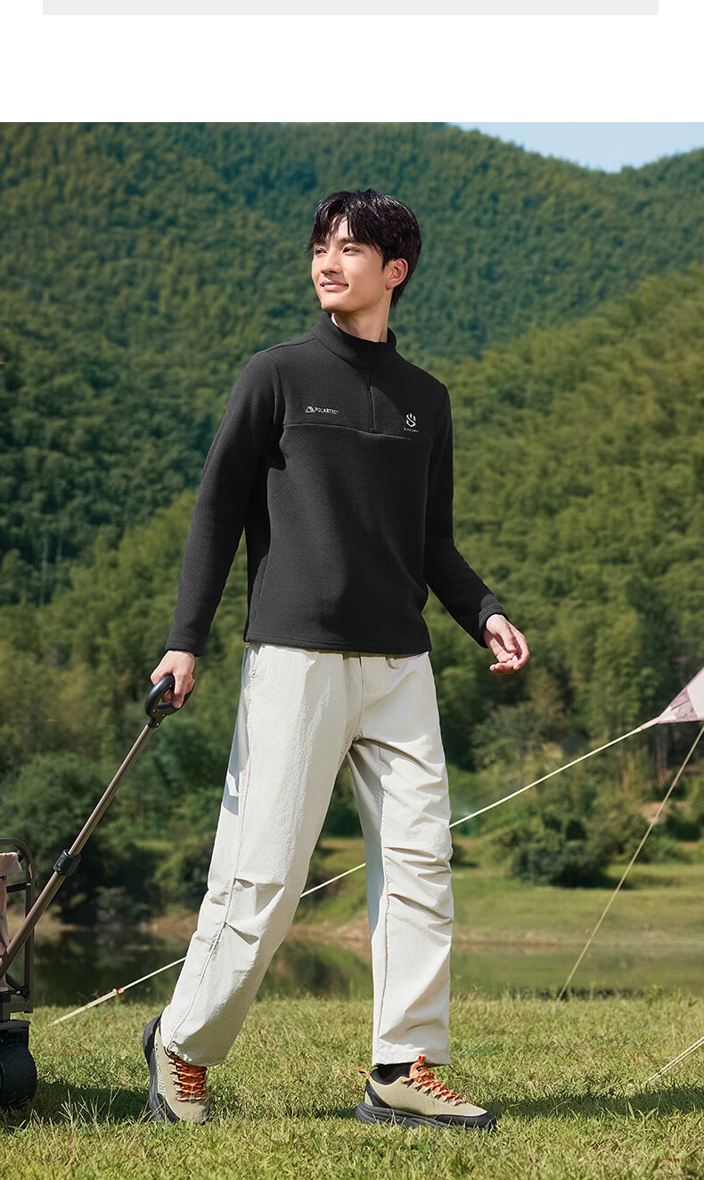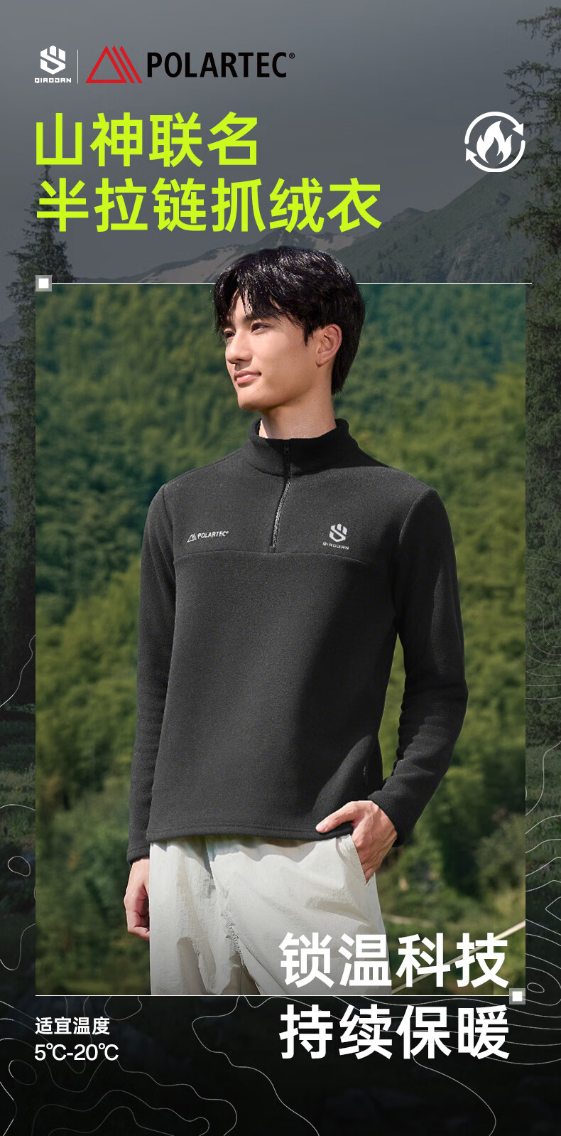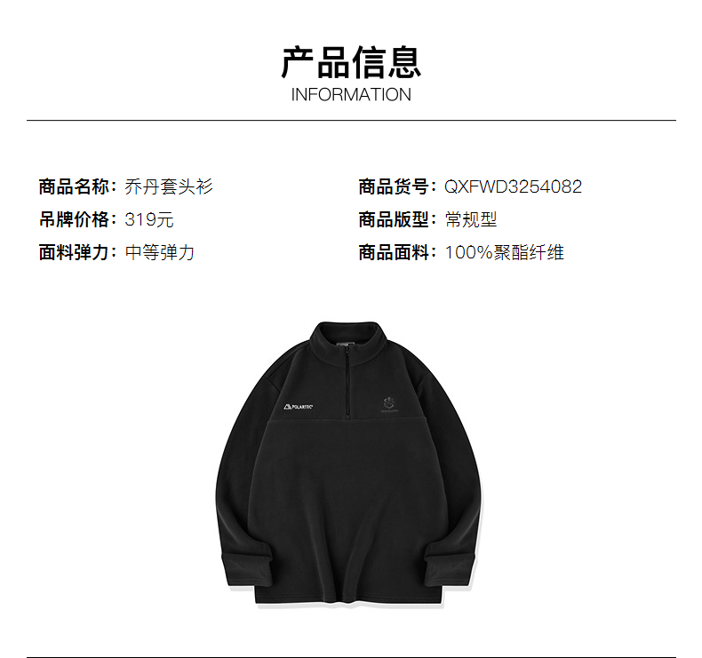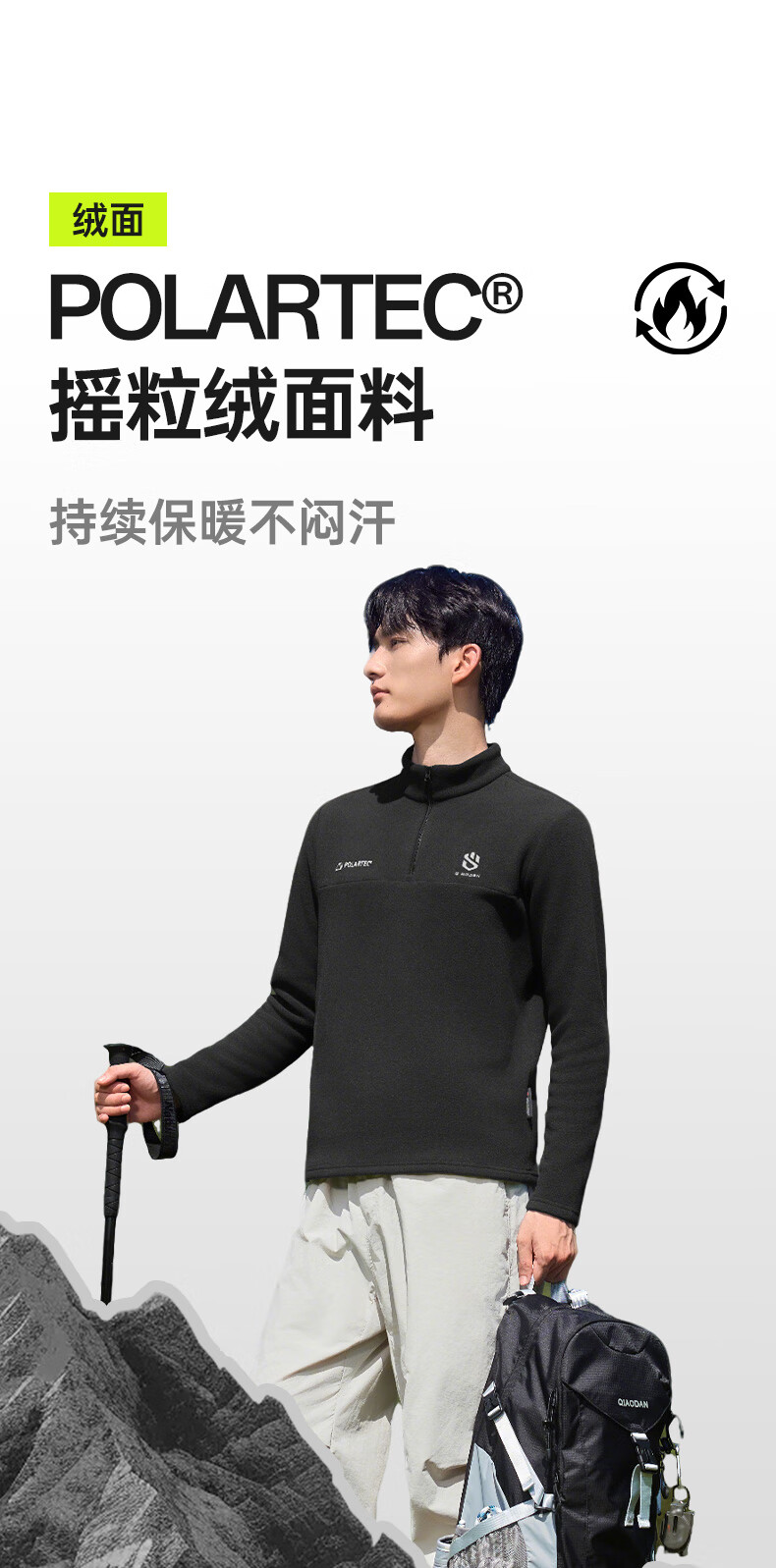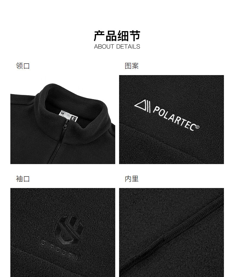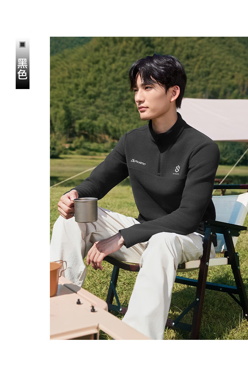 乔丹山神加绒卫衣男外套polartec冬季保暖冲锋户外运动休闲抓绒内胆 黑色 丨P 200 L