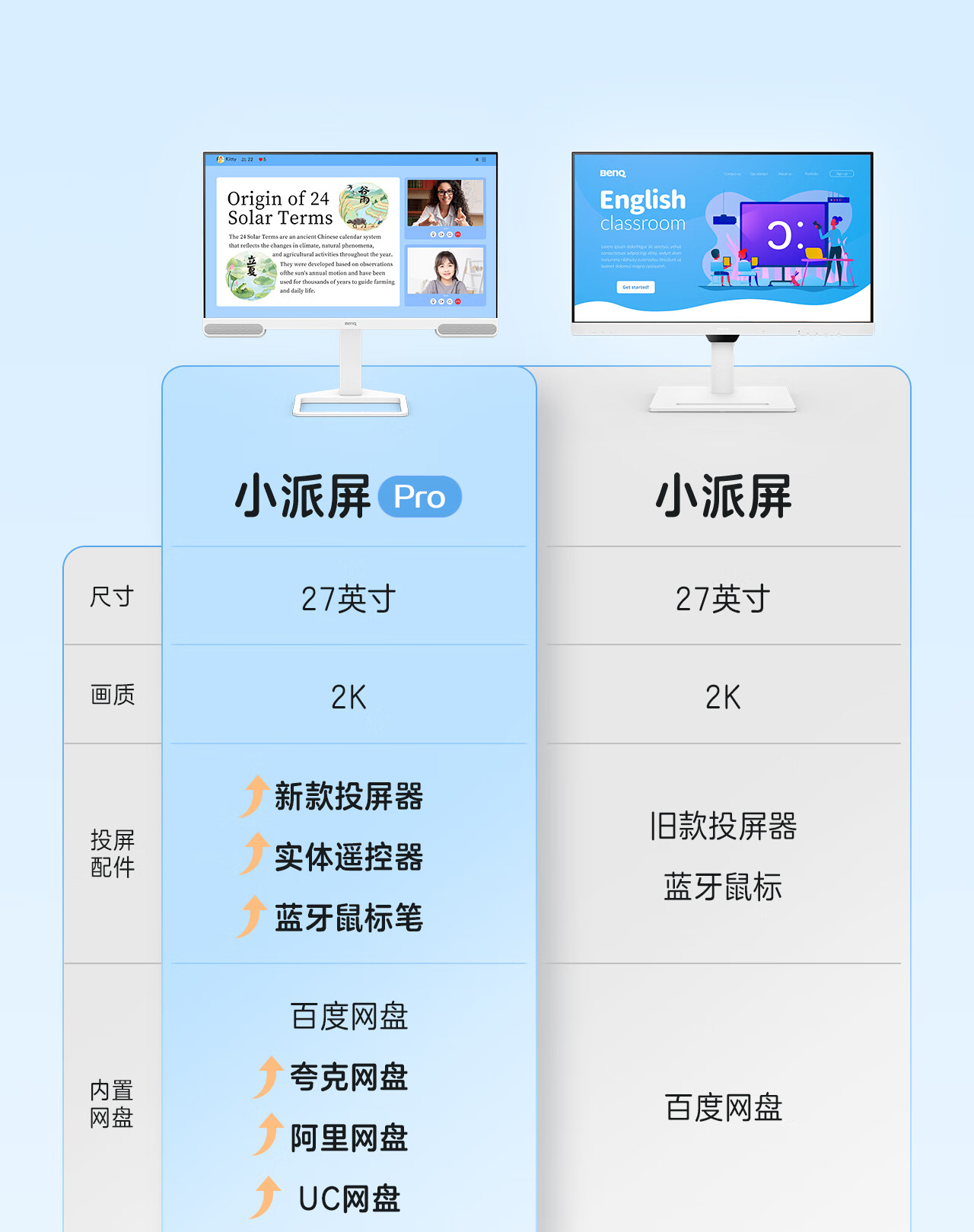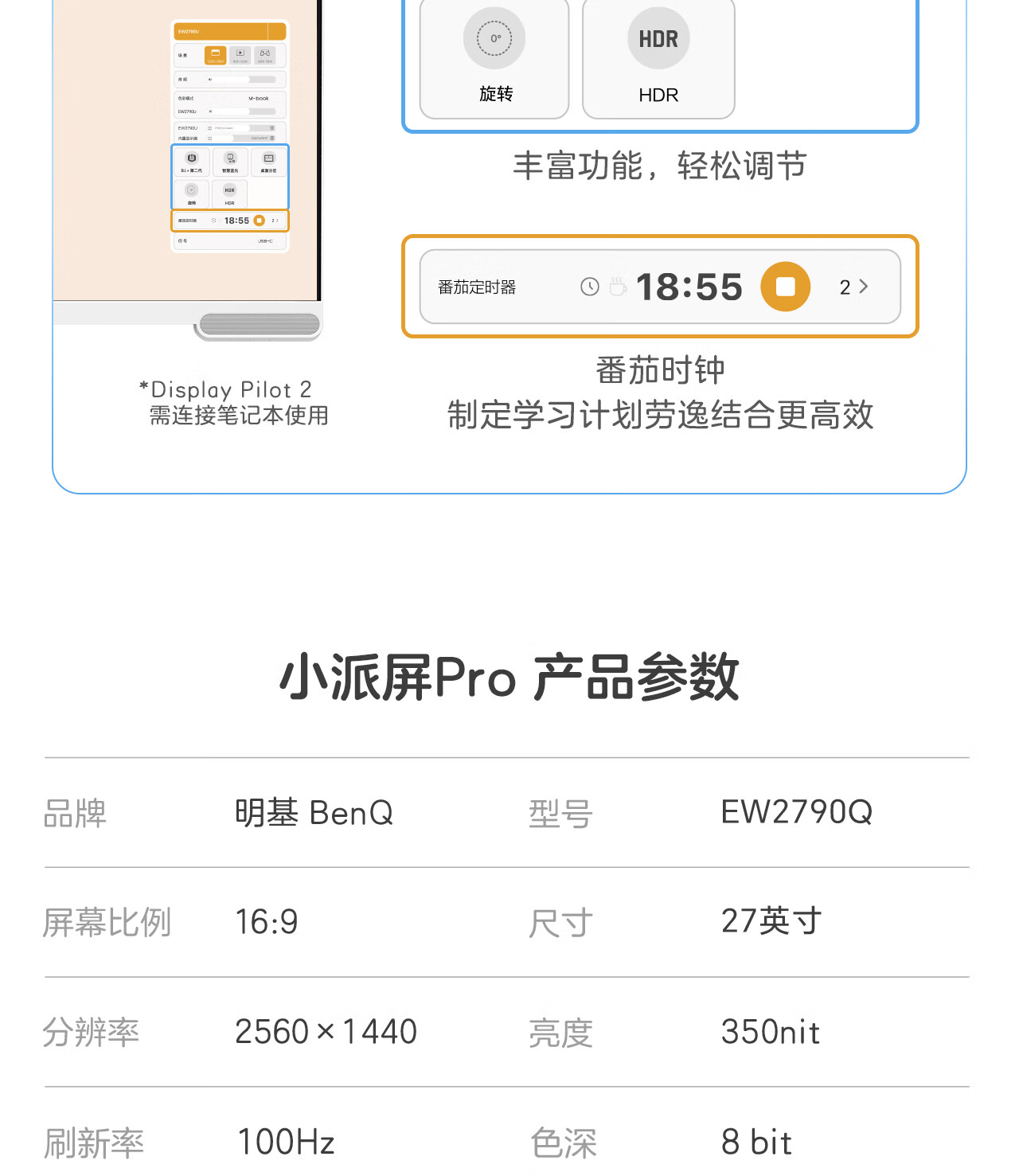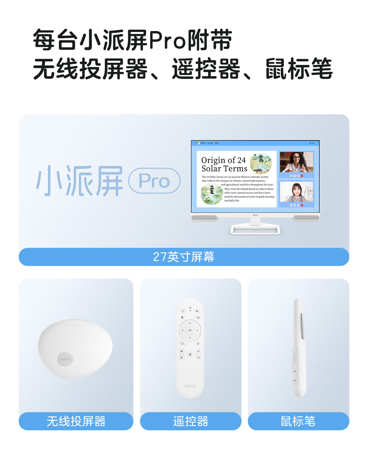 明基(BenQ)小派屏pro 27英寸2K网课学习护眼 平板无线投屏显示器