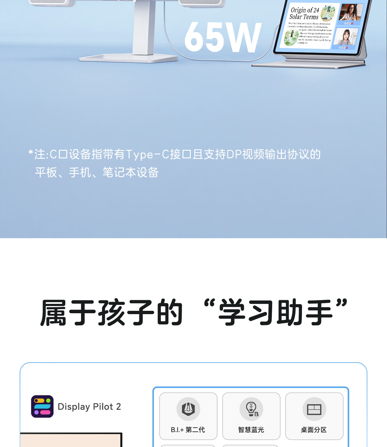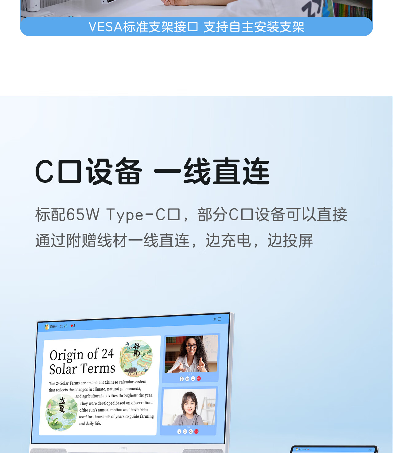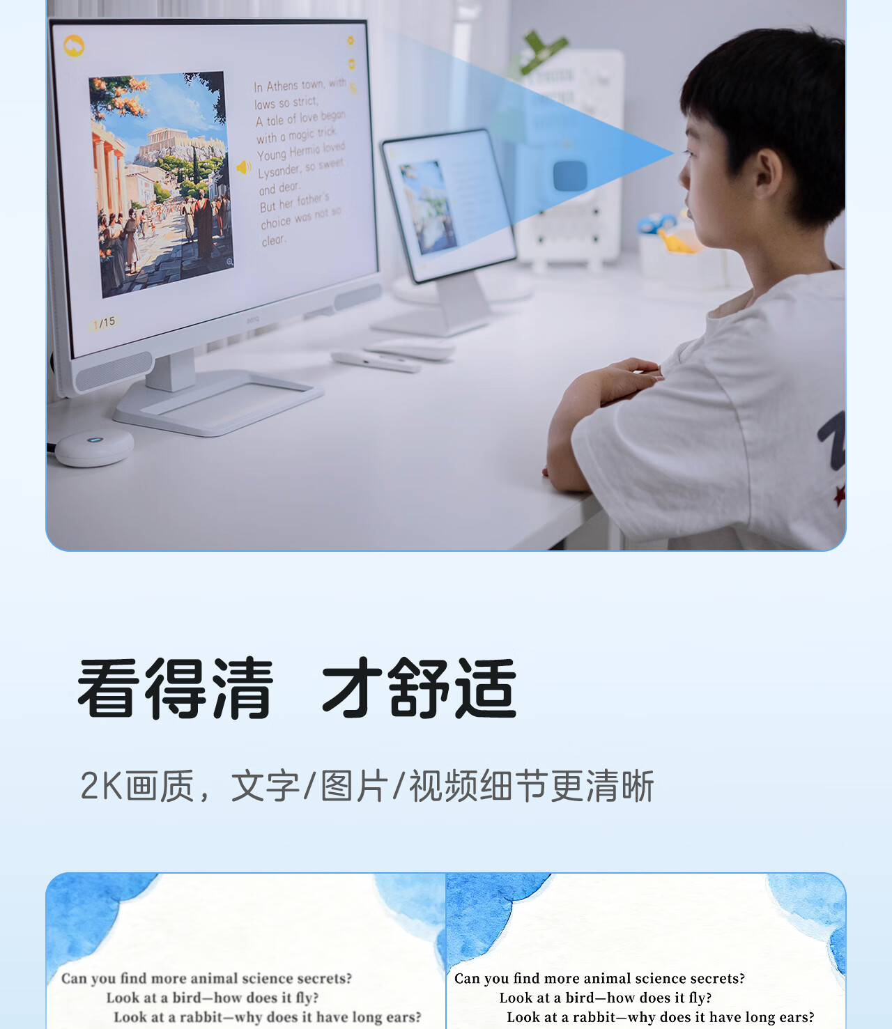 明基(BenQ)小派屏pro 27英寸2K网课学习护眼 平板无线投屏显示器