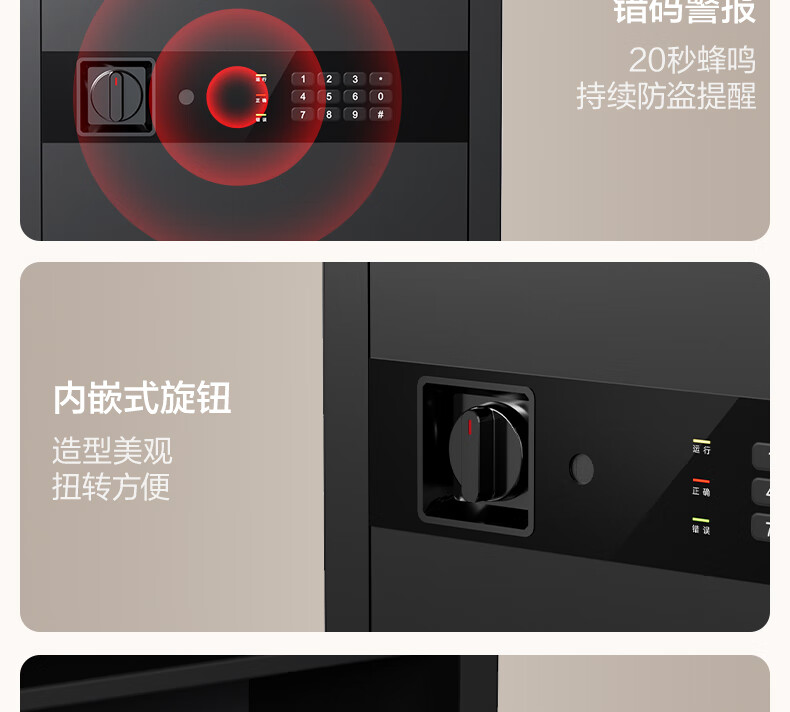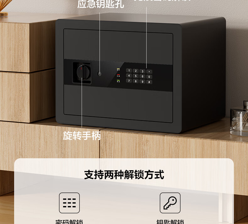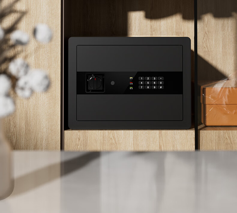 得力(deli)保险柜 办公家用电子密码保管箱小型入墙入柜私密箱隐藏保密柜 可固定安装 30cm黑