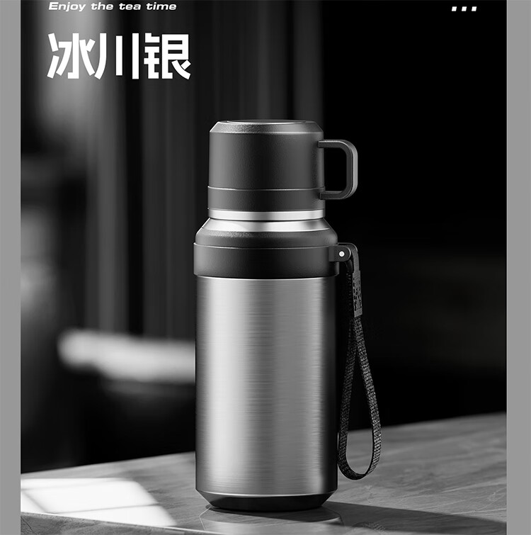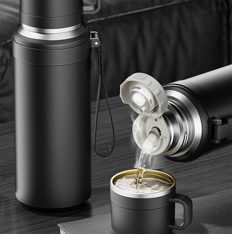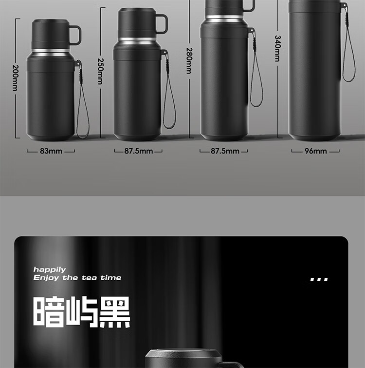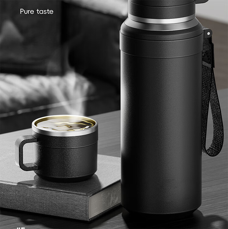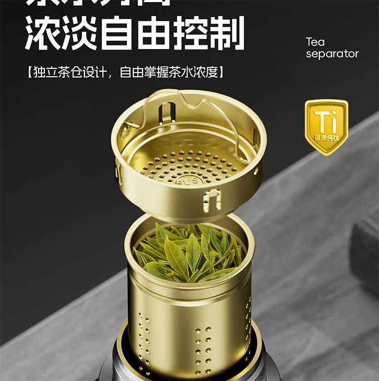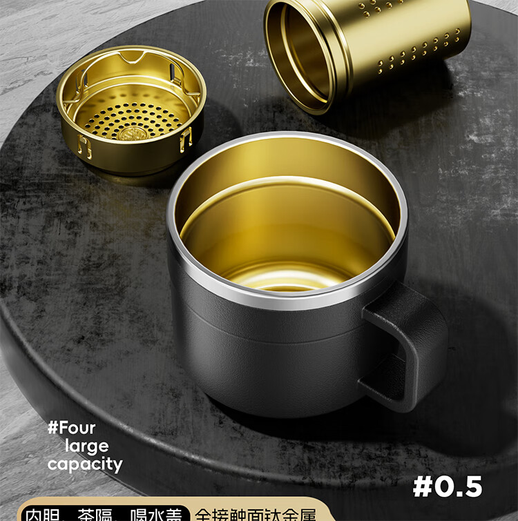 筏芯德国316不锈钢保温杯大容量2025新款水杯茶水分离泡茶杯大号水壶 【升级316覆钛内胆-48H保温】600ml-黑色