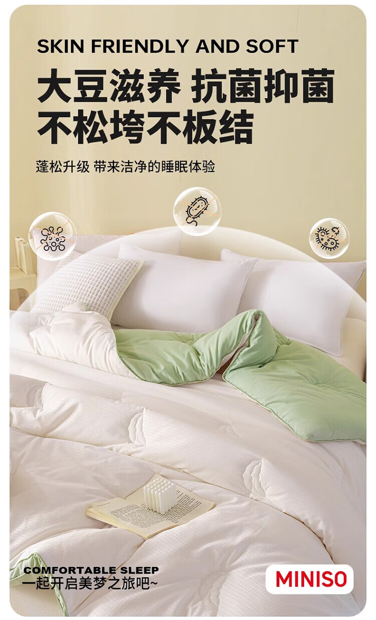 名创优品大豆被子棉被冬被 冬季加厚子母被单双人宿舍被芯被褥春秋被 miniso-千鸟格绿 200x230cm冬被重约8斤