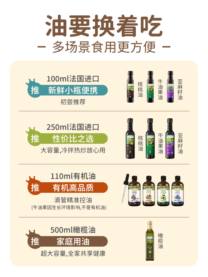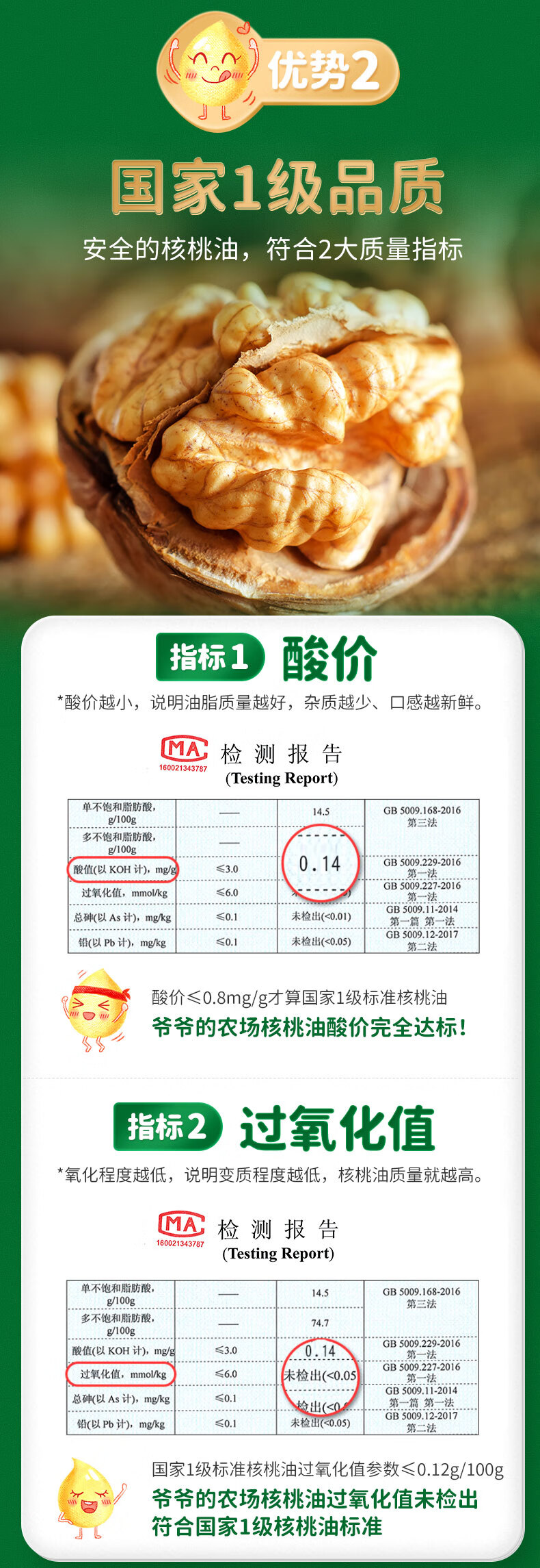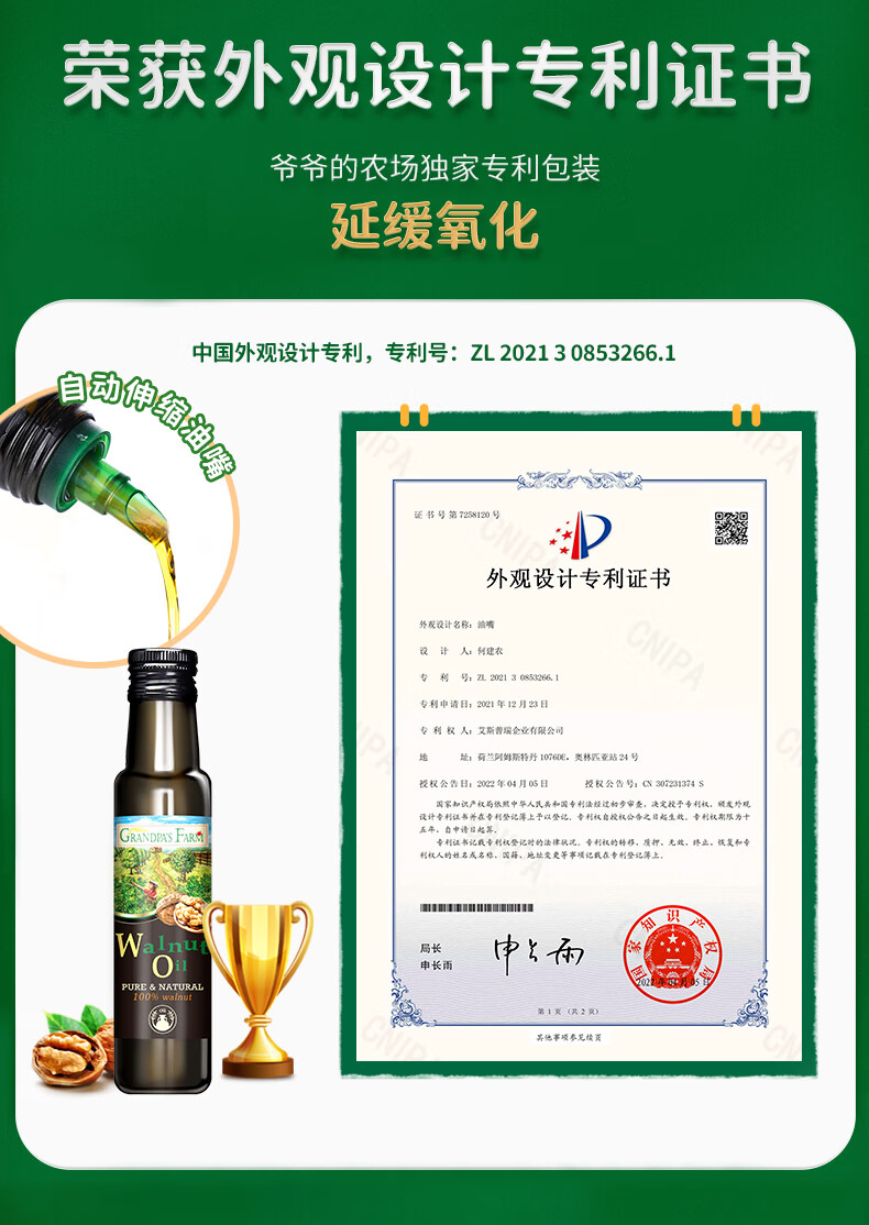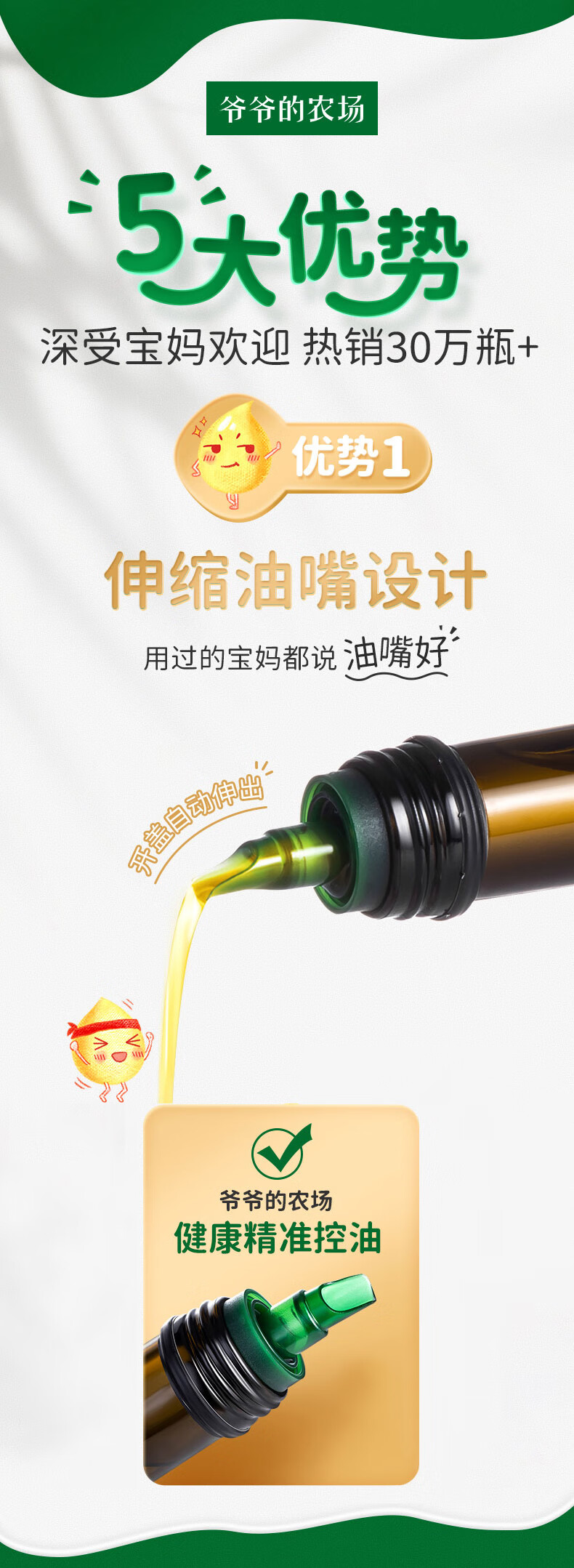 爷爷的农场核桃亚麻籽牛油果油辅食油 宝宝孕妇可添加辅食营养油 核桃油100ml