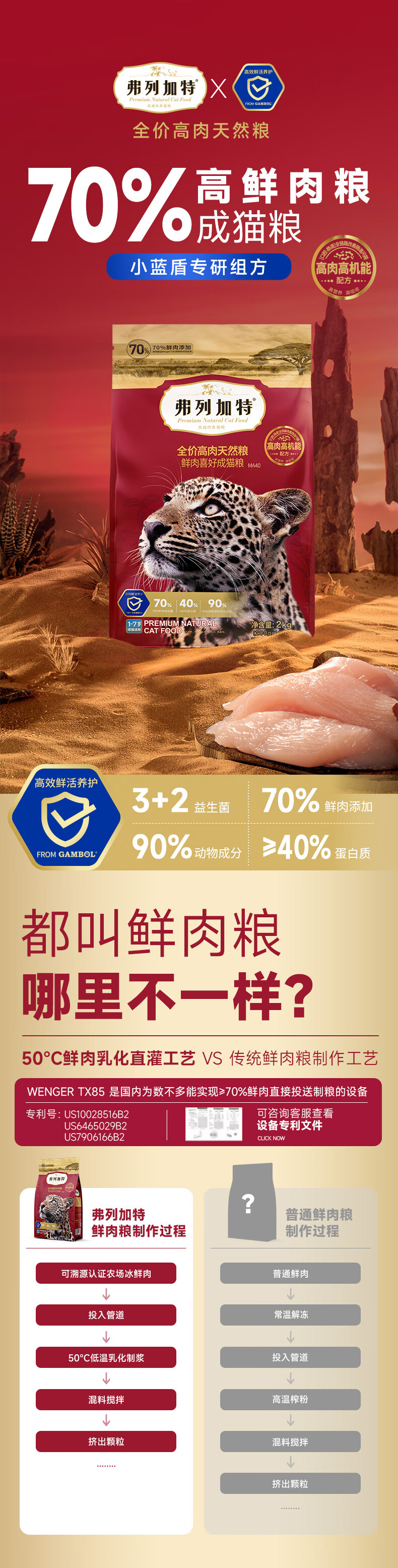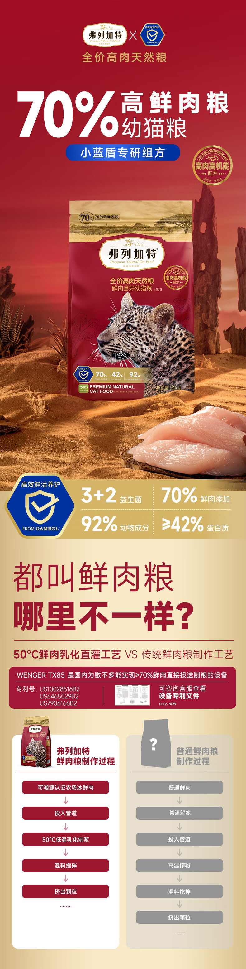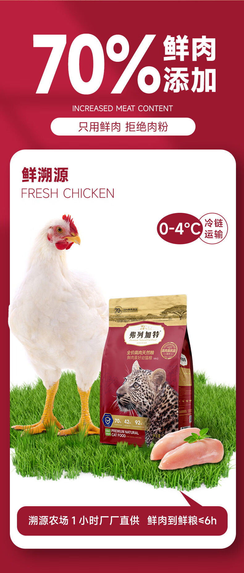 弗列加特全价鲜肉猫粮 高鲜肉含量 【肠道养护】幼猫鸡肉味2kg 肠道养护配方