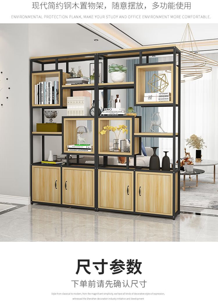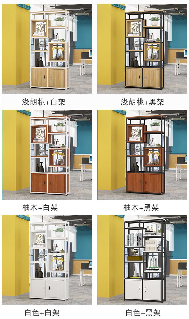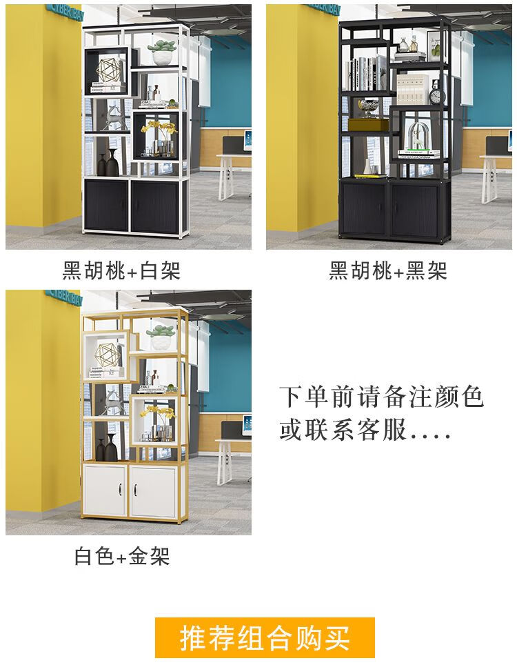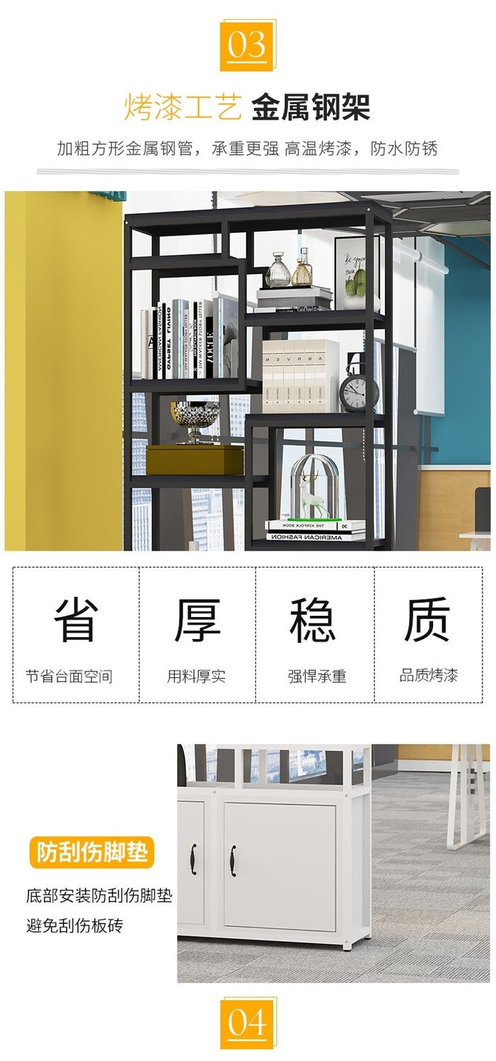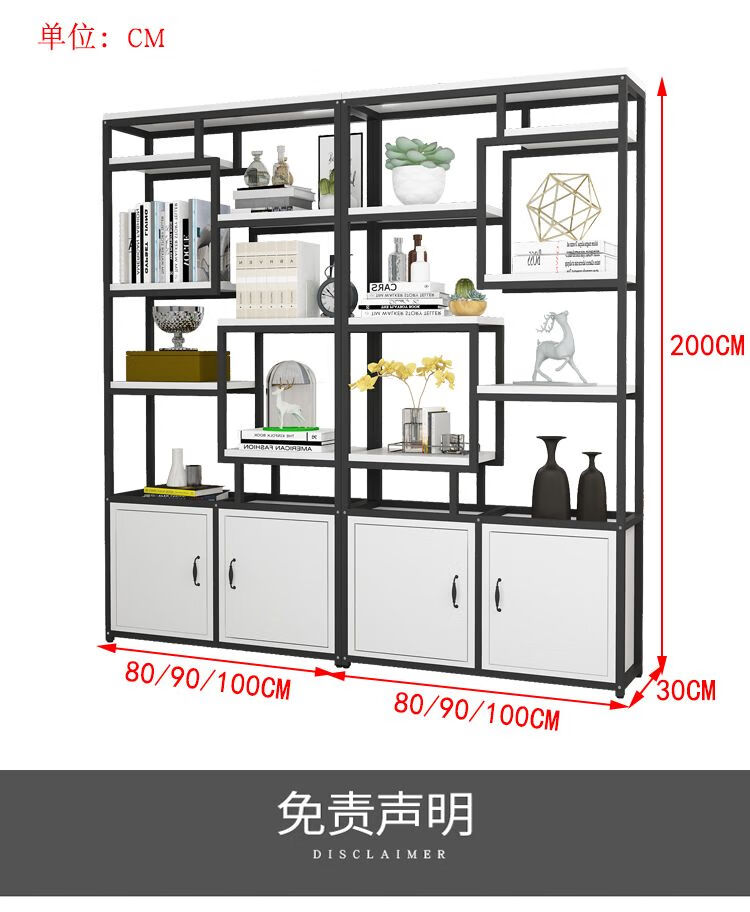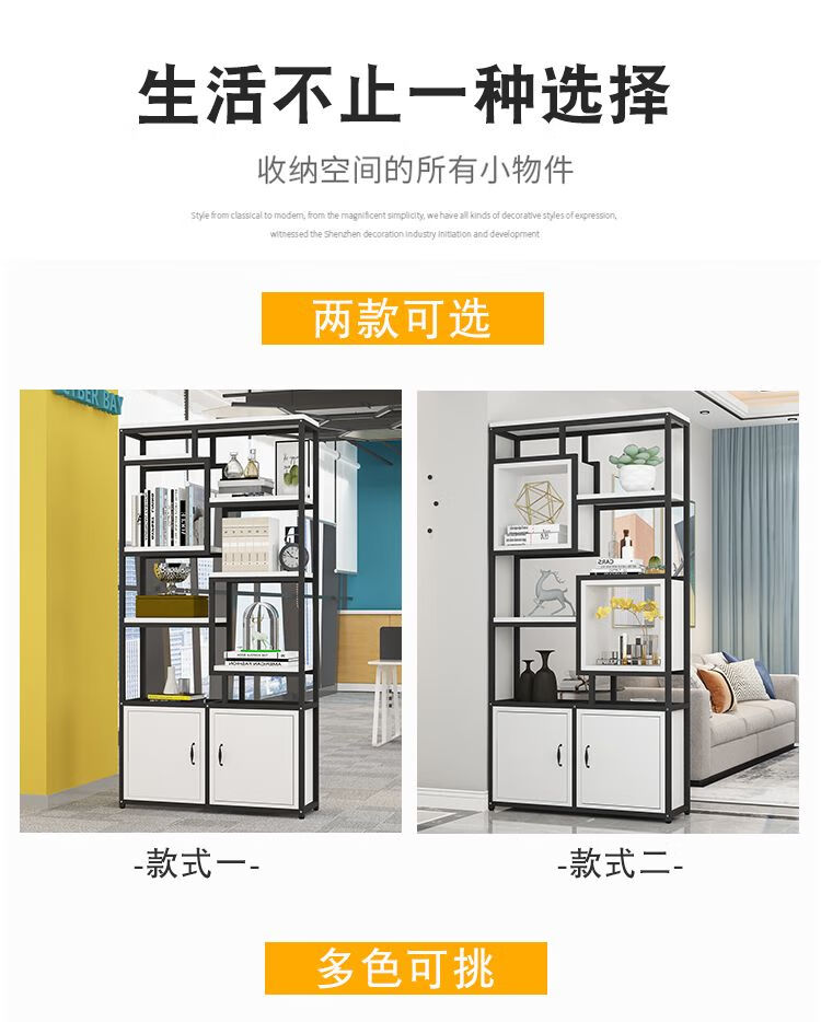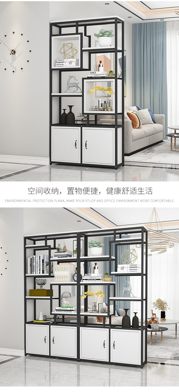 弘星隆金属铁艺隔断置物架办公室简约现代书架客厅玄关定制 黑色架子+暖白色板 A款80长*深30*高200cm加厚