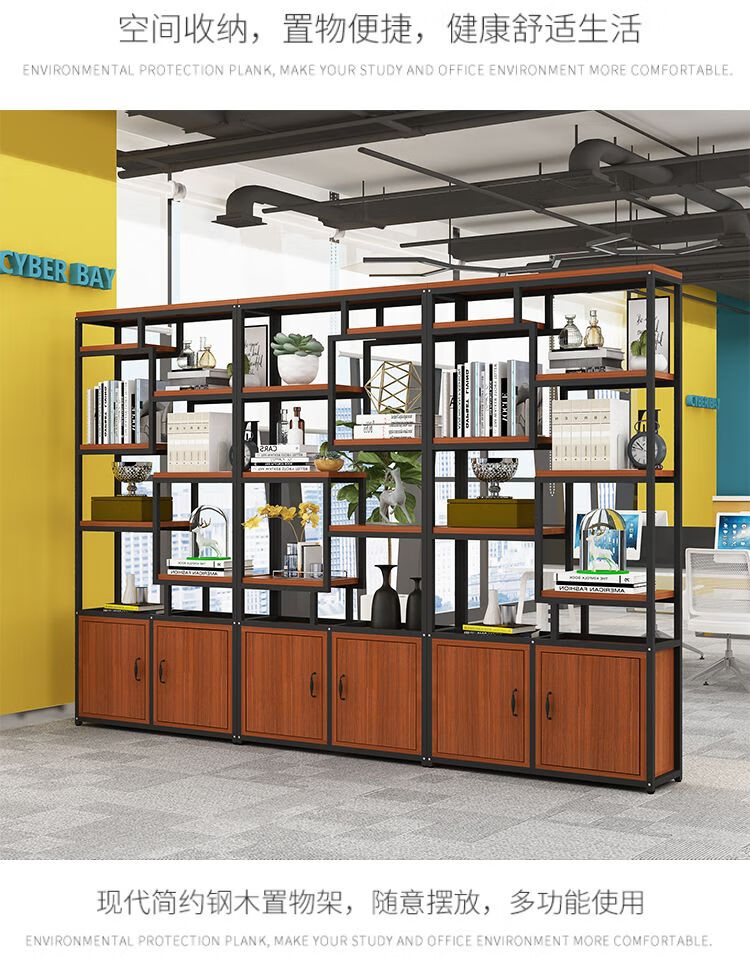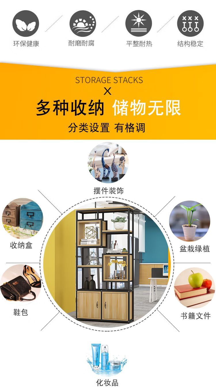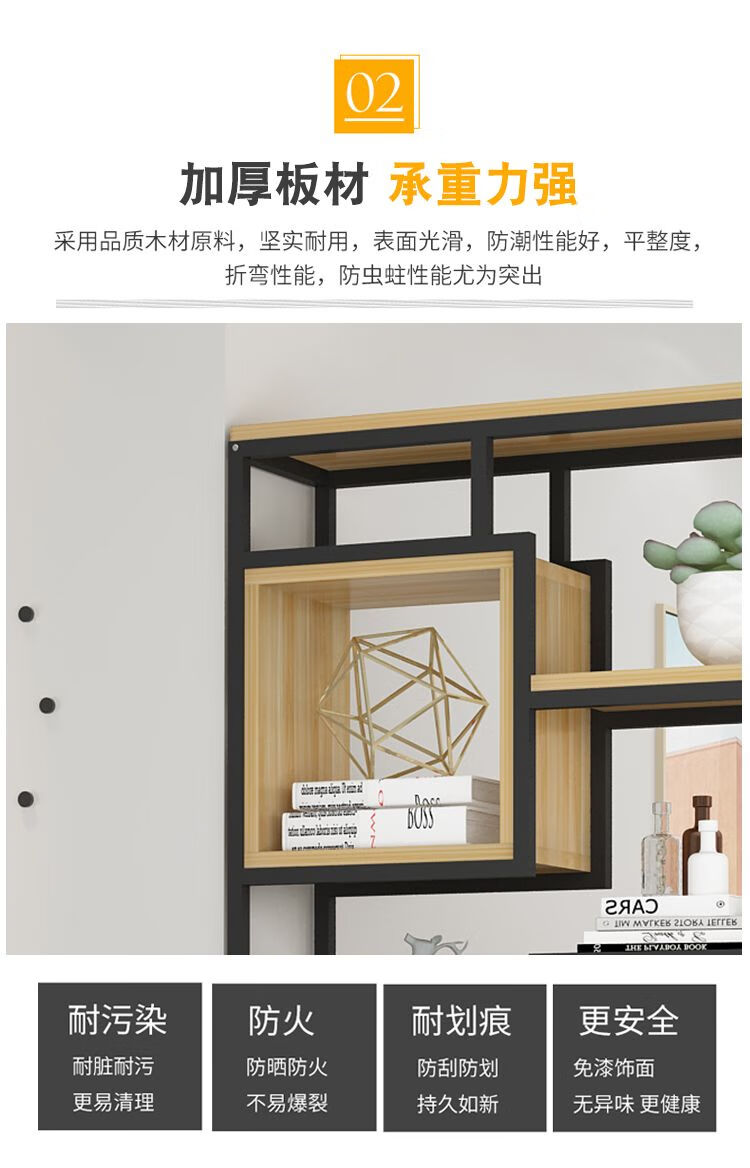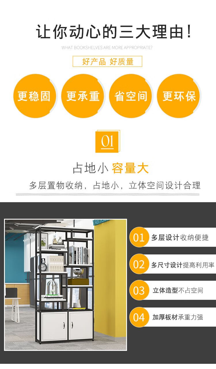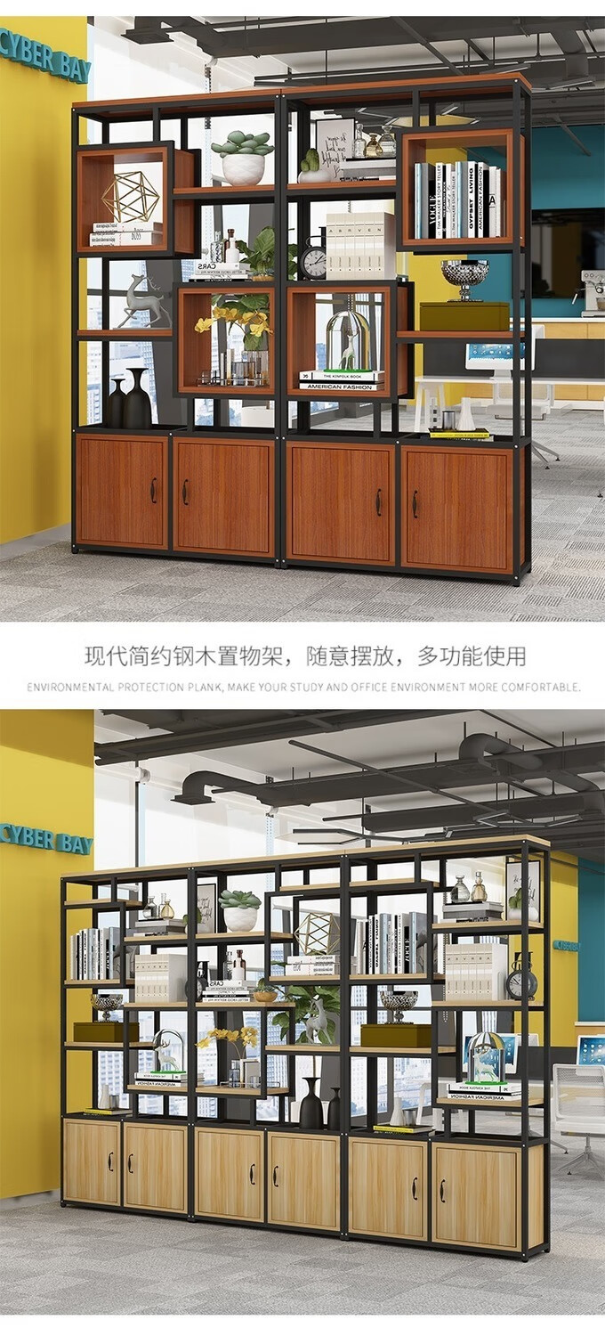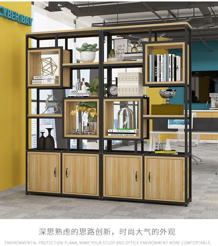 弘星隆金属铁艺隔断置物架办公室简约现代书架客厅玄关定制 黑色架子+暖白色板 A款80长*深30*高200cm加厚