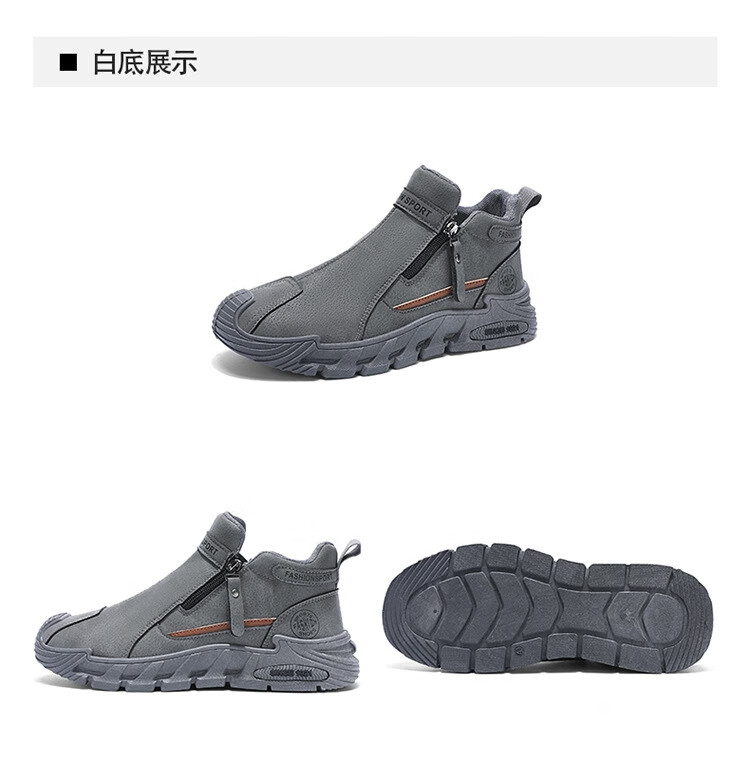 稻草人(MEXICAN)无鞋带男鞋秋冬工地干活防滑耐磨一脚蹬上班工作防水运动时尚潮鞋 CF56灰色旗舰款【更耐穿】 40
