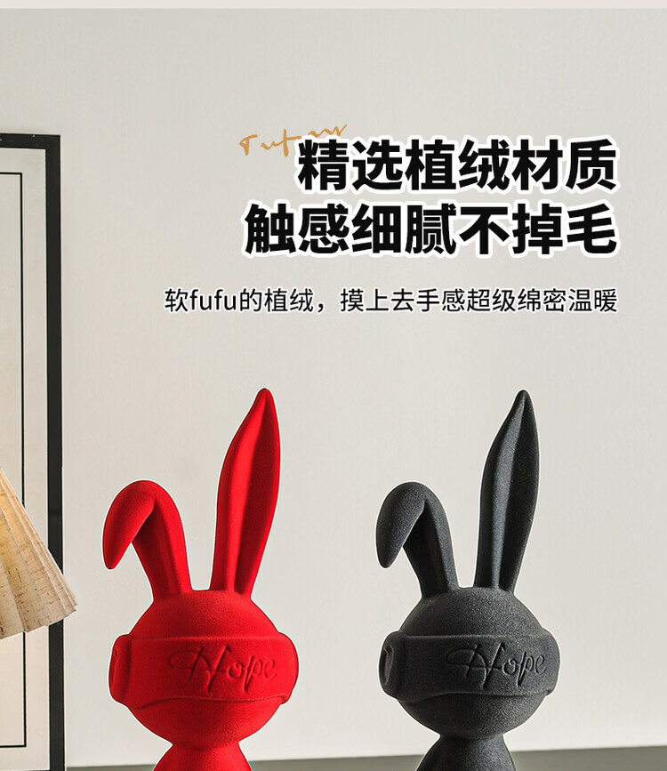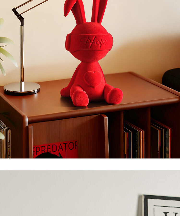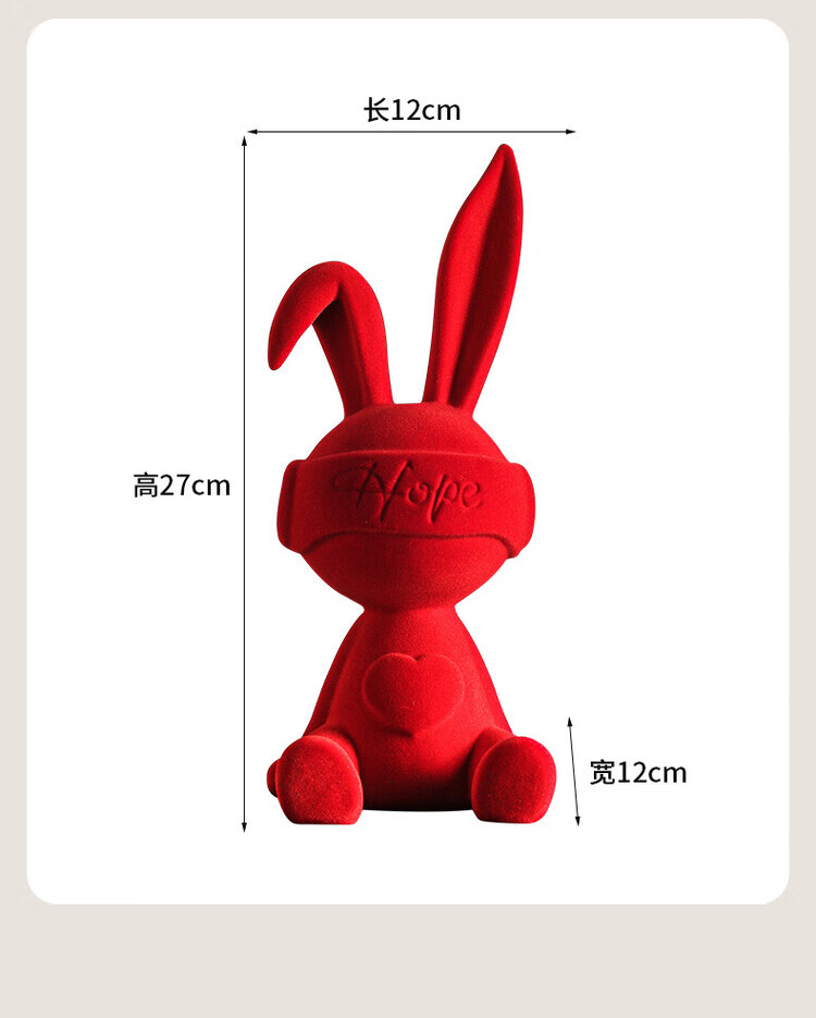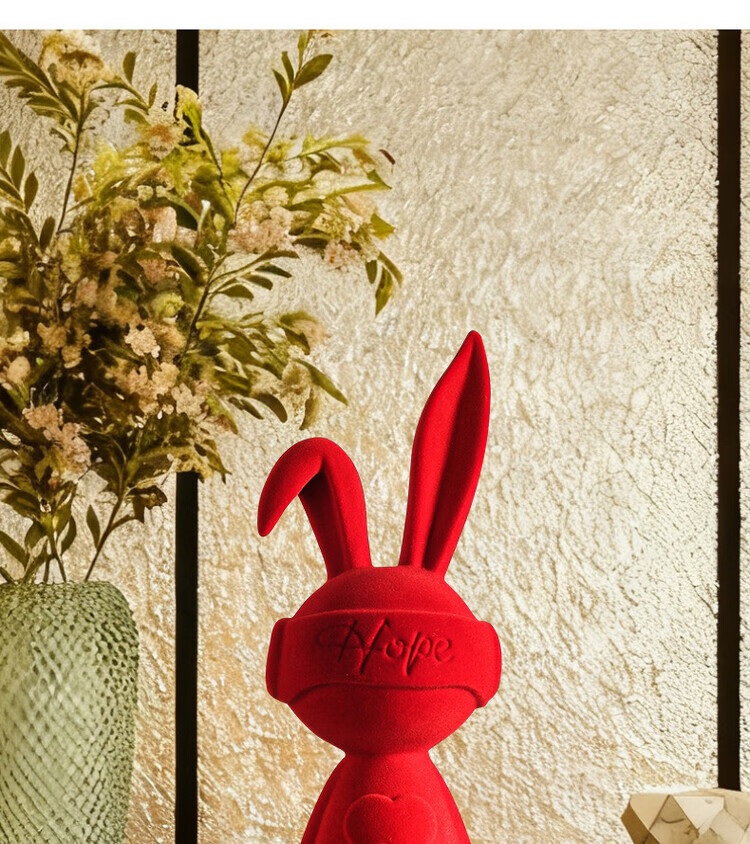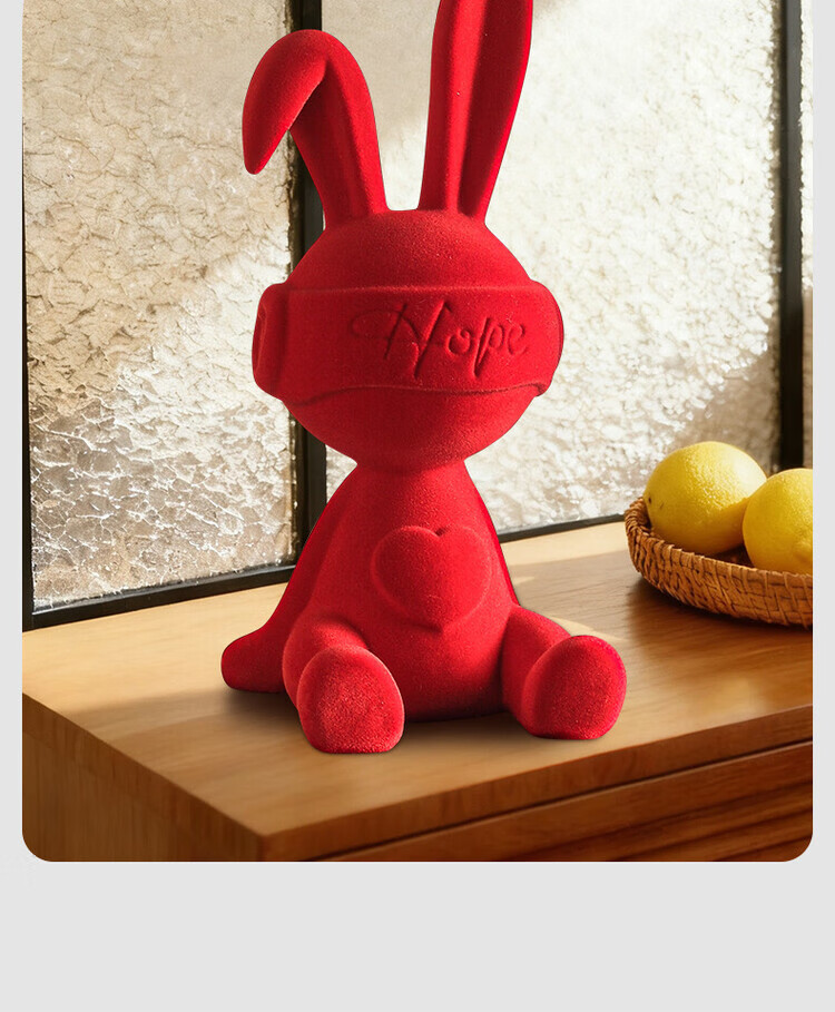 OYKTN情绪稳定坐姿兔子摆件客厅轻奢高档电视柜酒柜装饰品乔迁新居礼物 【礼盒装】希望之兔-植绒工艺-绯红色