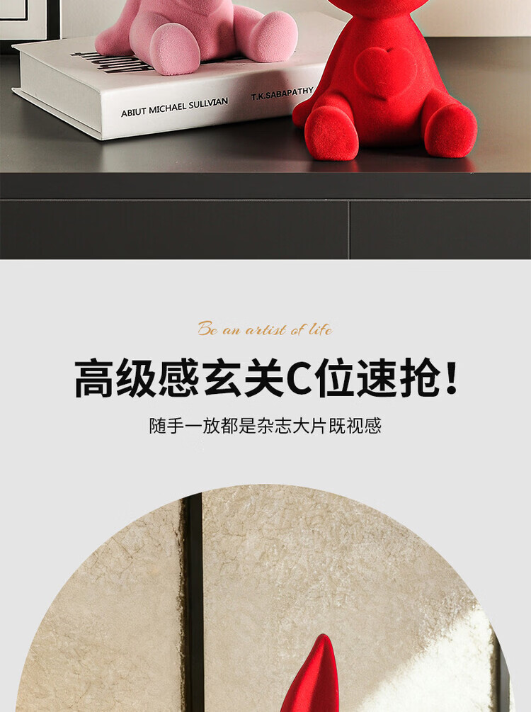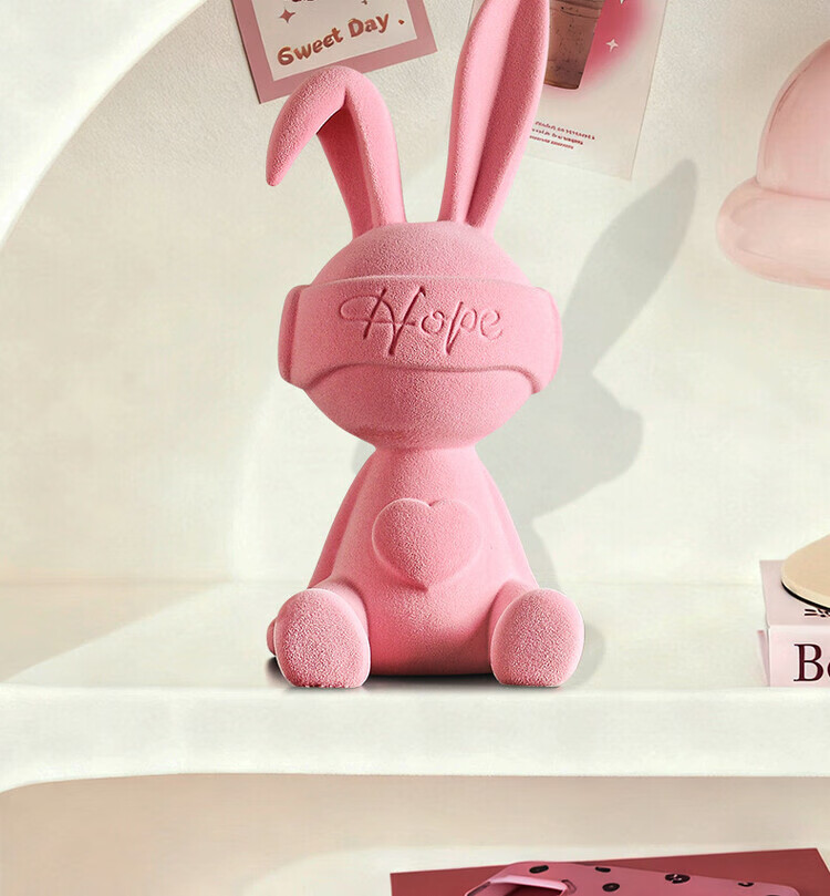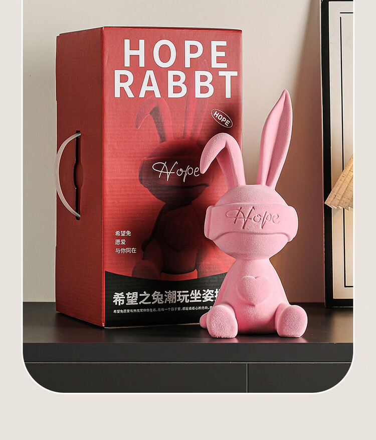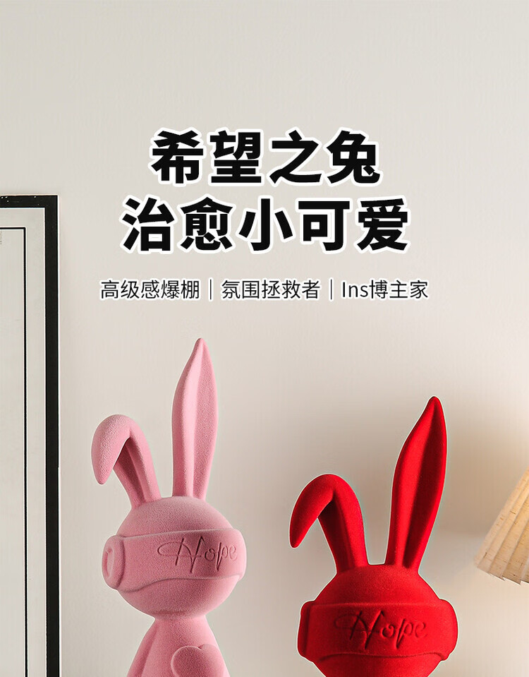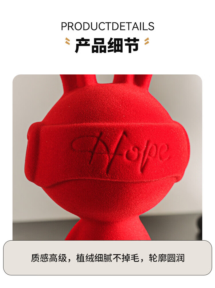 OYKTN情绪稳定坐姿兔子摆件客厅轻奢高档电视柜酒柜装饰品乔迁新居礼物 【礼盒装】希望之兔-植绒工艺-绯红色