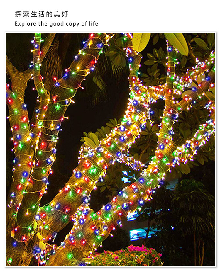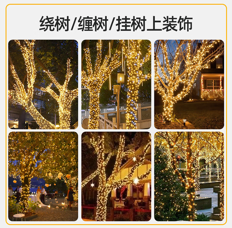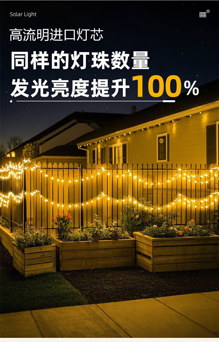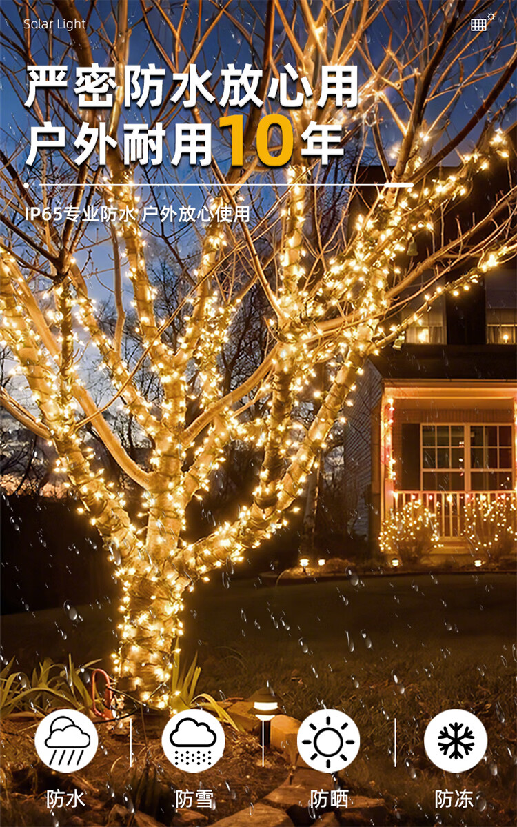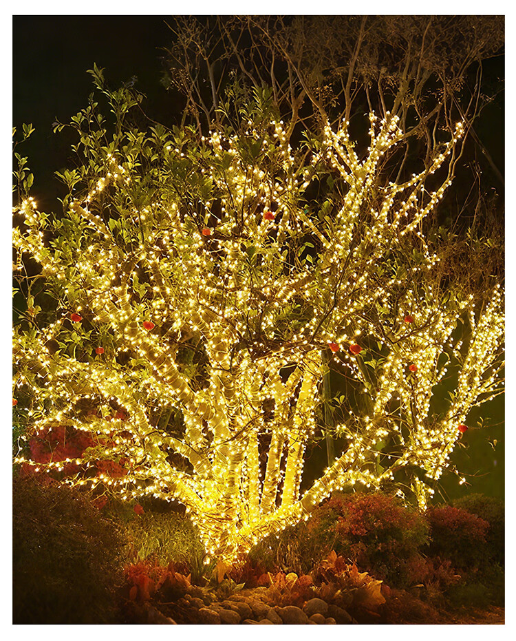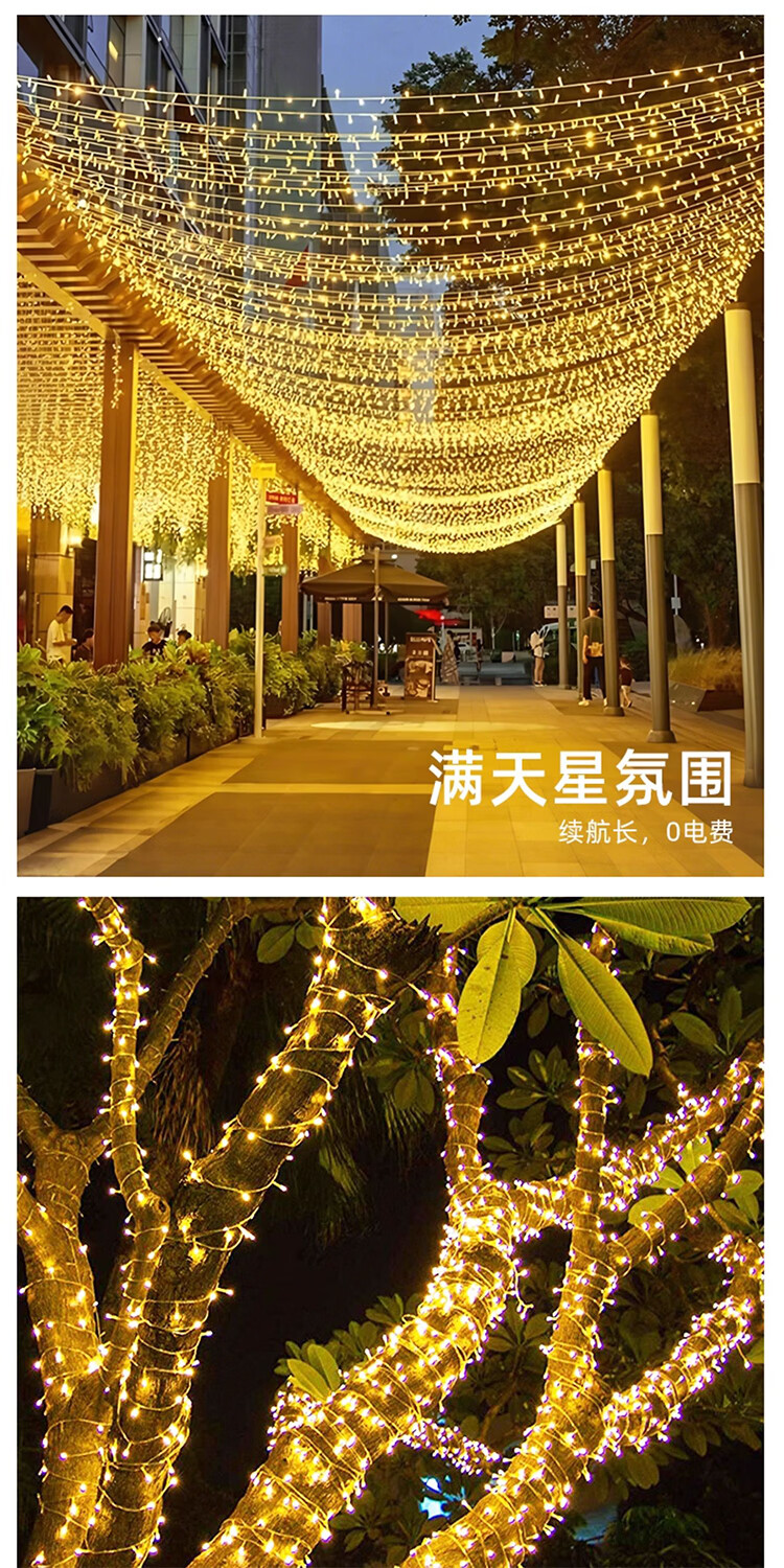 筏芯太阳能户外灯家用庭院氛围灯圣诞挂树彩灯串灯满天星led防水灯带 【2倍亮度】1000灯100米-暖白