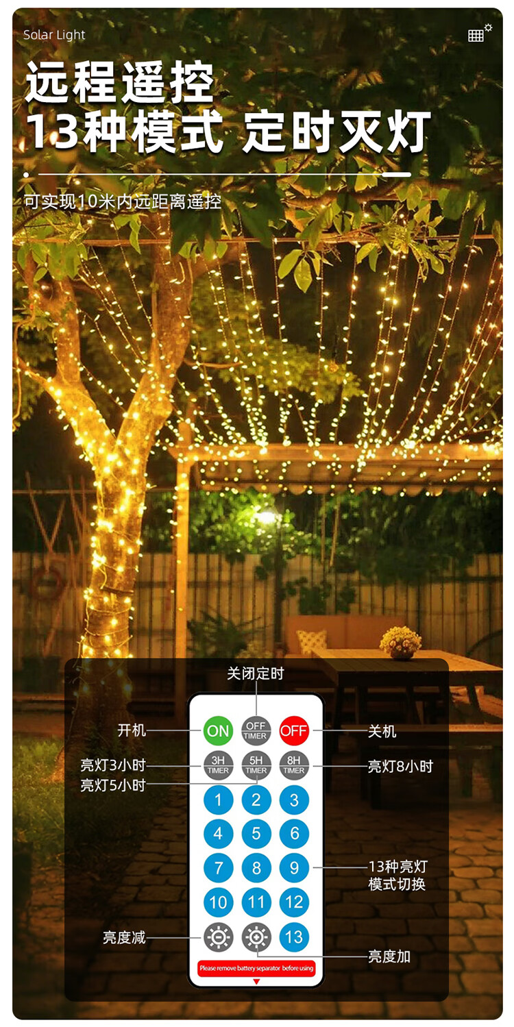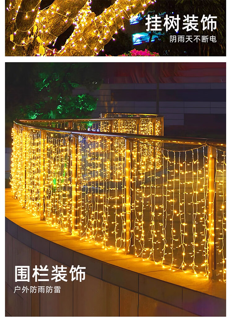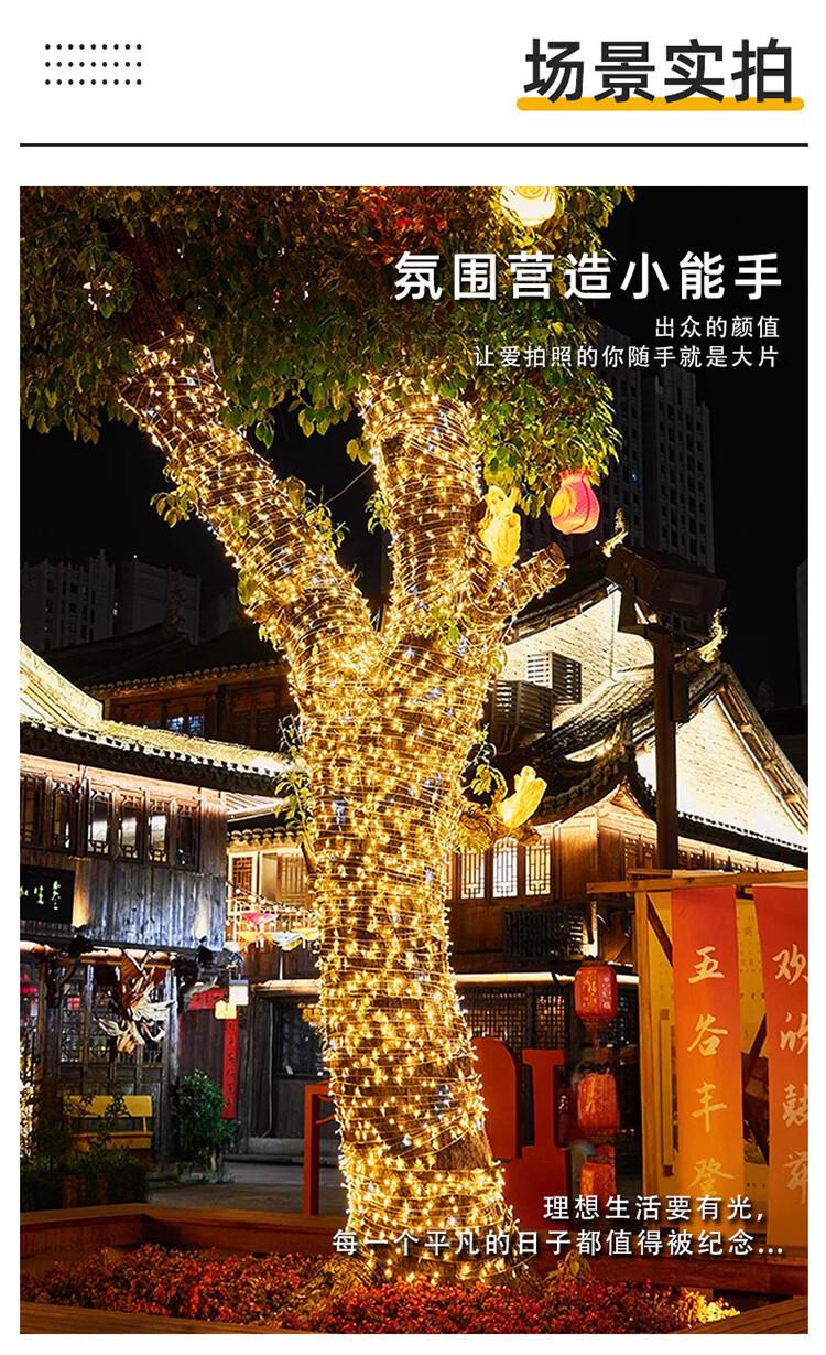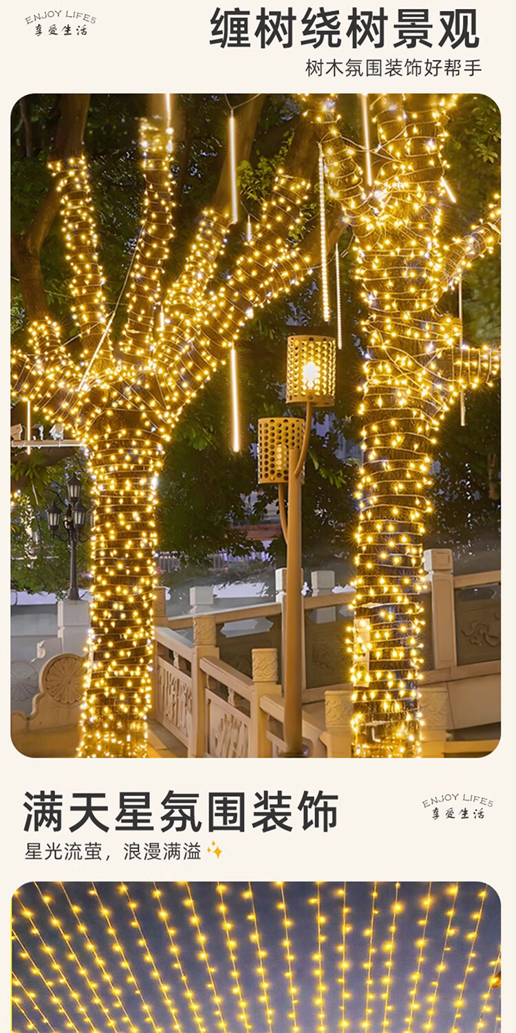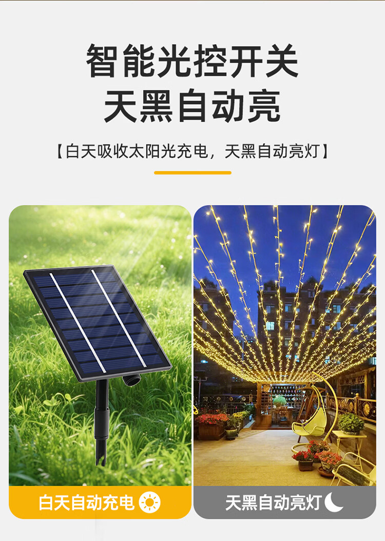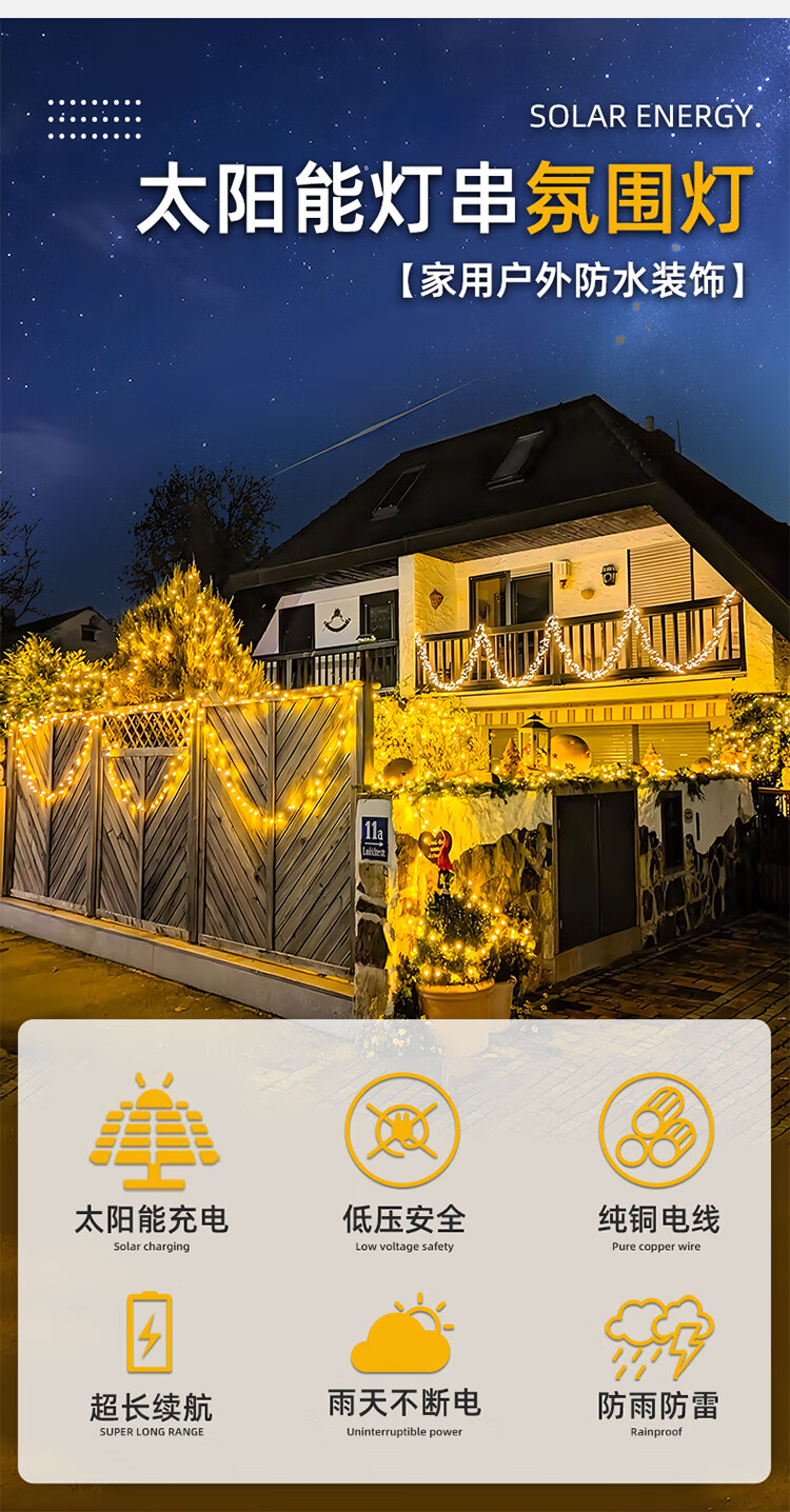 筏芯太阳能户外灯家用庭院氛围灯圣诞挂树彩灯串灯满天星led防水灯带 【2倍亮度】1000灯100米-暖白