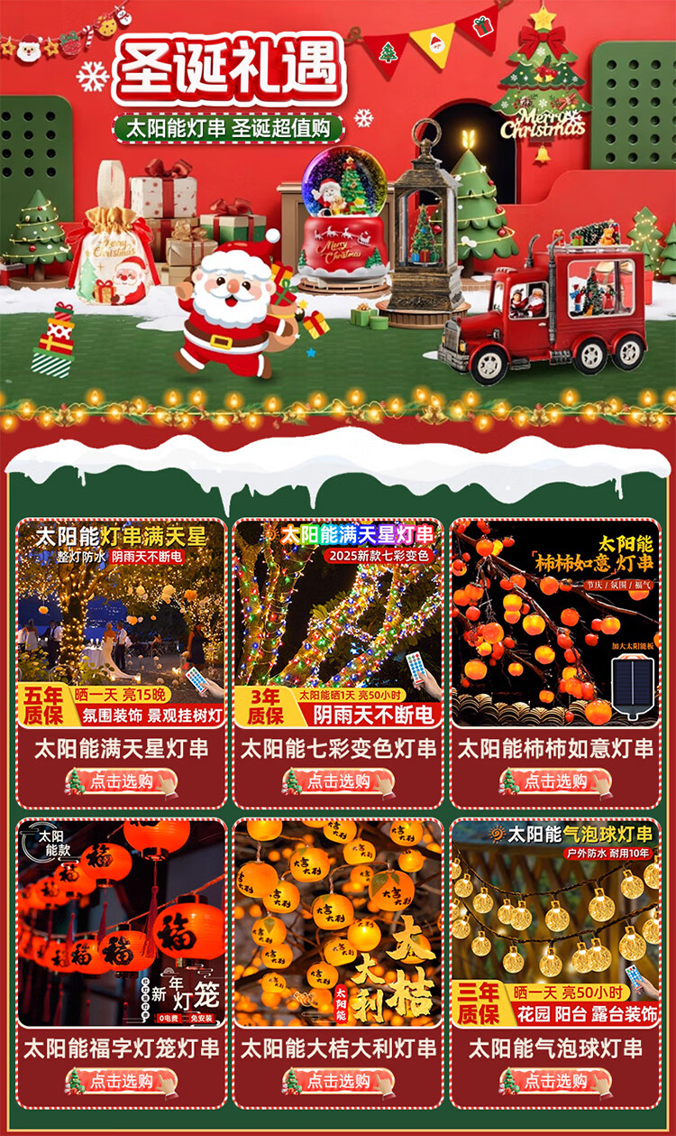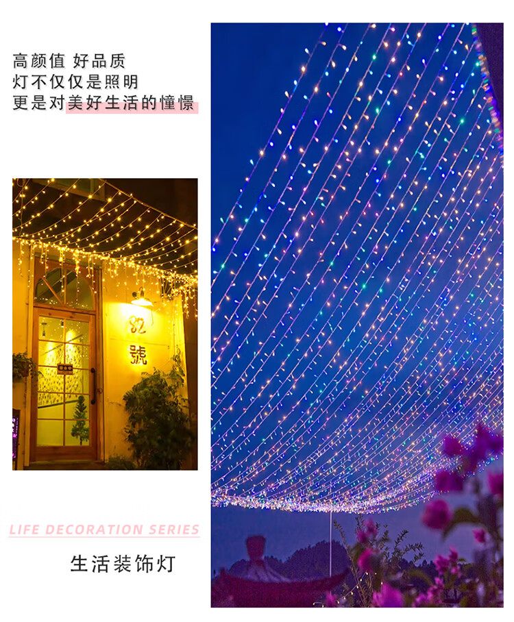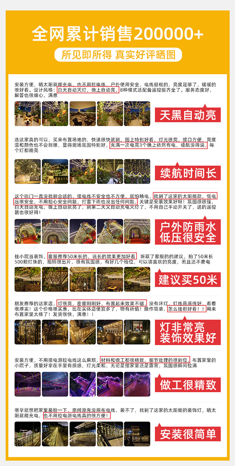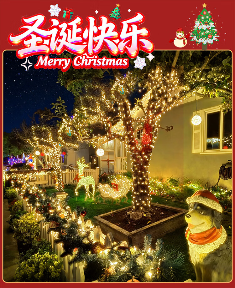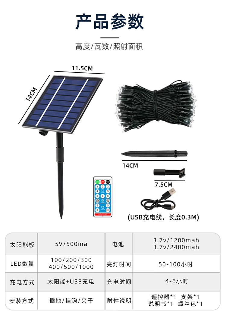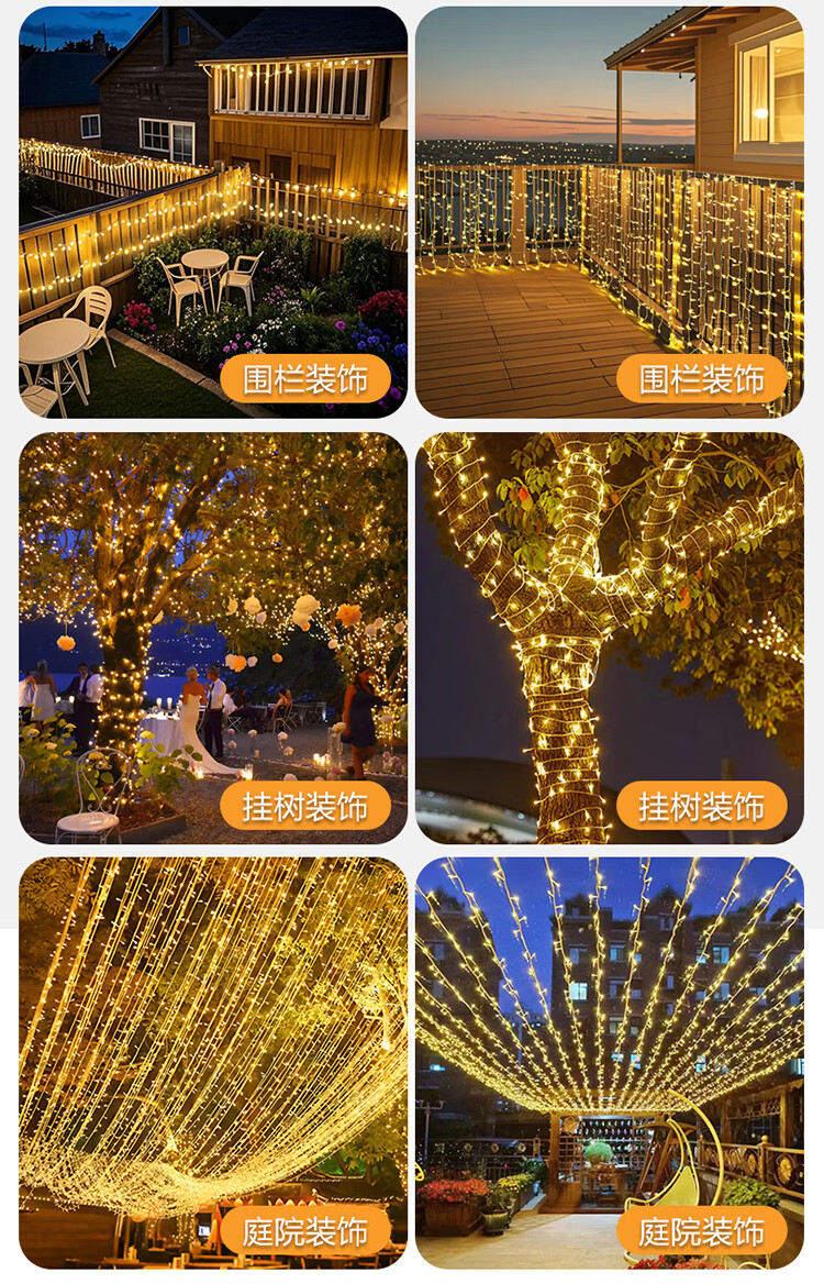 筏芯太阳能户外灯家用庭院氛围灯圣诞挂树彩灯串灯满天星led防水灯带 【2倍亮度】1000灯100米-暖白