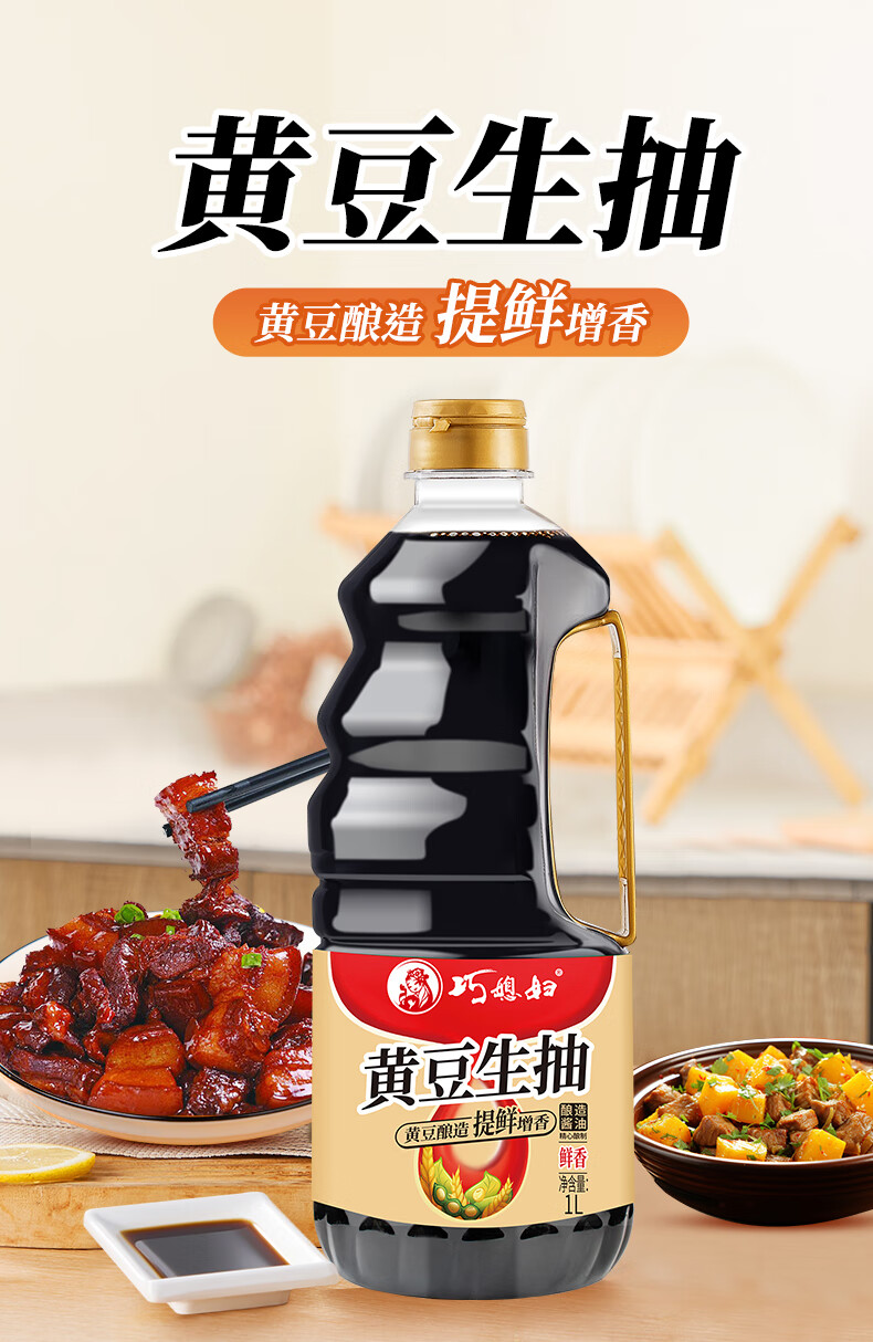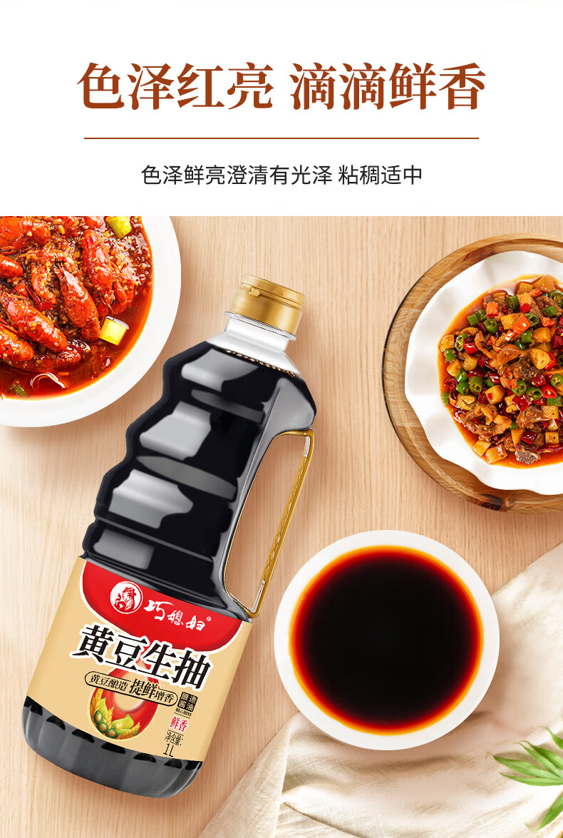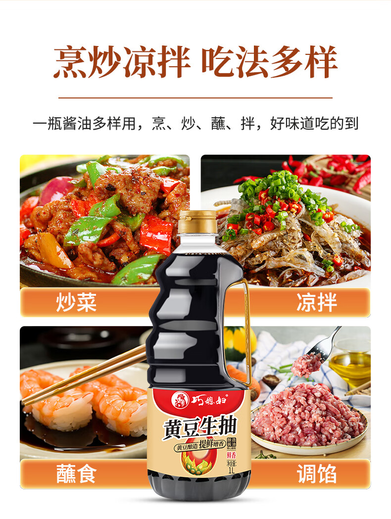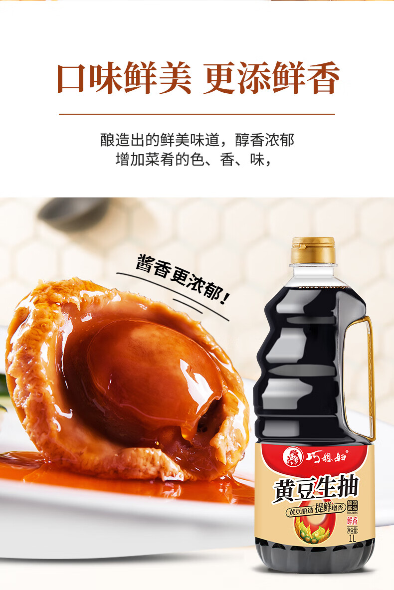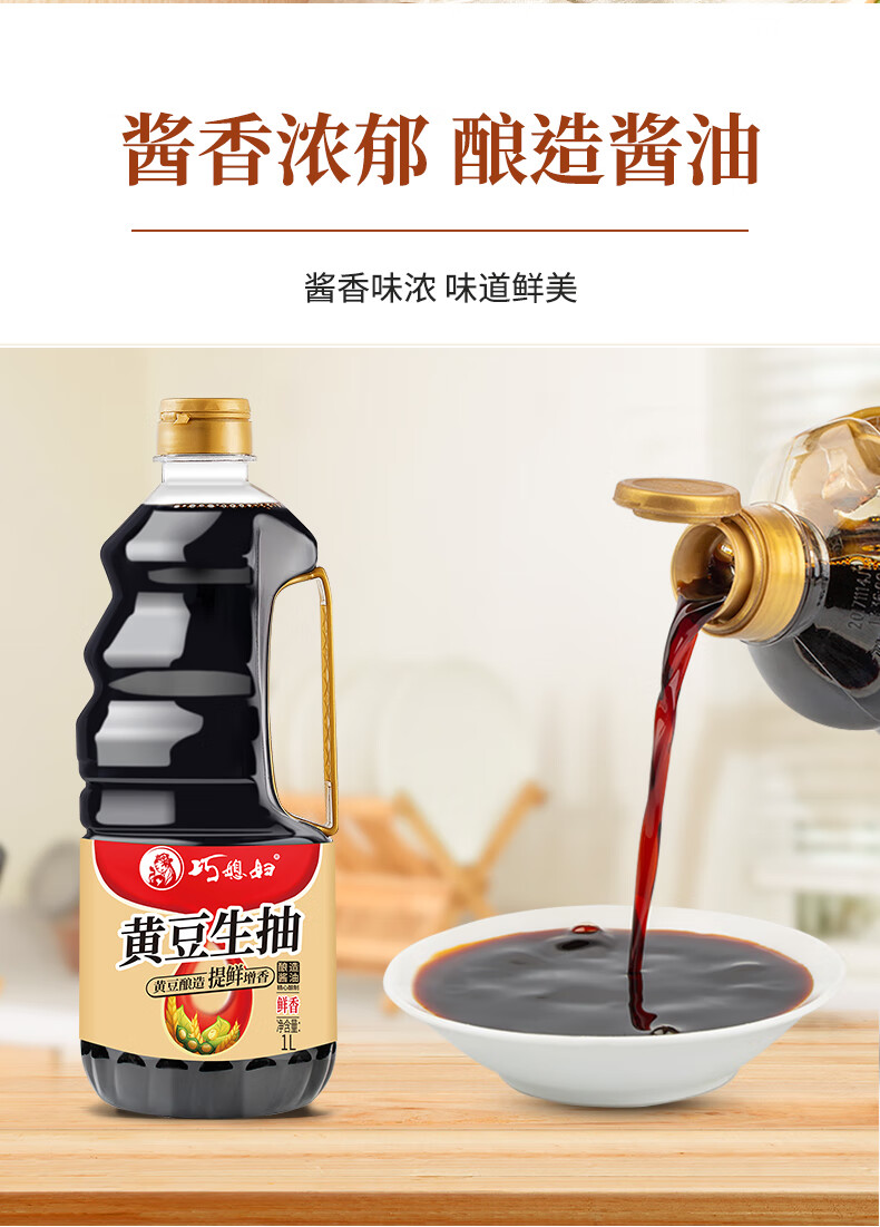 巧媳妇黄豆生抽酱油凉拌炒菜烹饪调味品家用厨房调料瓶装酿造酱油1L 黄豆生抽1L*3