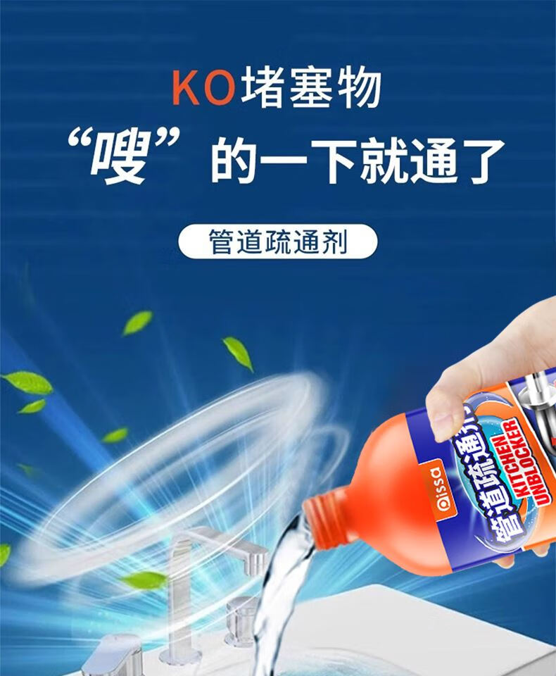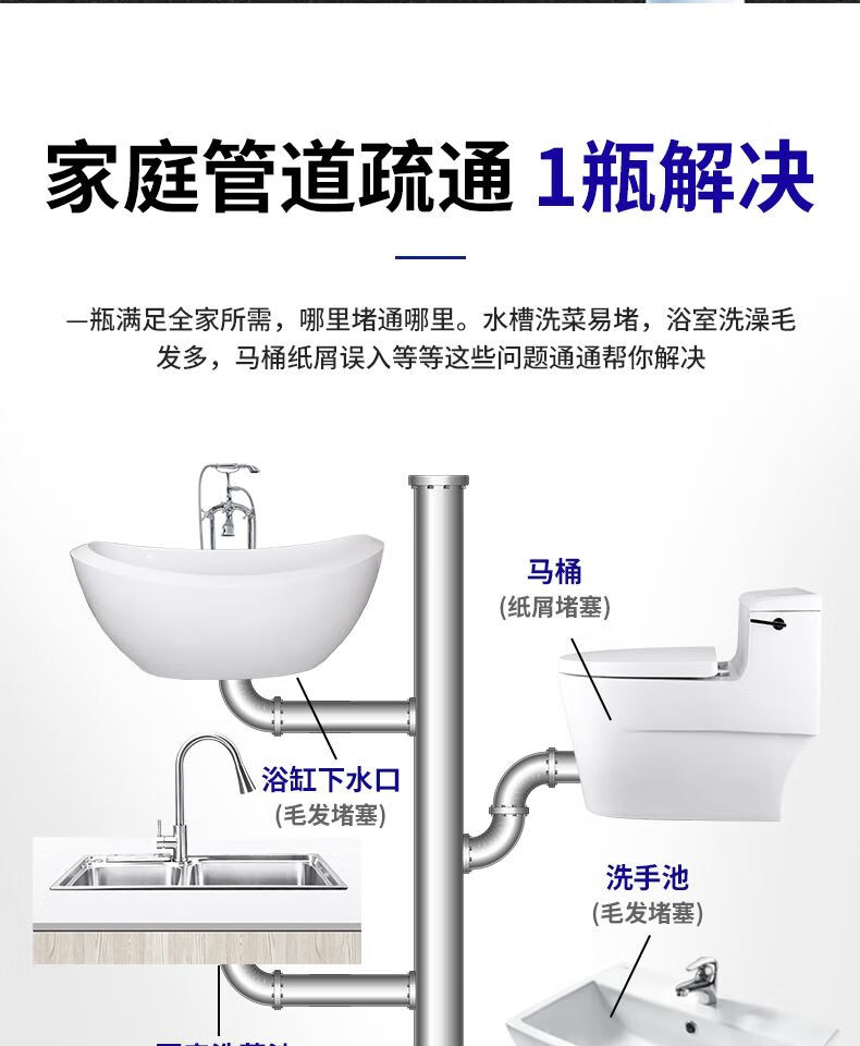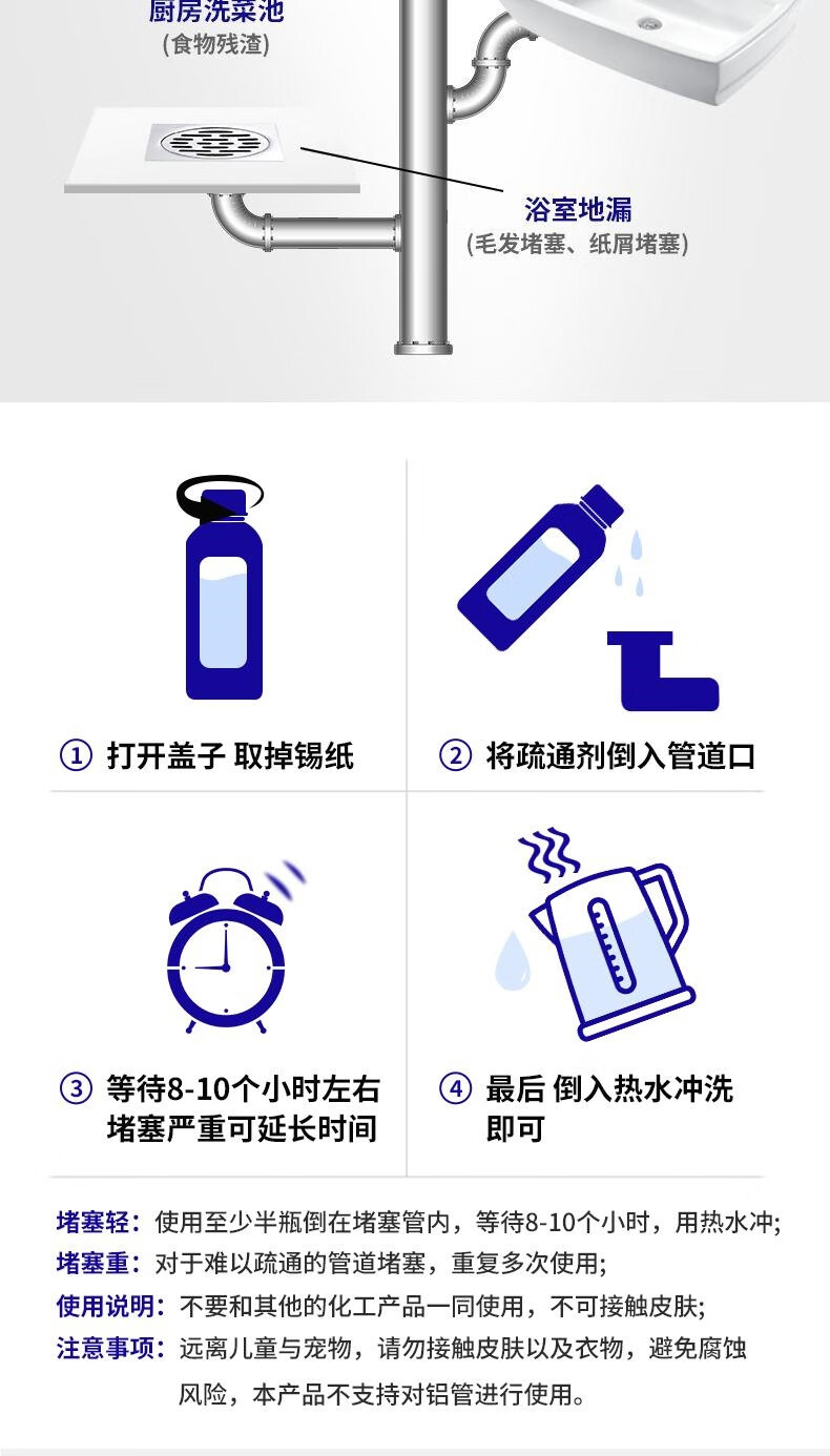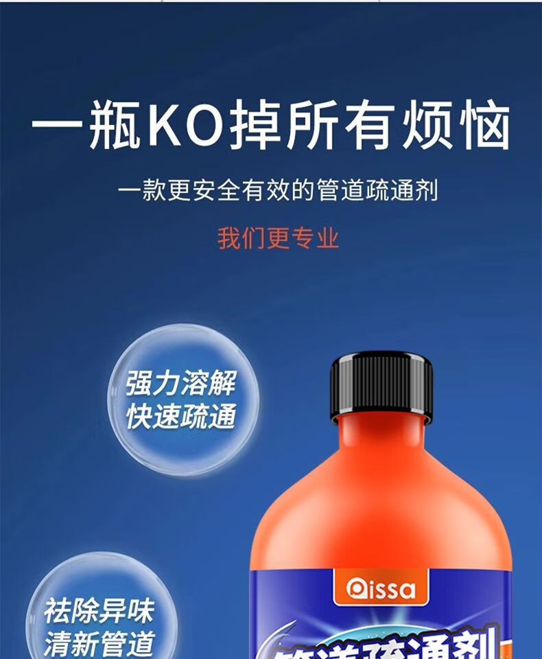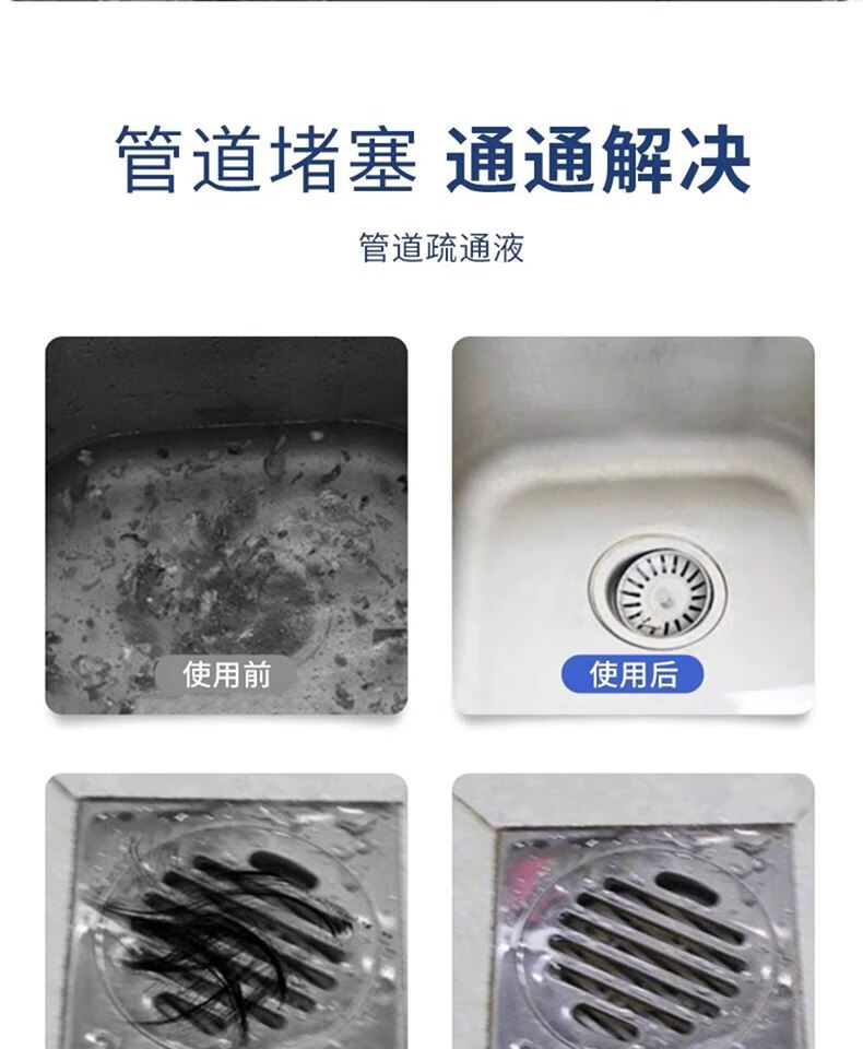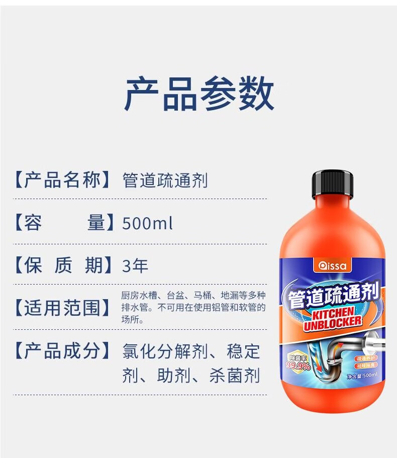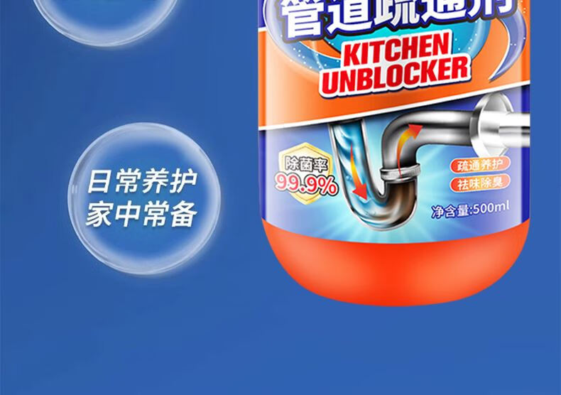 管道疏通剂强力溶解剂液体通厨房下水道油污神器厕所马桶堵塞专用 管道疏通剂红瓶【500g】*2 无规格