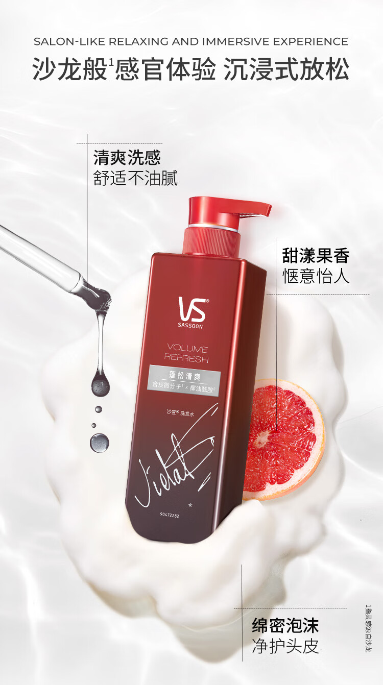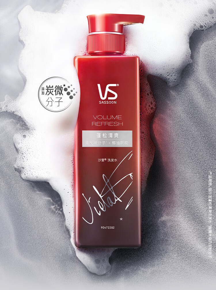 沙宣蓬蓬瓶无硅油蓬松净澈洗发水男士女士活性炭去油洗发露500ml