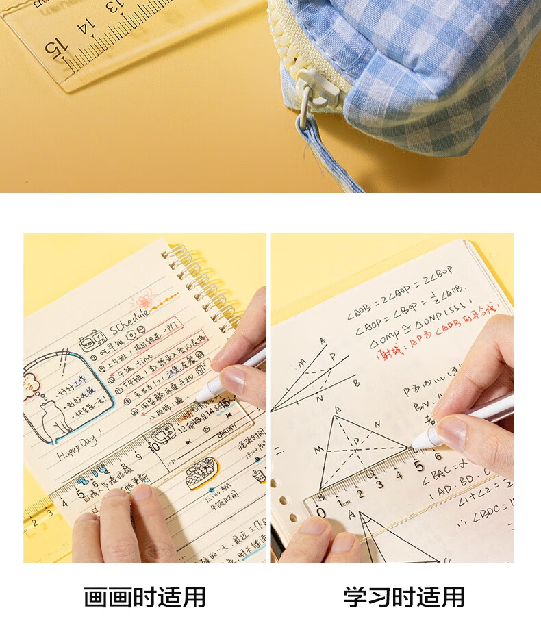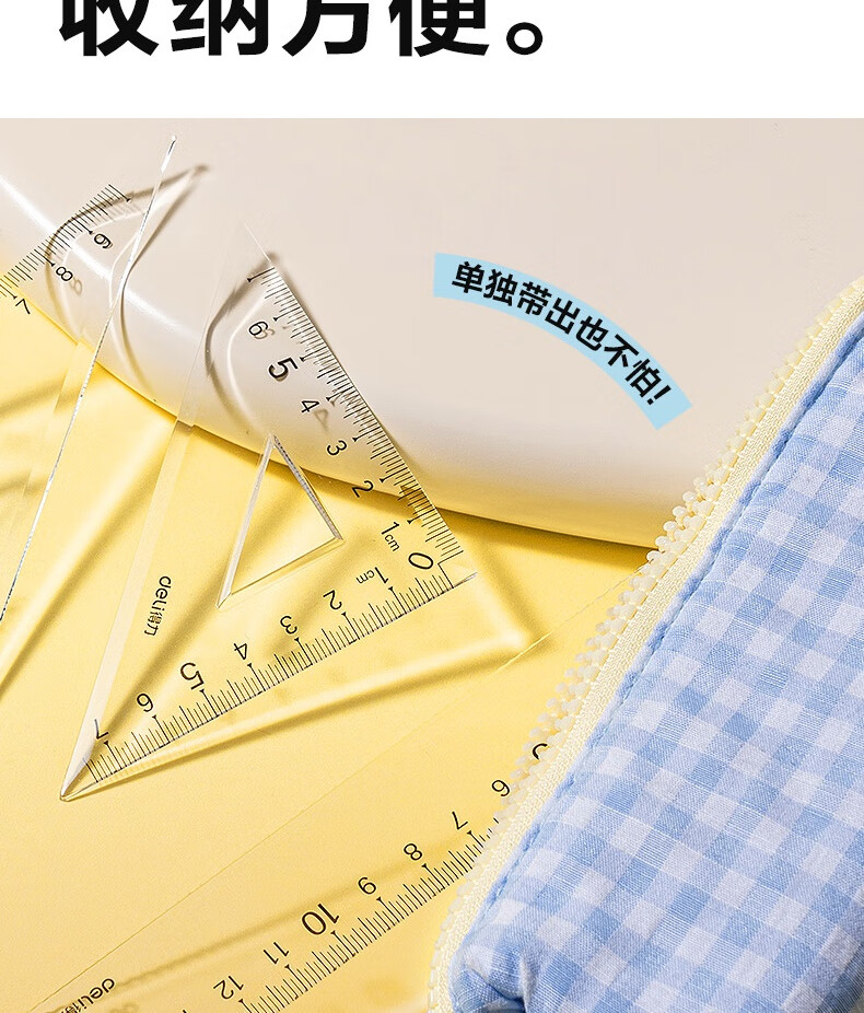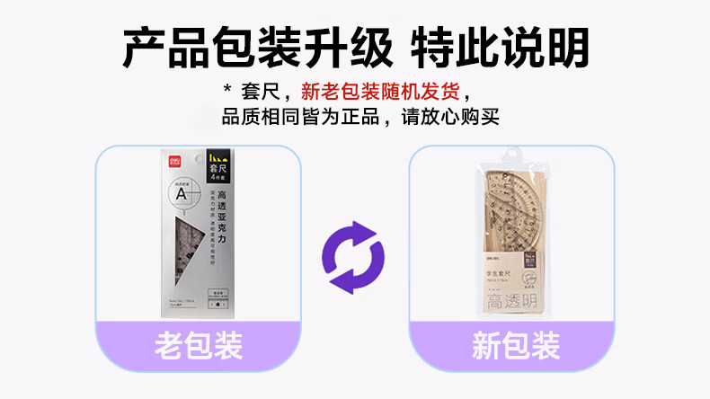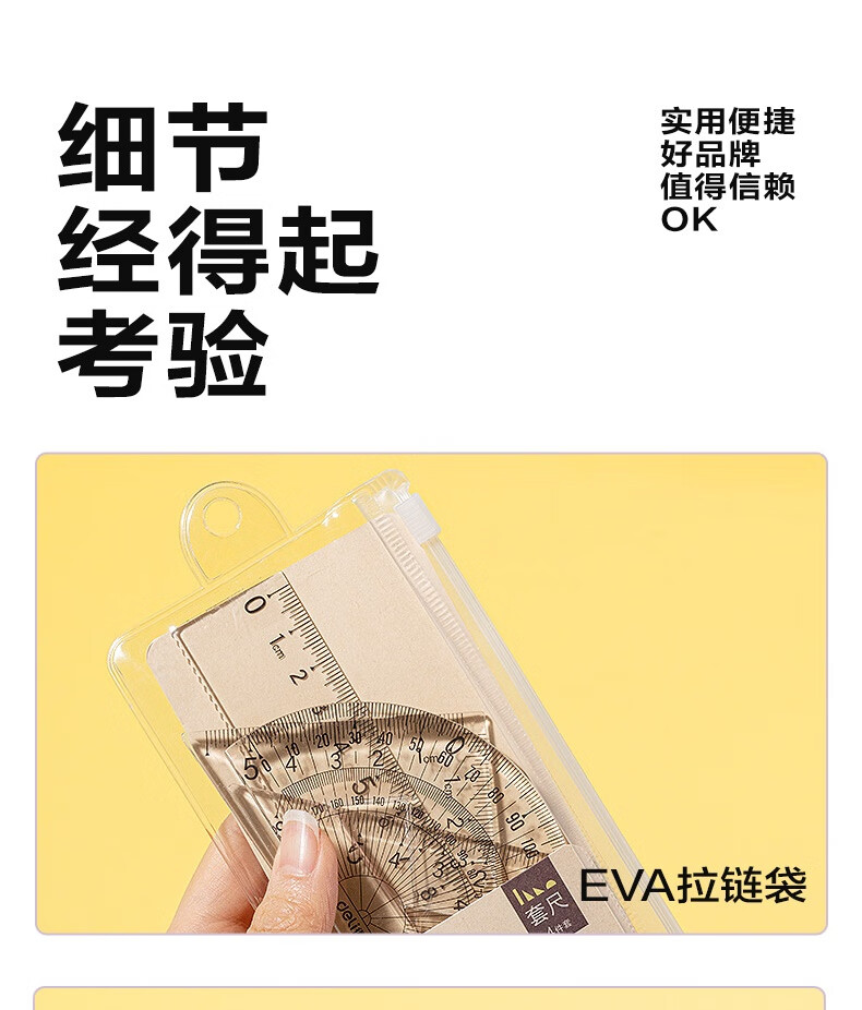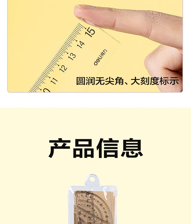 得力(deli)亚克力套尺4件套学生考研文具高考中考考试绘图套尺(直尺*1+三角尺*2+量角器*1)套装尺子