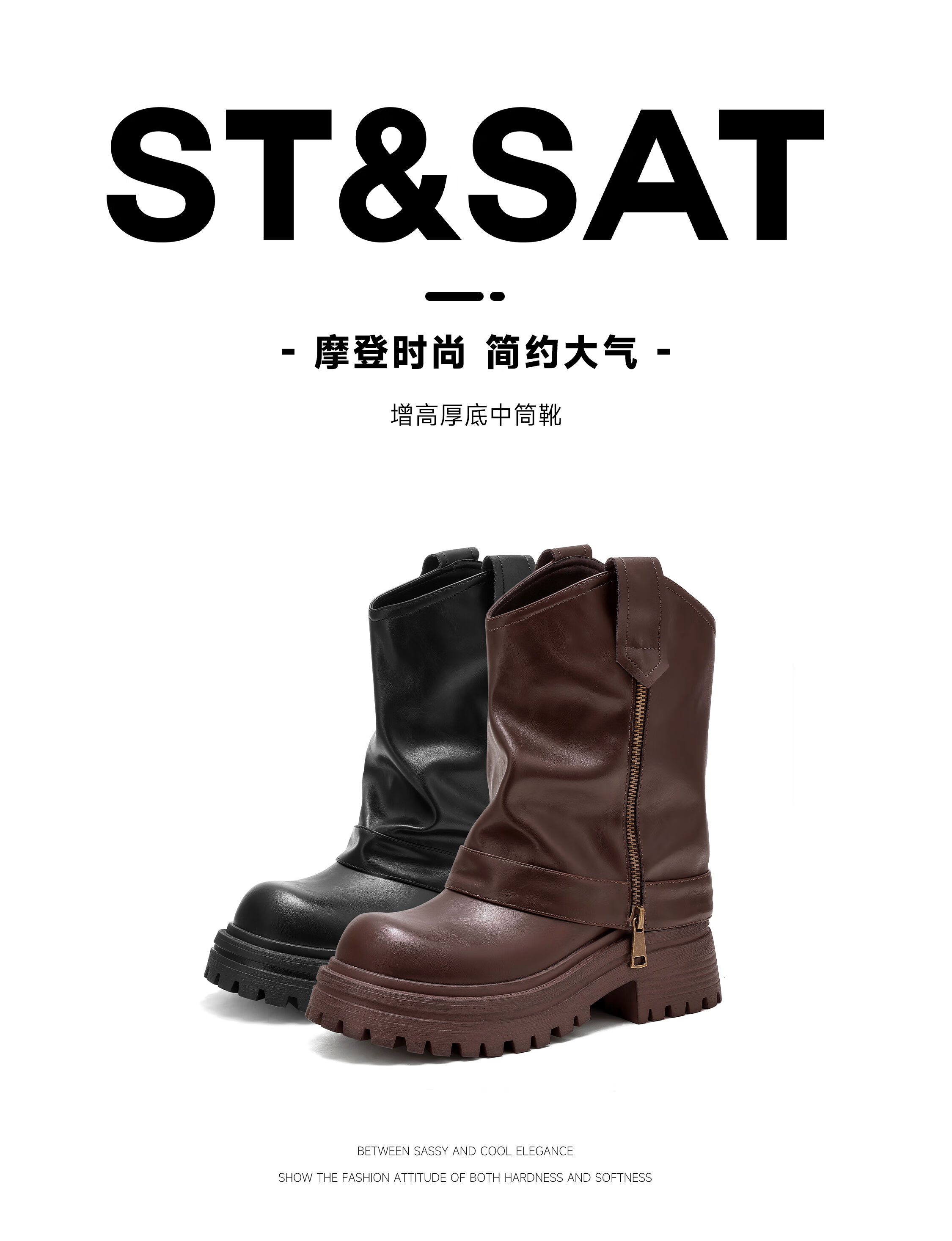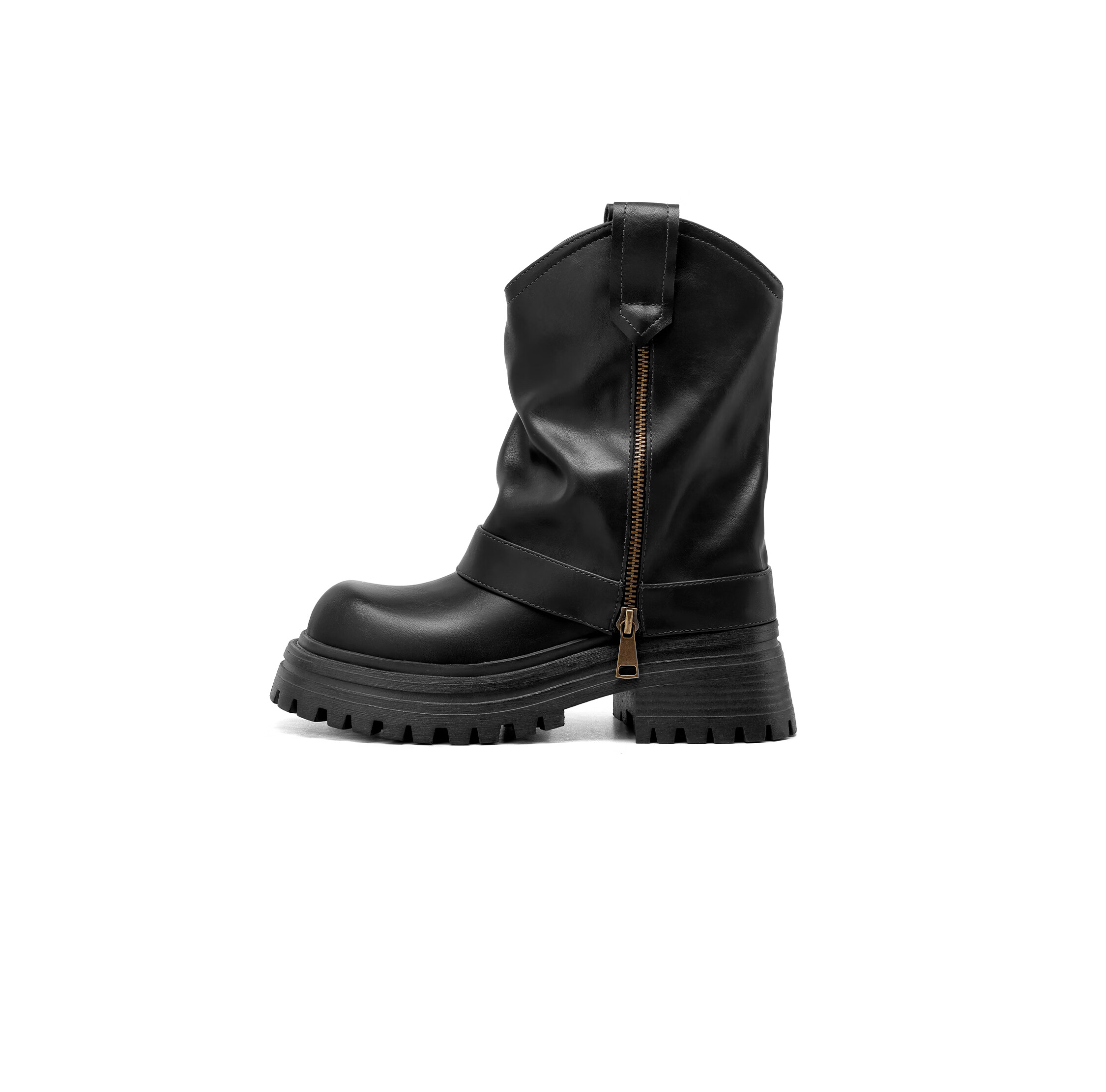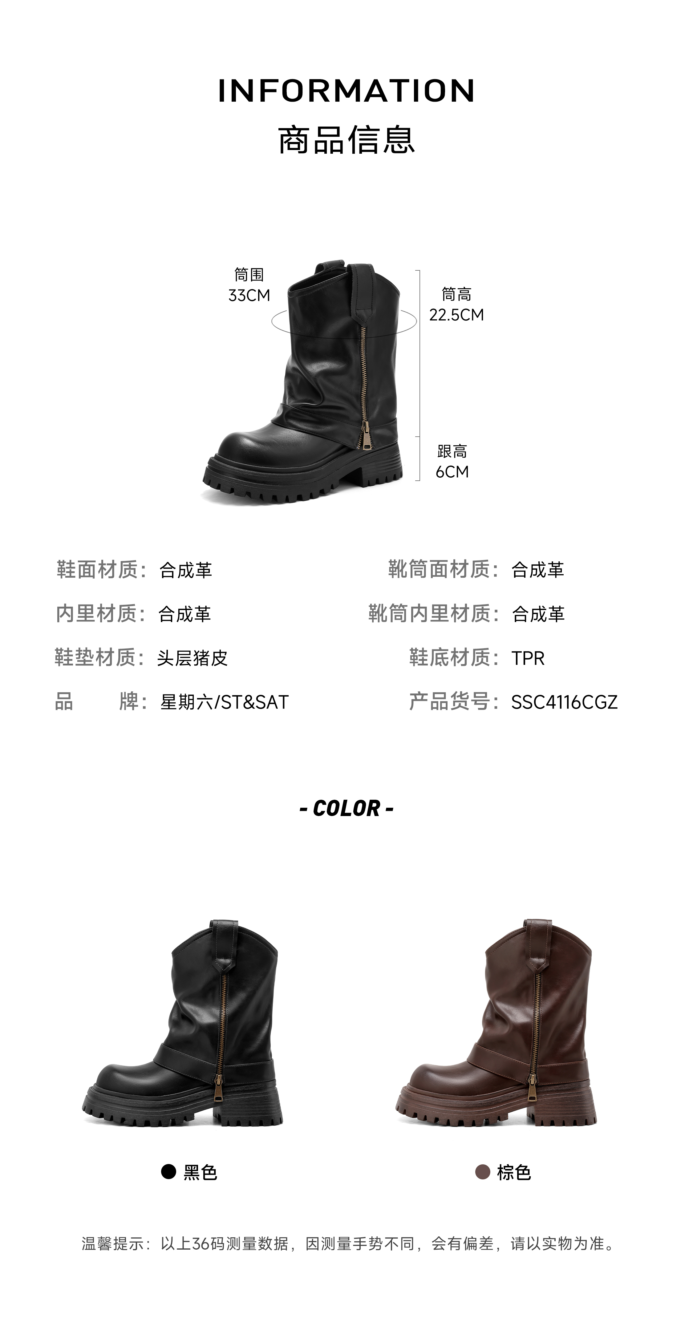 星期六厚底马丁靴女2025新款秋冬骑士西部靴子女爆款堆堆裤管短靴 黑色 【四季百搭】厚底6cm 35