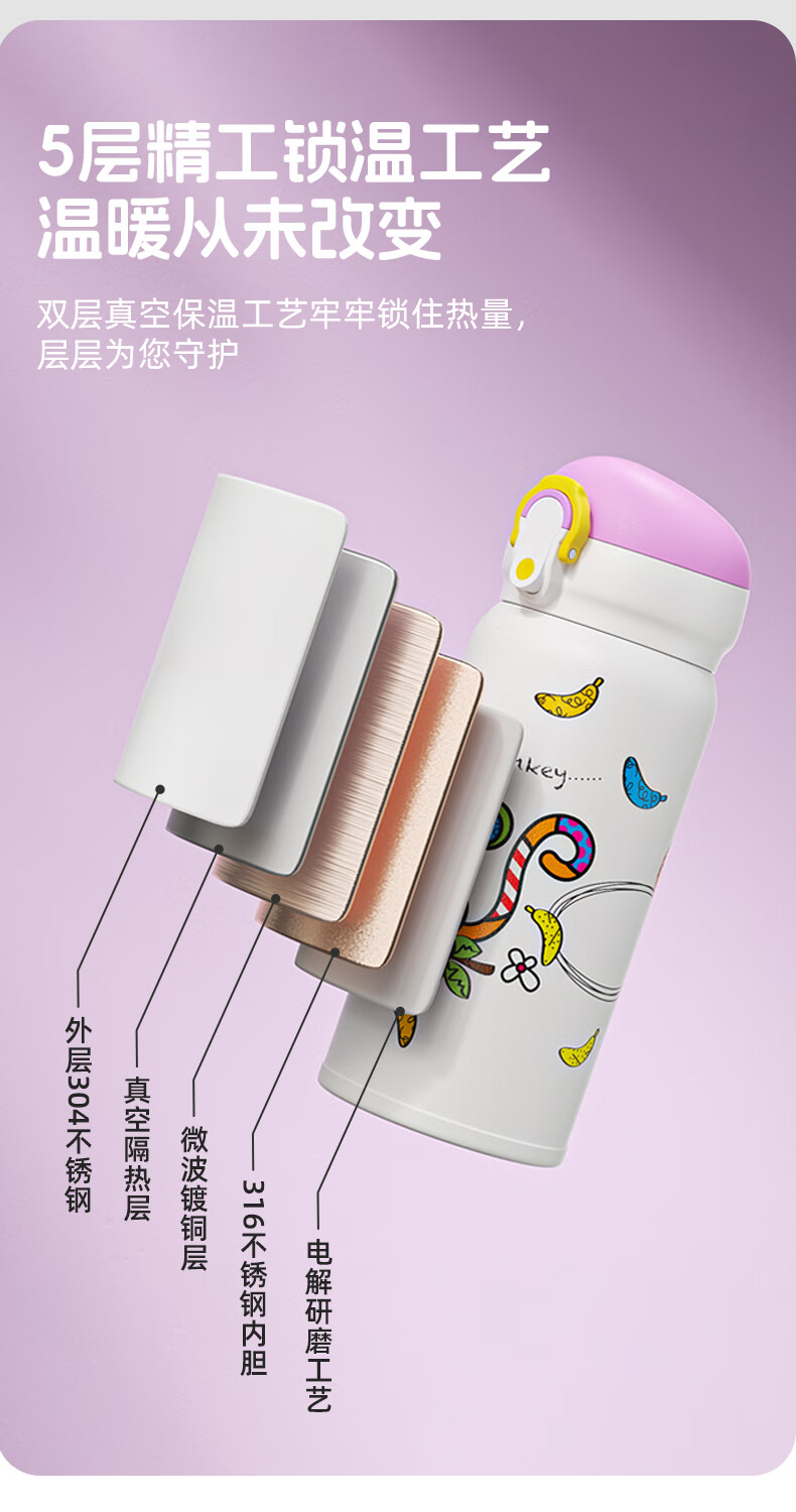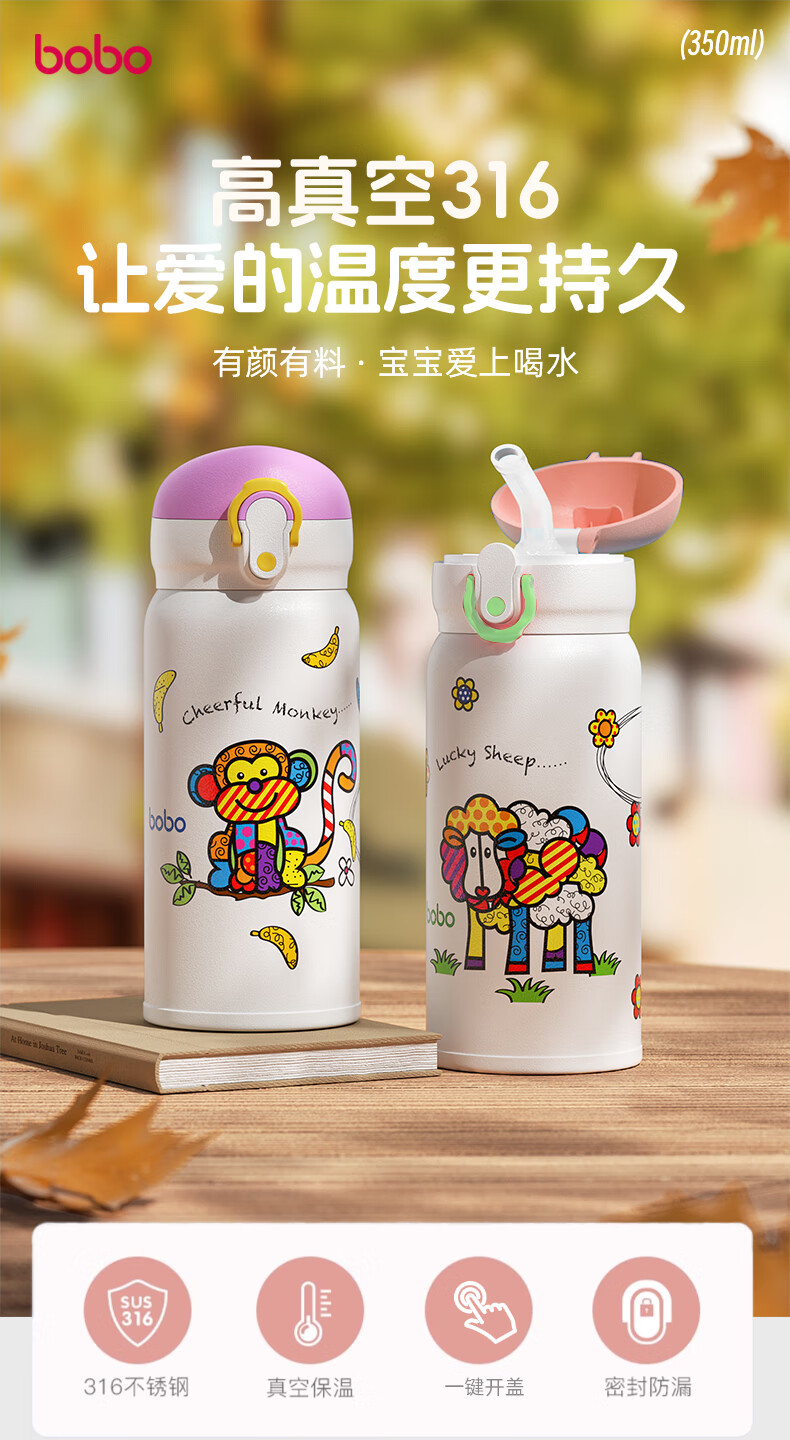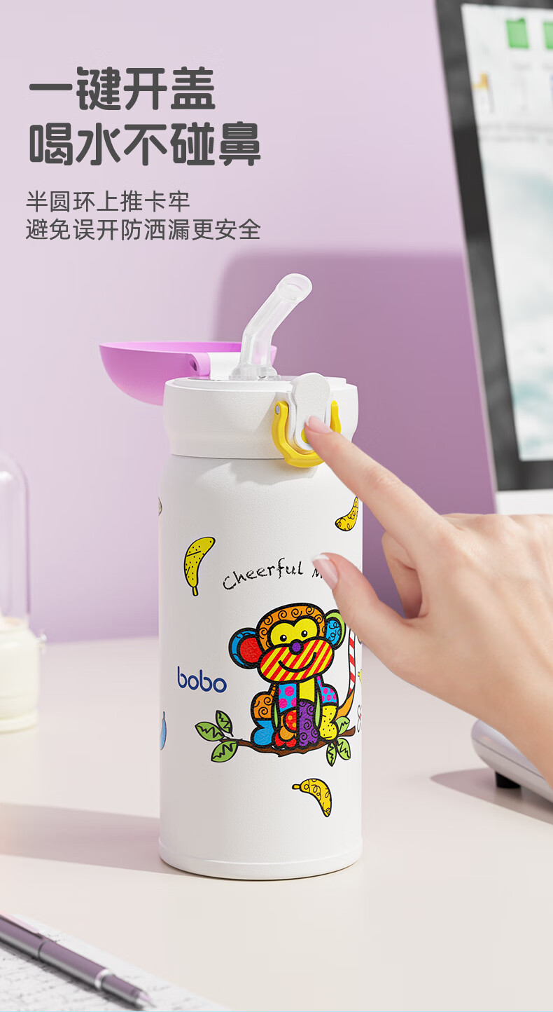 bobo儿童保温杯吸管水杯6个月以上婴幼儿316不锈钢宝宝上学专用 紫色