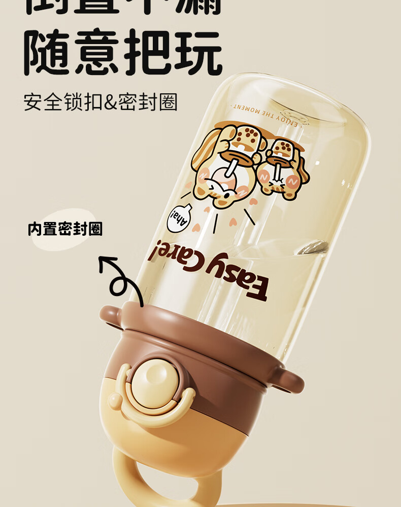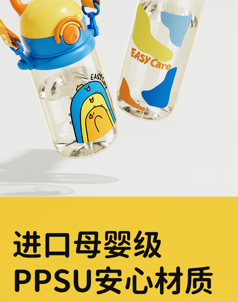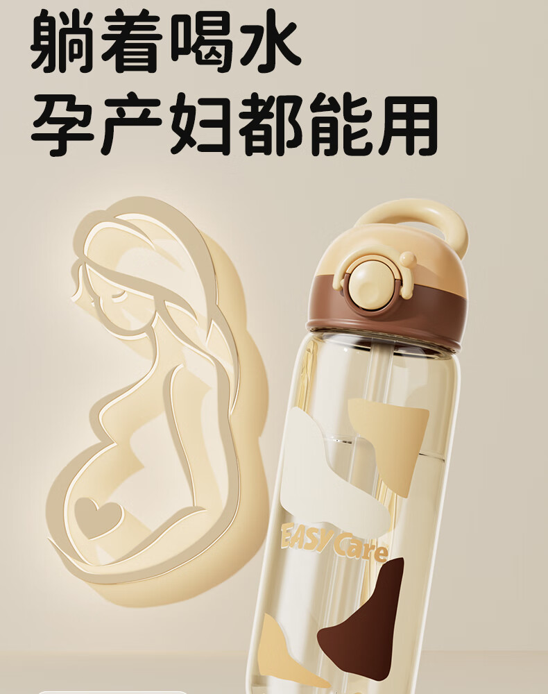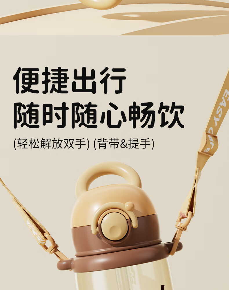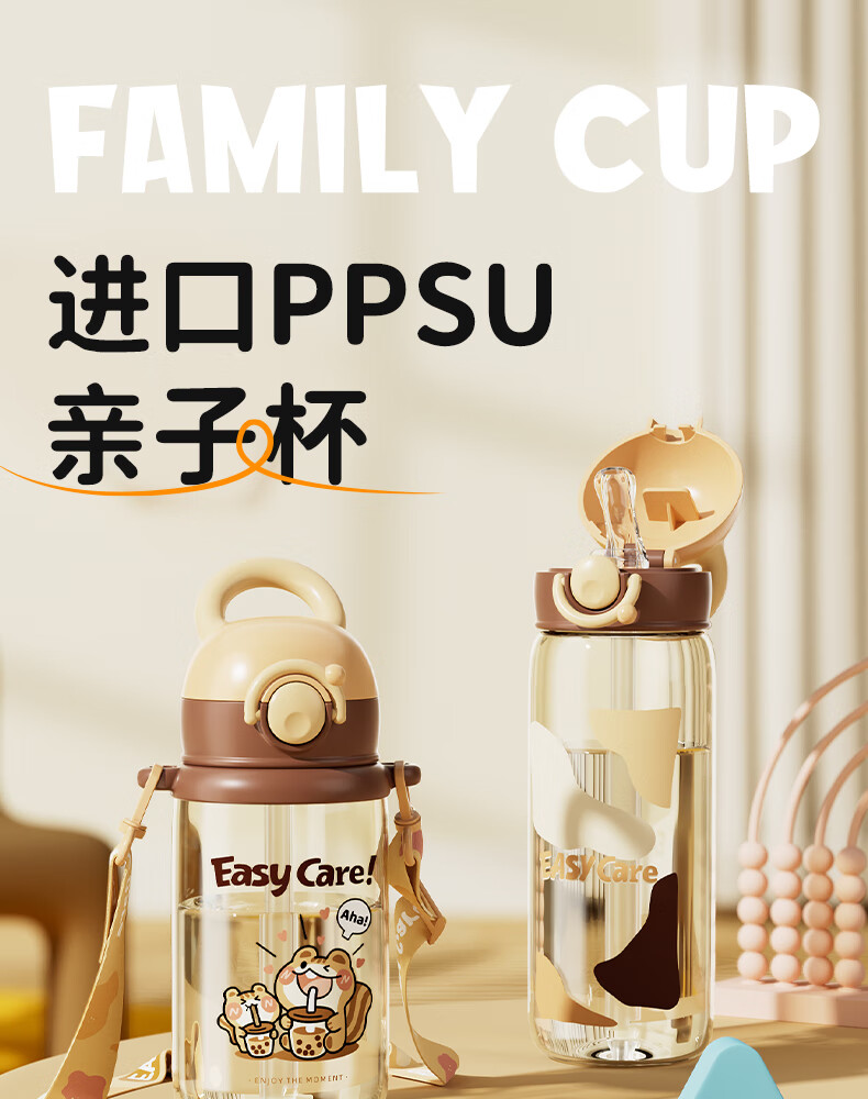 伊斯卡尔(EASYCare)儿童水杯带吸管杯子大人孕产孕妇上学专用ppsu水壶女生夏季直饮杯 栗棕【无背带】 600ml