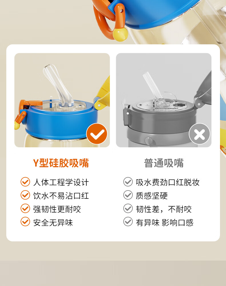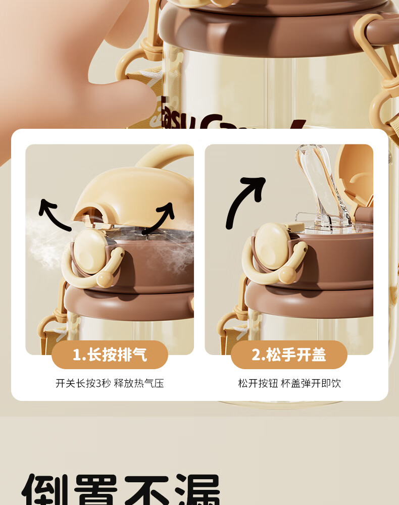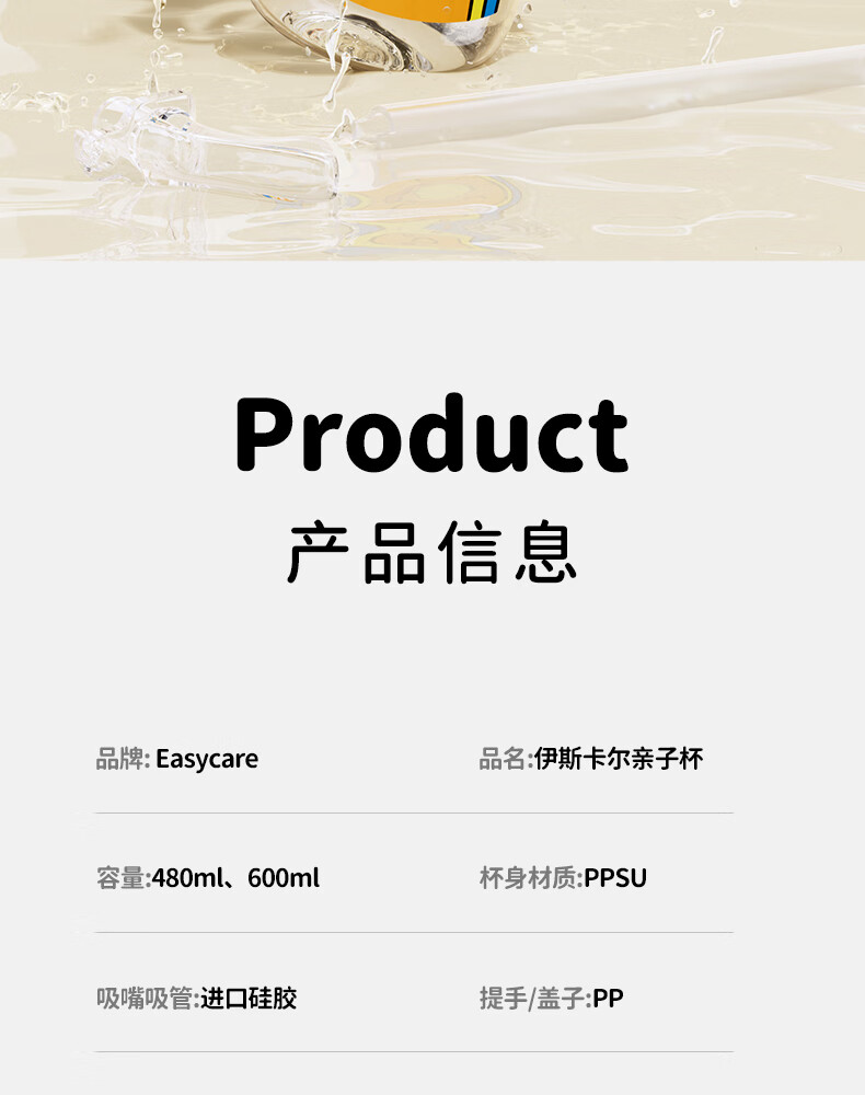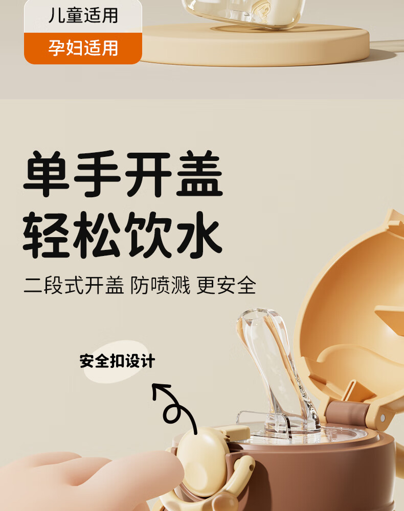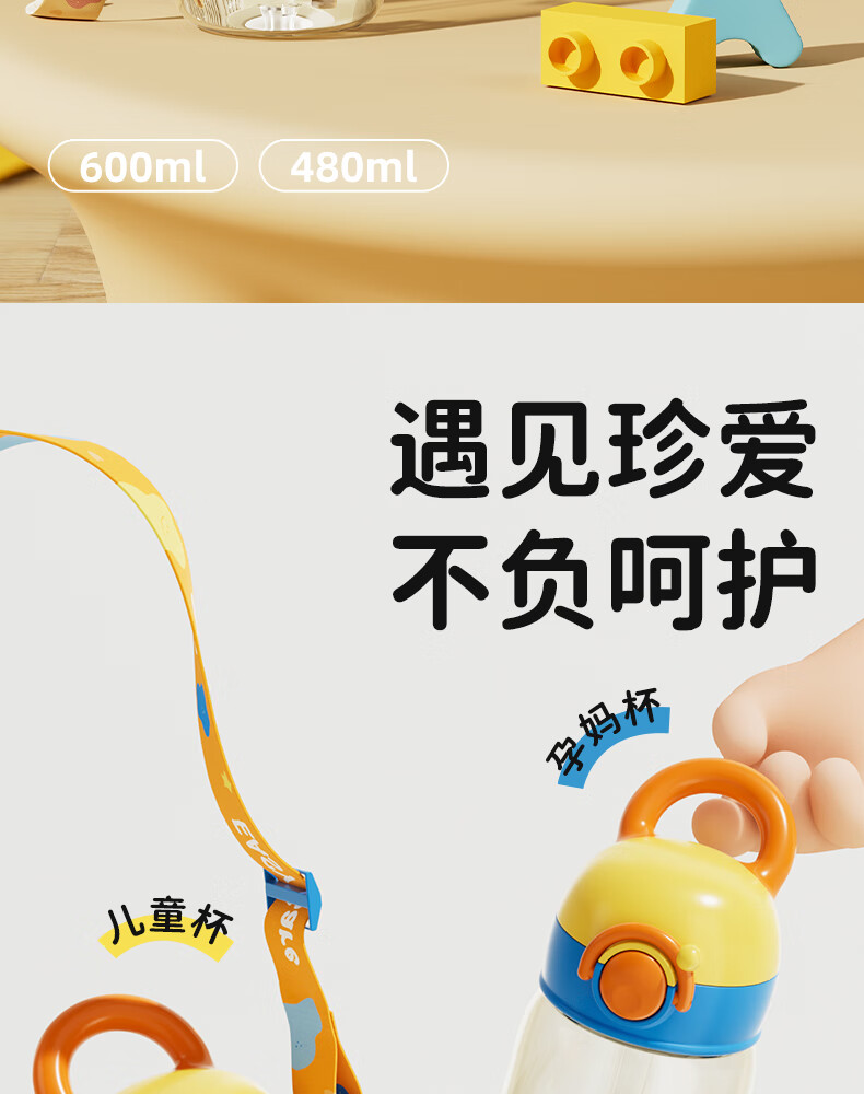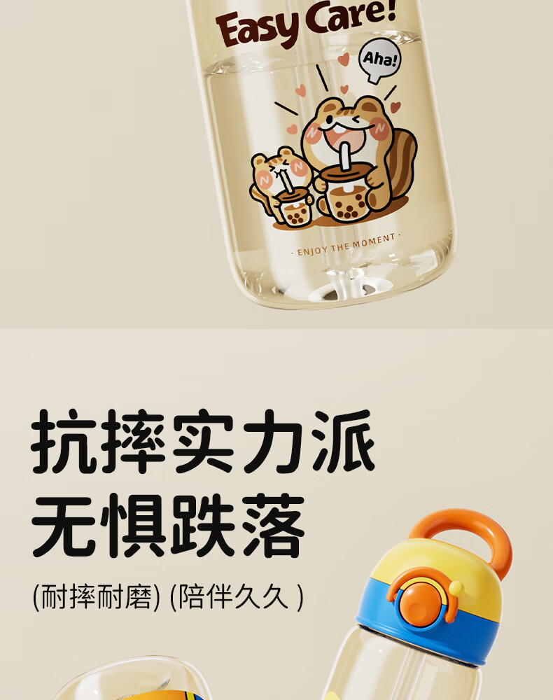 伊斯卡尔(EASYCare)儿童水杯带吸管杯子大人孕产孕妇上学专用ppsu水壶女生夏季直饮杯 栗棕【无背带】 600ml