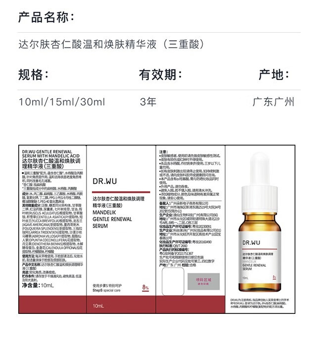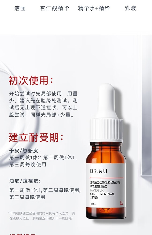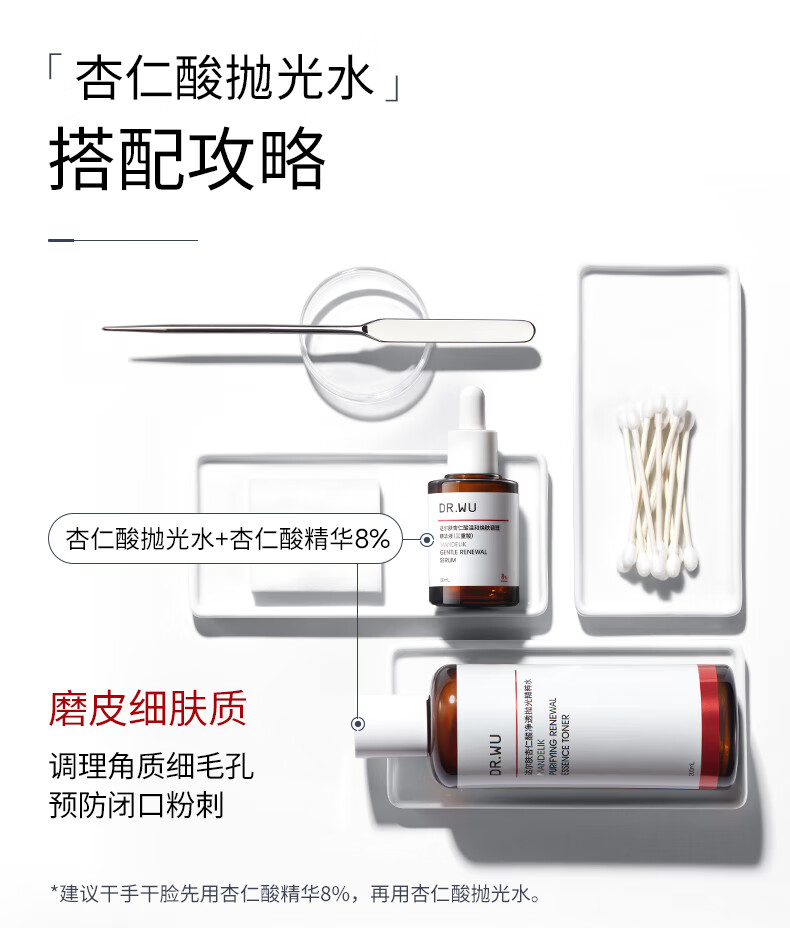 达尔肤(DR.WU)杏仁酸8%精华液抛光精粹水果酸水杨酸祛痘磨皮闭口2件套 抛光水200ml+杏仁酸精华8% 15ml