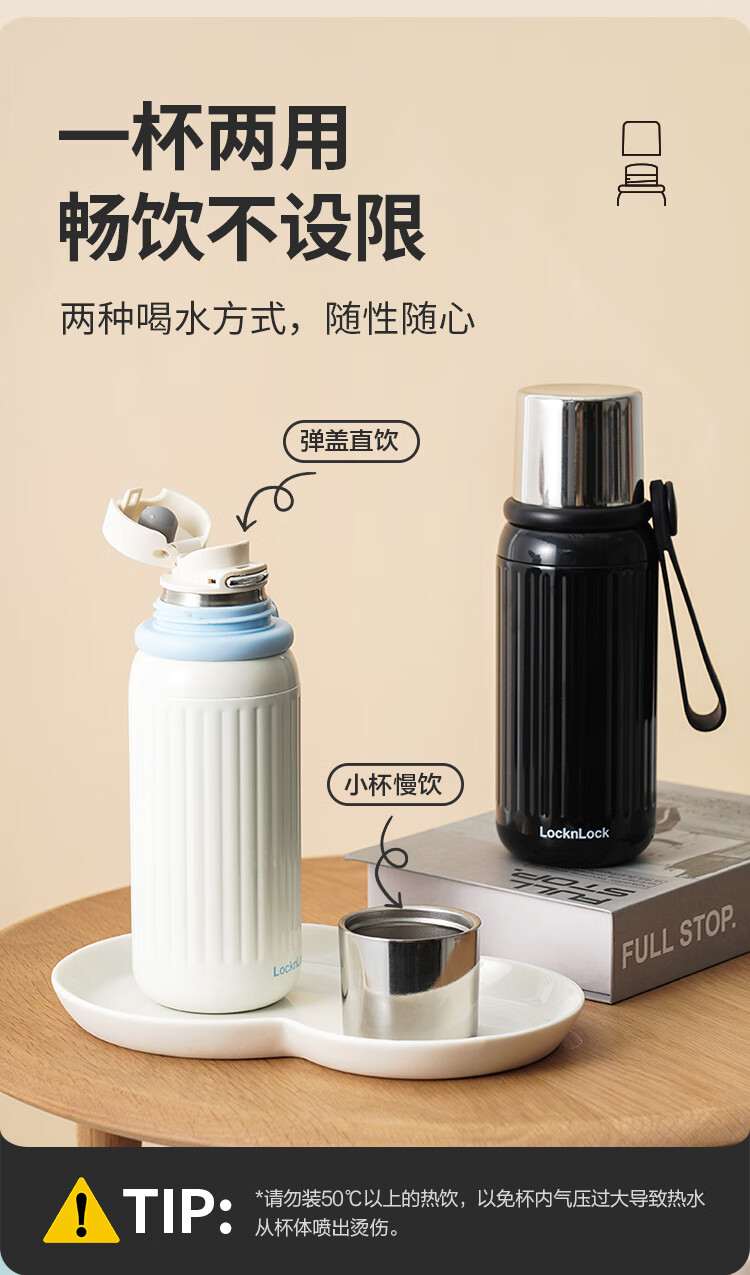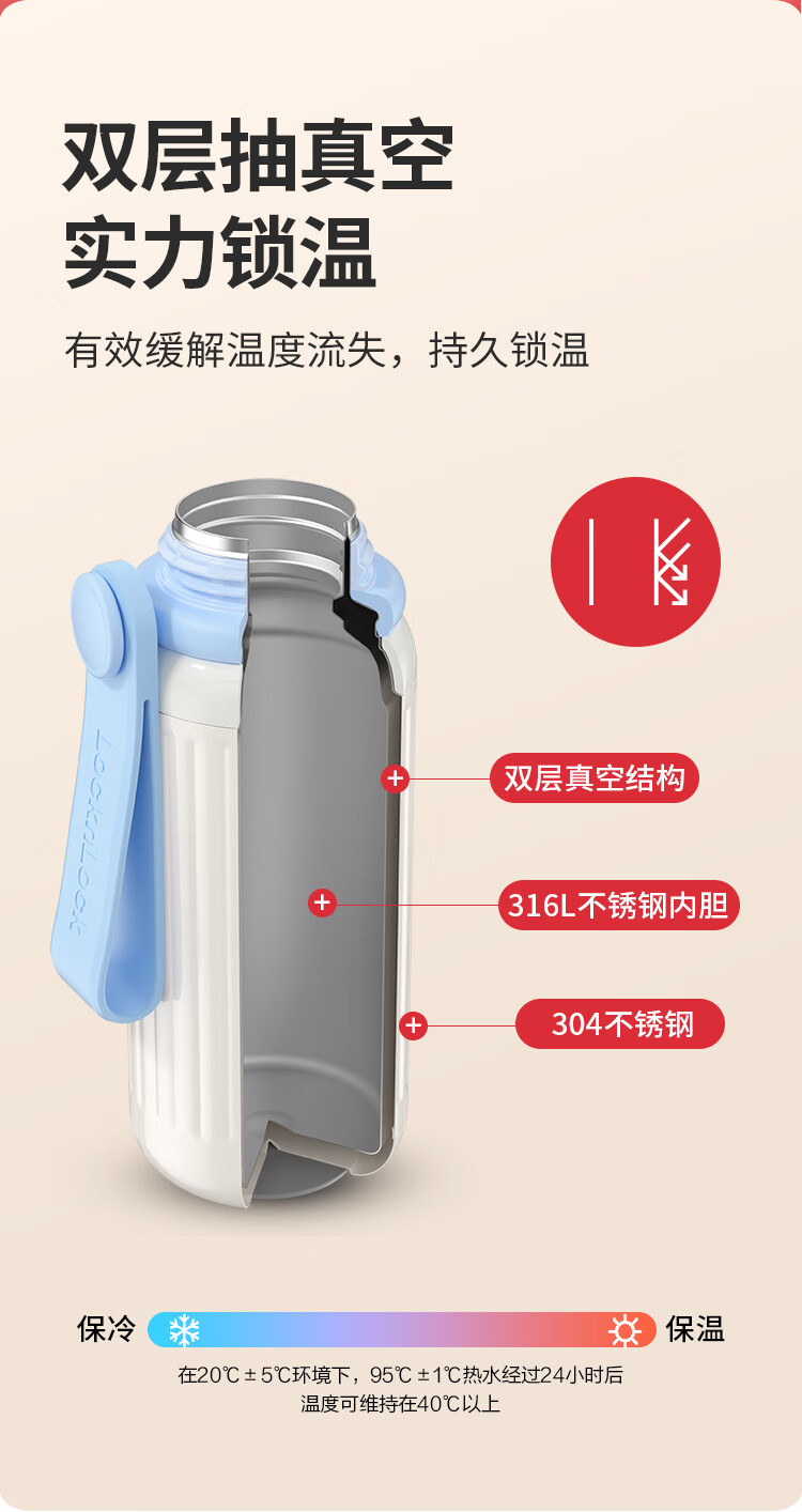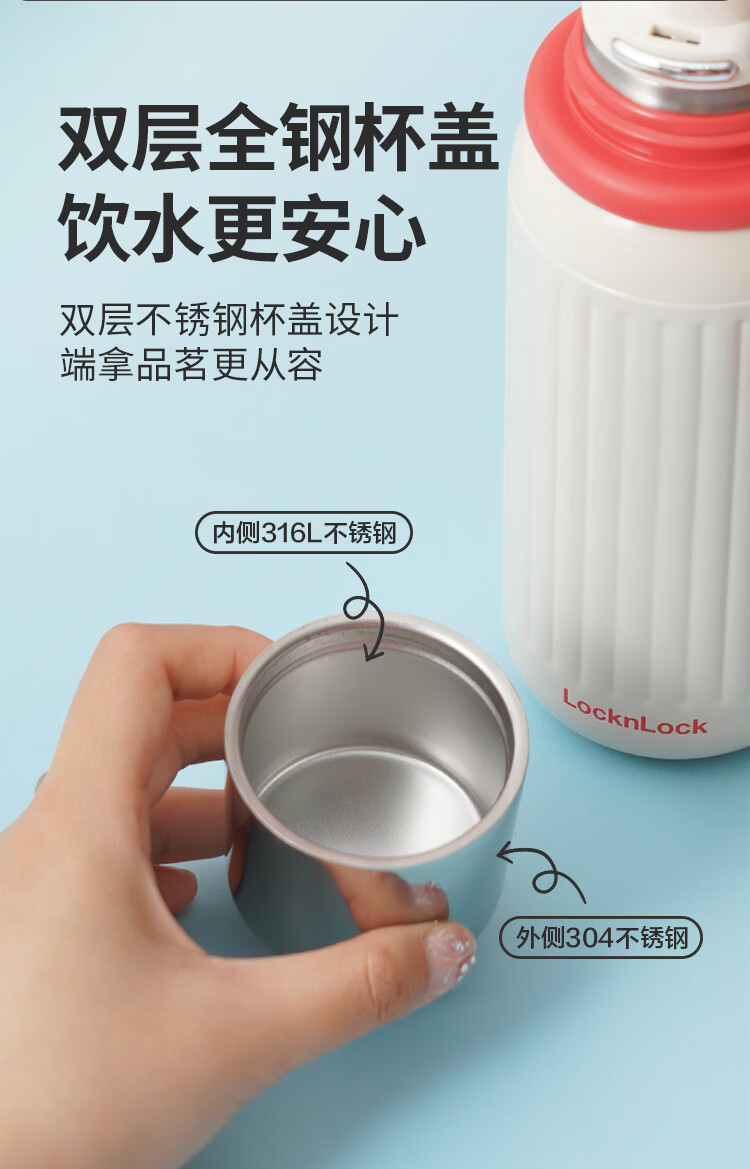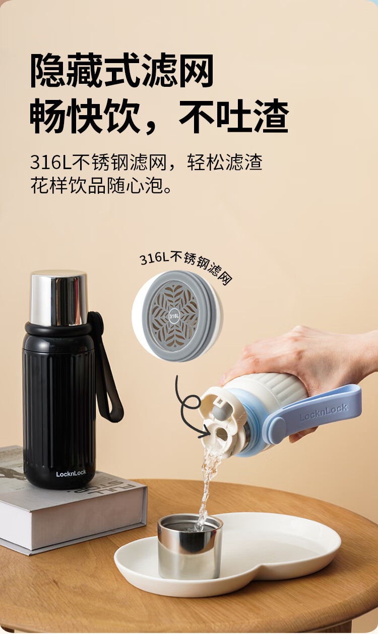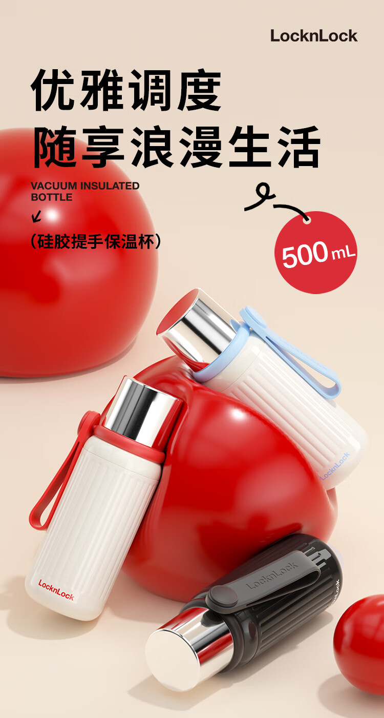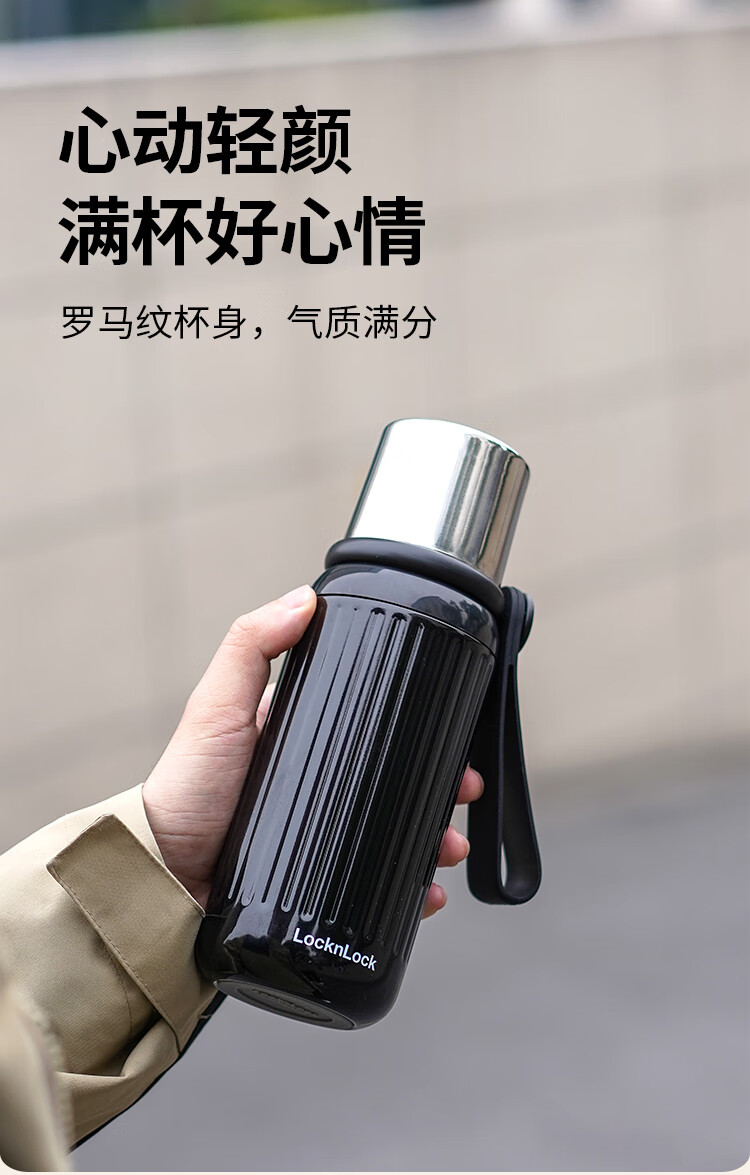 乐扣乐扣保温杯316L不锈钢高颜值茶水杯学生保温保冷水杯 黑色 500ml