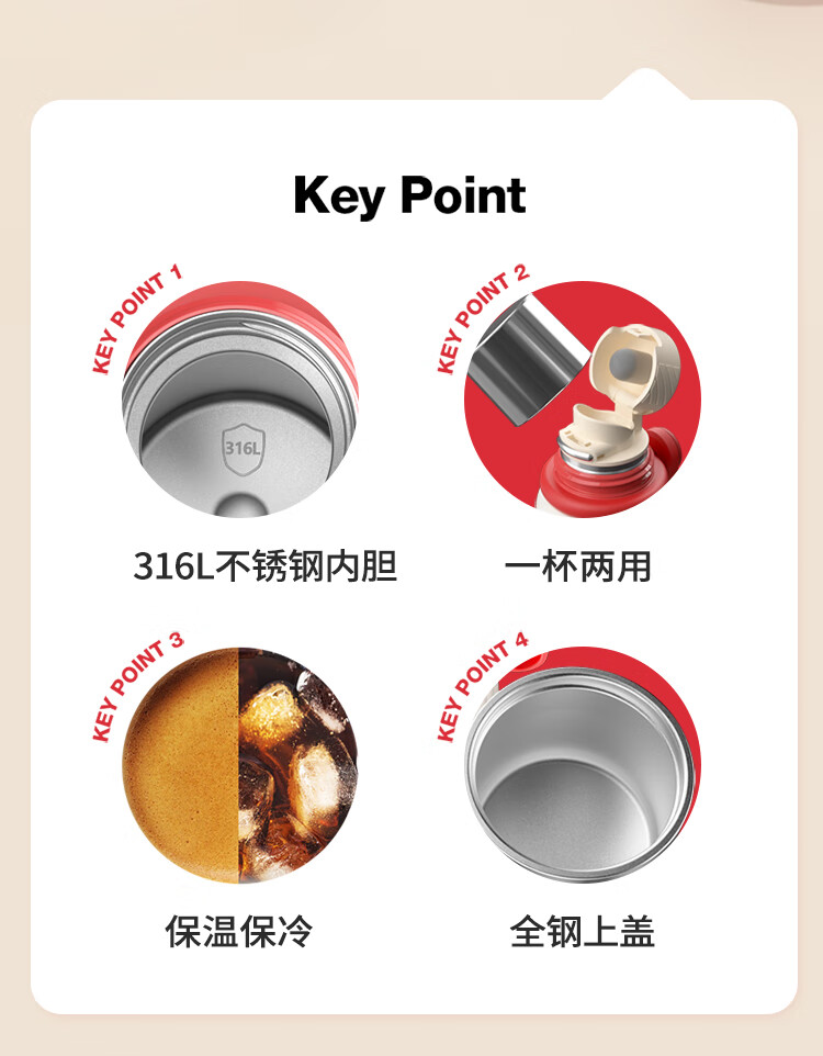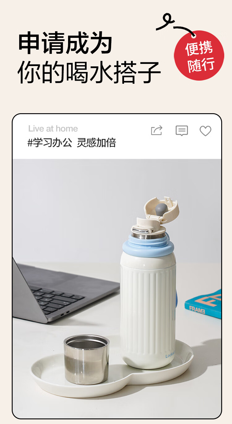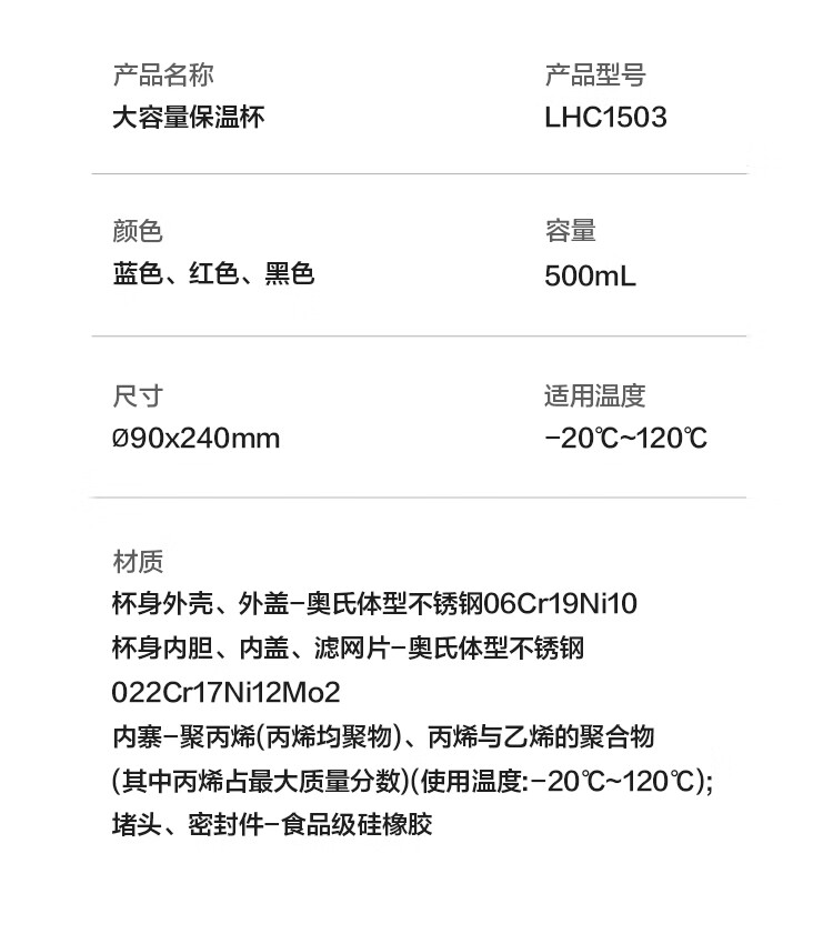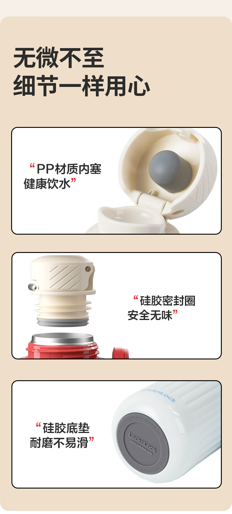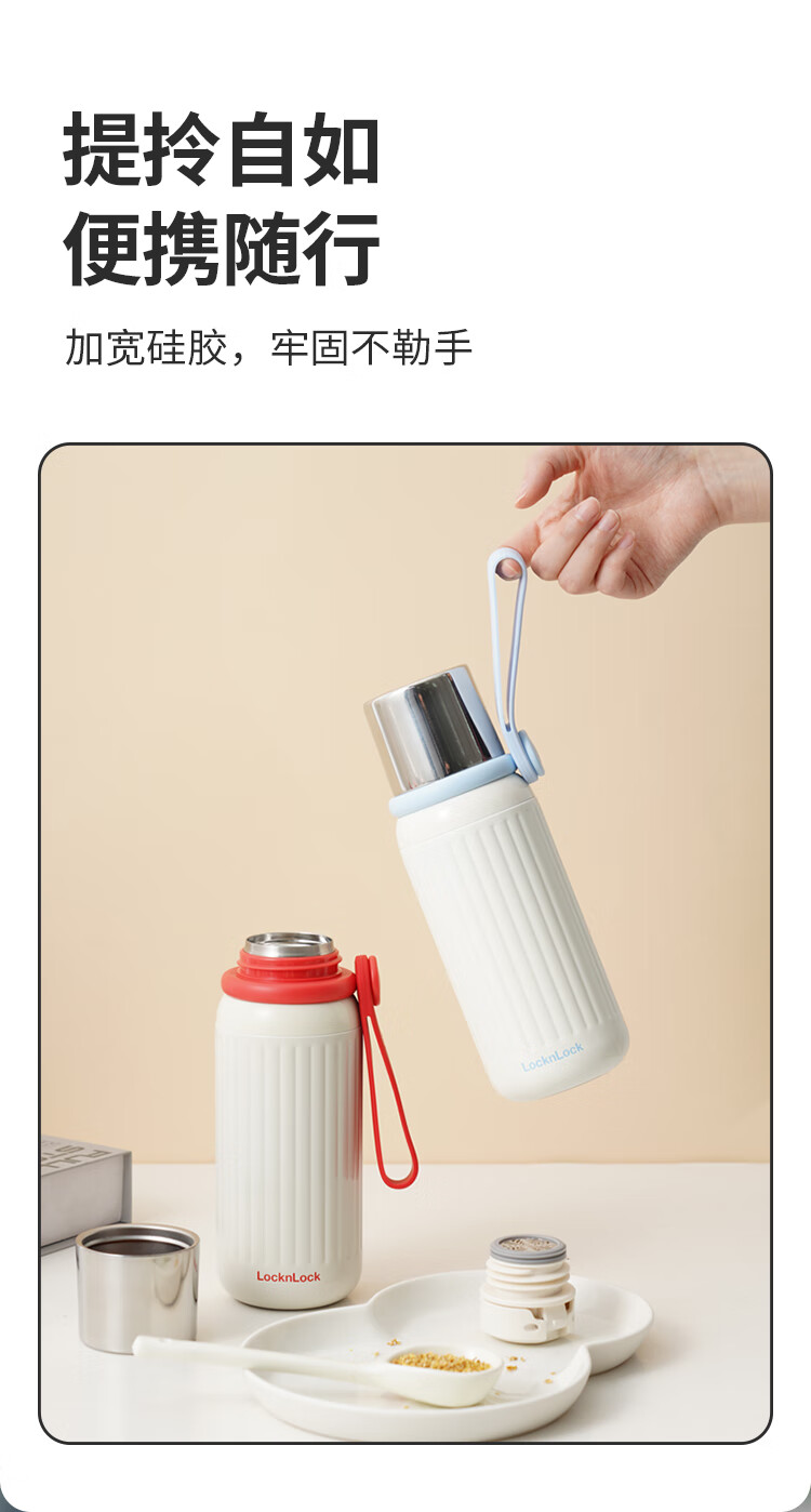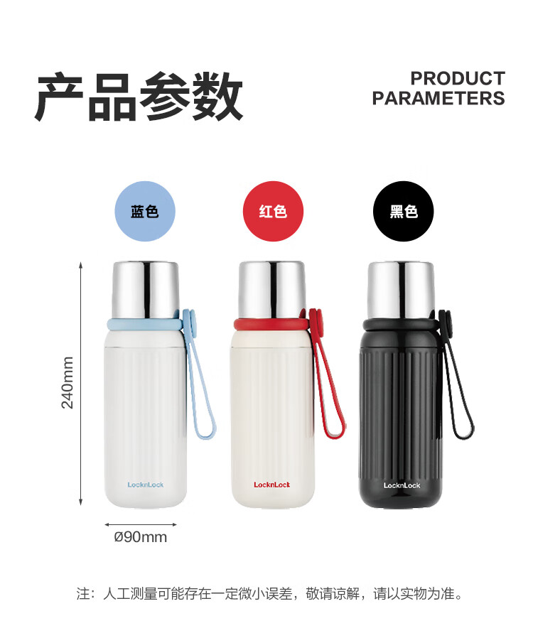 乐扣乐扣保温杯316L不锈钢高颜值茶水杯学生保温保冷水杯 黑色 500ml
