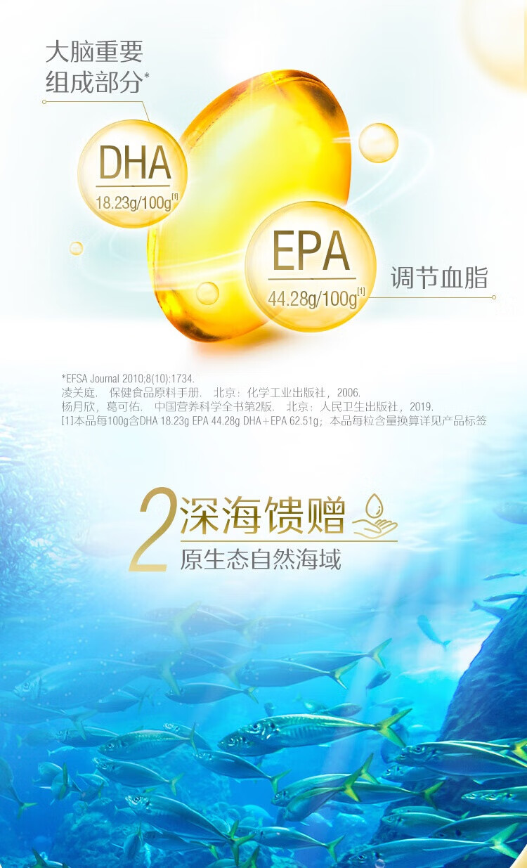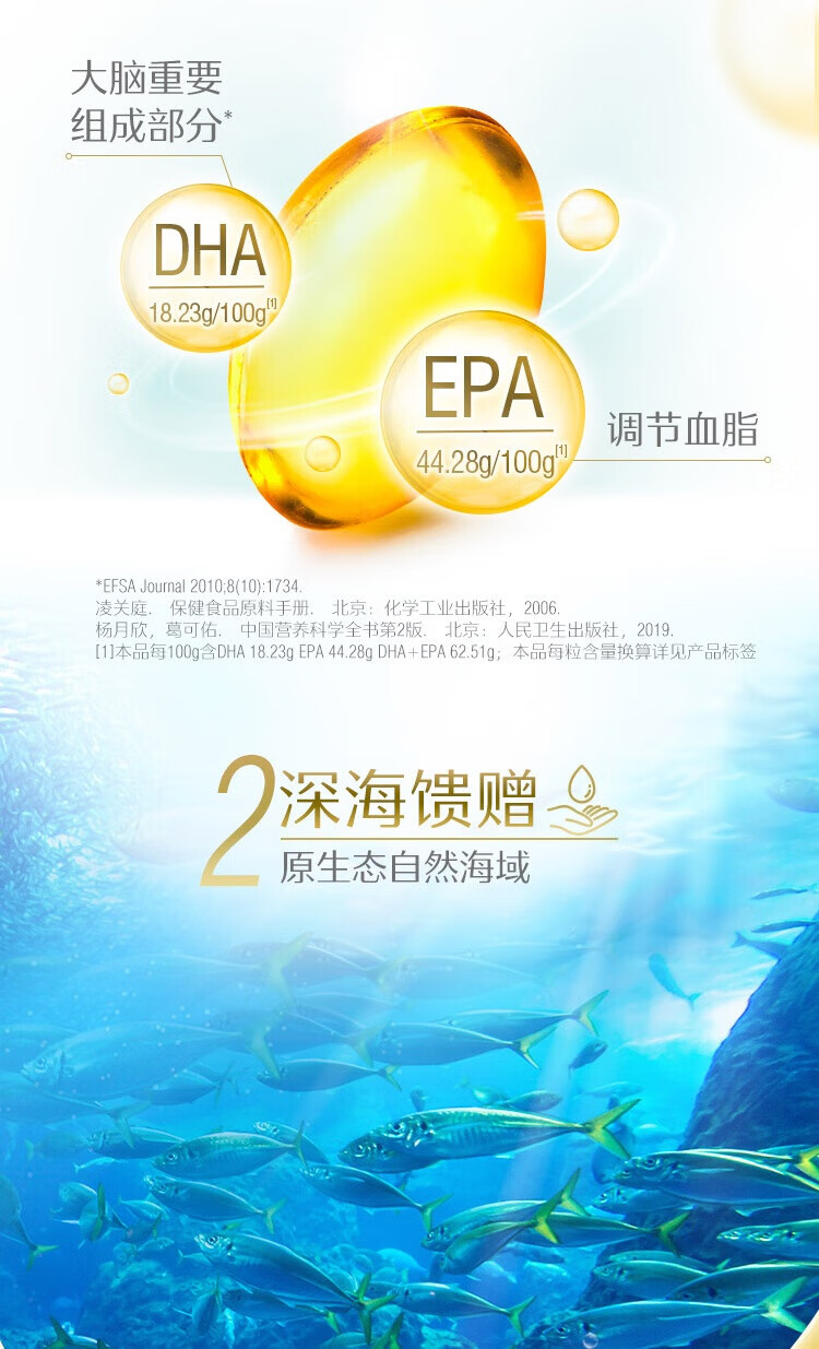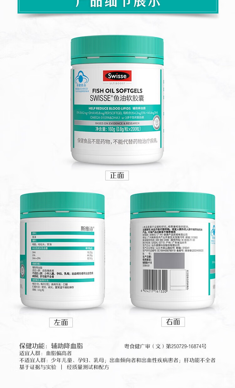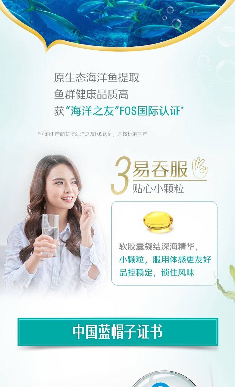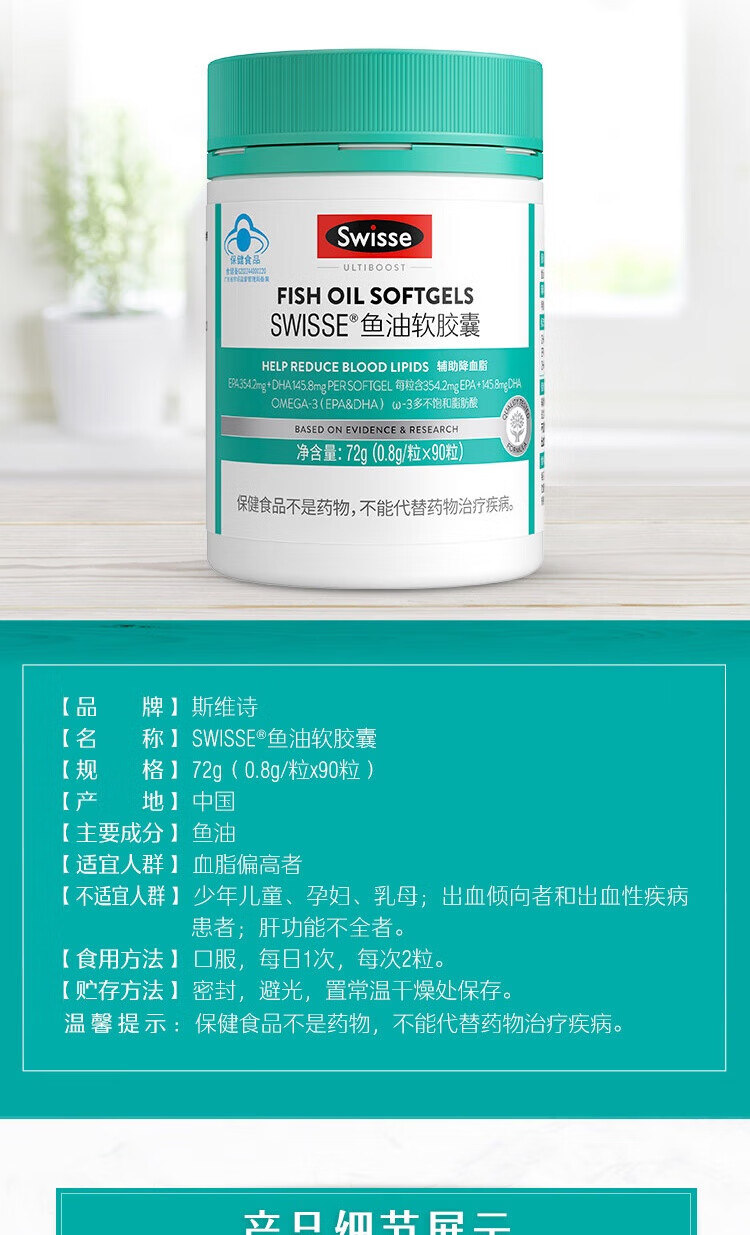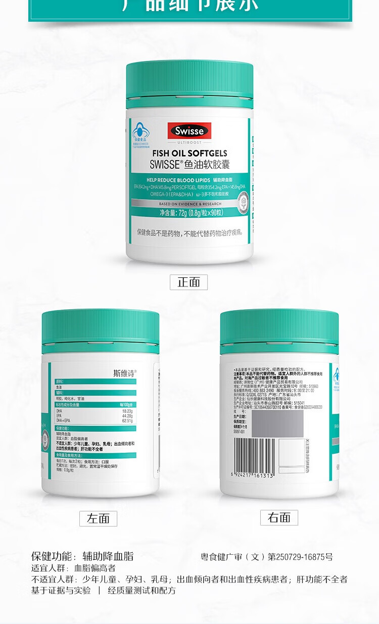 Swisse斯维诗 鱼油软胶囊 深海高浓度鱼油 含Omega3 EPA DHA 蓝帽认证 【辅助降血脂】0.8g/粒*90粒*1罐