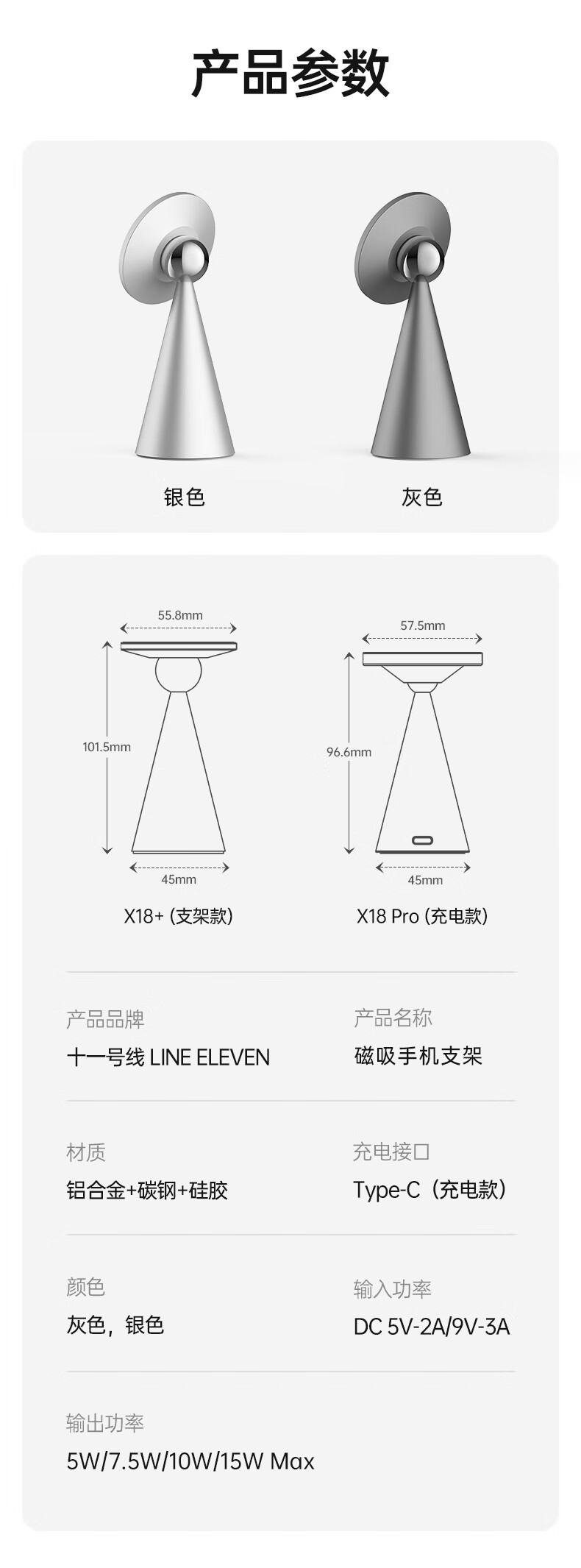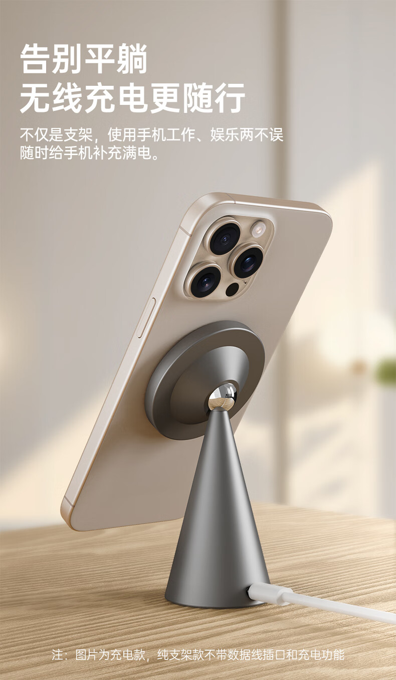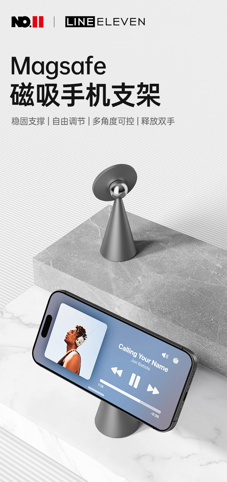 十一号线磁吸手机支架 桌面床头多功能架磁吸式懒人落地追剧Magsafe快充通用 X18Pro充电款(灰色)