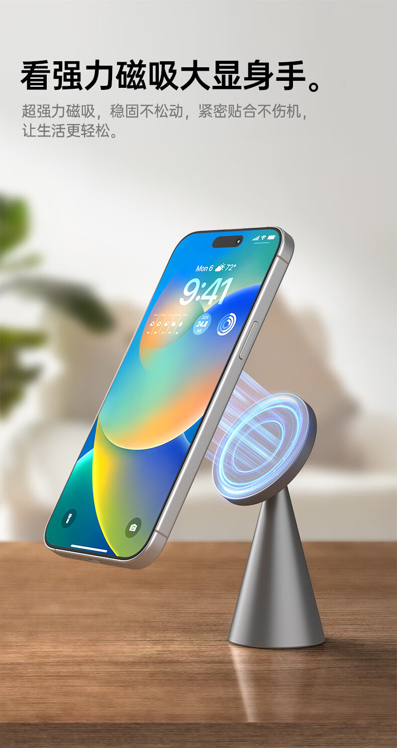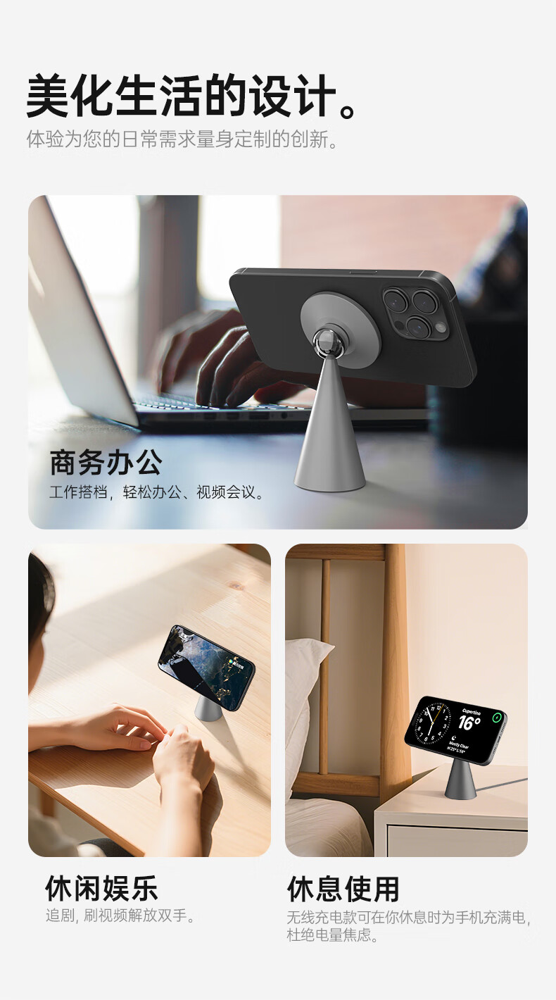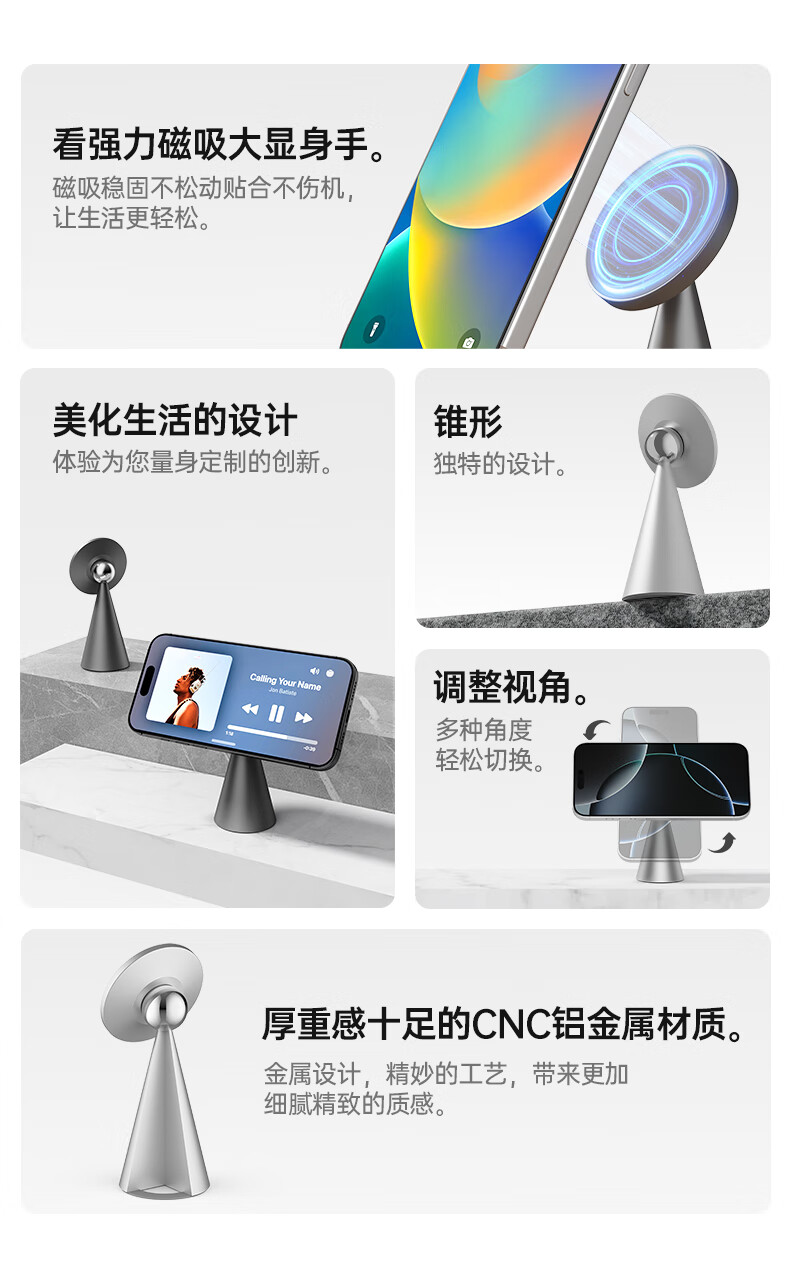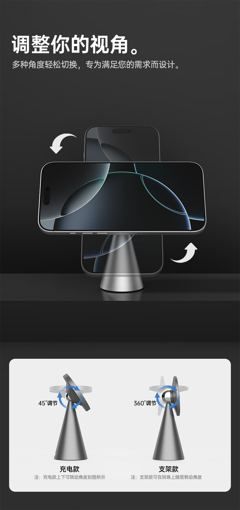 十一号线磁吸手机支架 桌面床头多功能架磁吸式懒人落地追剧Magsafe快充通用 X18Pro充电款(灰色)