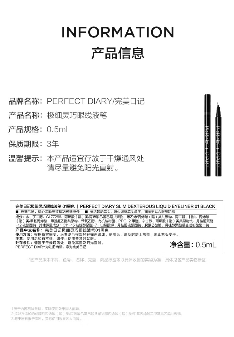 完美日记(PERFECT DIARY)锁色精细纤细持久眼线液笔精准勾勒旅行便携新年礼物送女友 【纤细0.1mm】01黑色