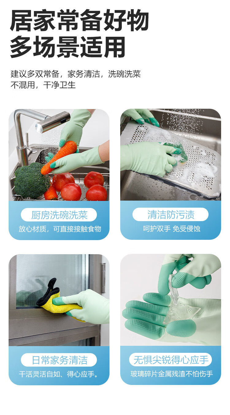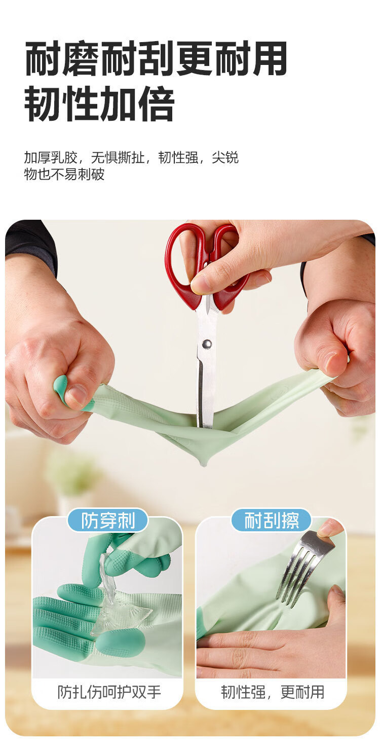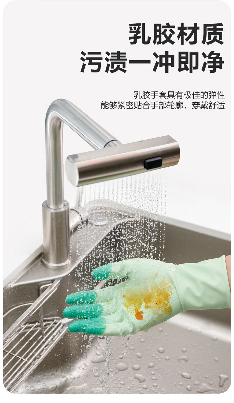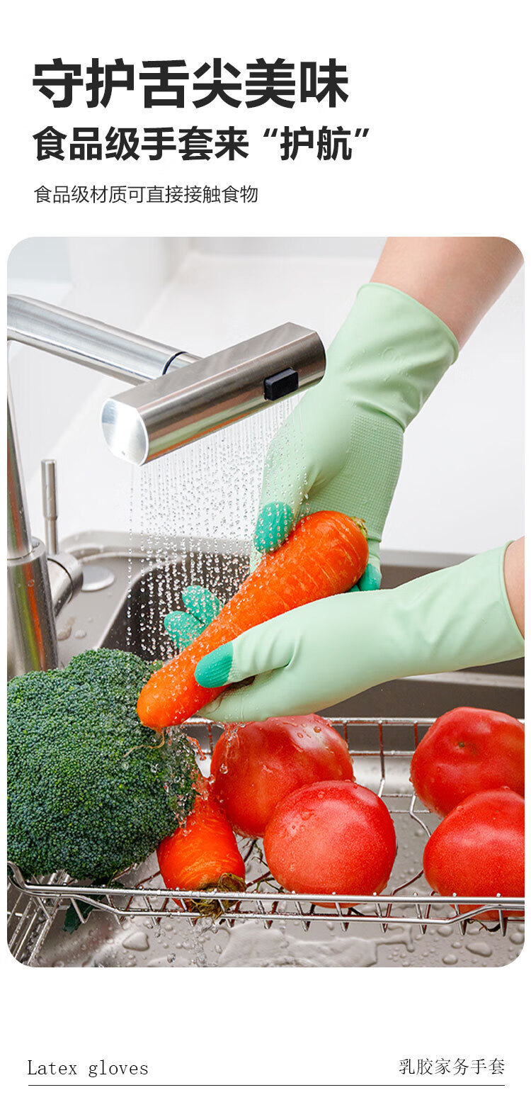 恬舒高弹力柔软乳胶洗碗手套乳胶橡胶洗衣服防水防油厨房居家清洁 缤彩绿 L