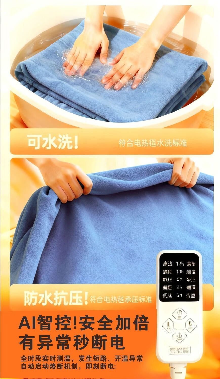 电热毯单人双人智能定时恒温安全速热宿舍防潮除螨家用电褥子 高低档小单人床-长1.5米宽0.7米