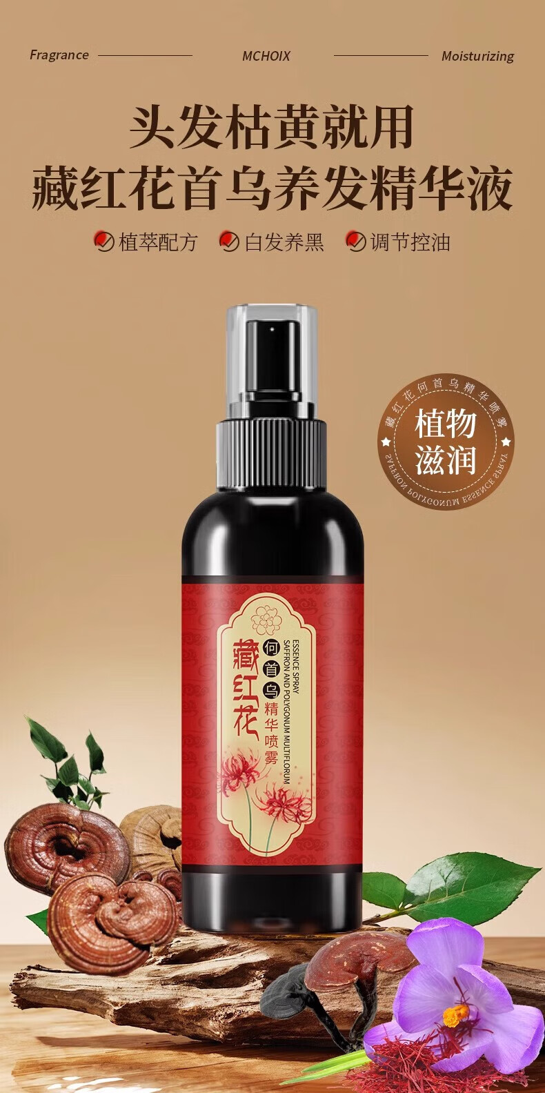 万里目旗舰店藏红花何首乌精华喷雾黑发养发护发精油液免洗持久保湿滋润 【深度改善】100ml*2瓶