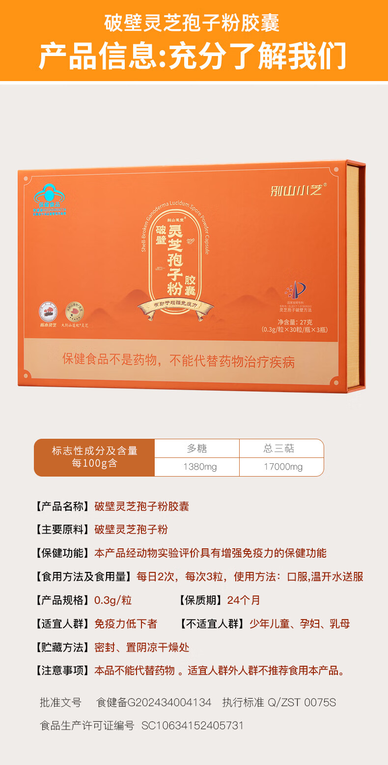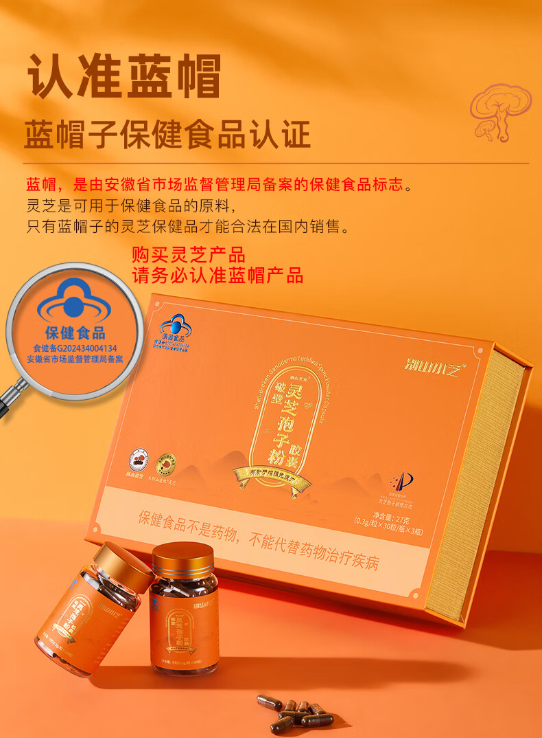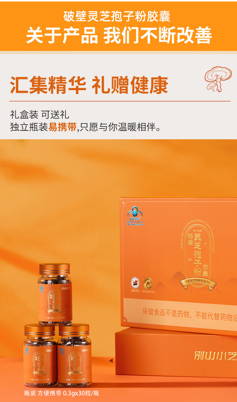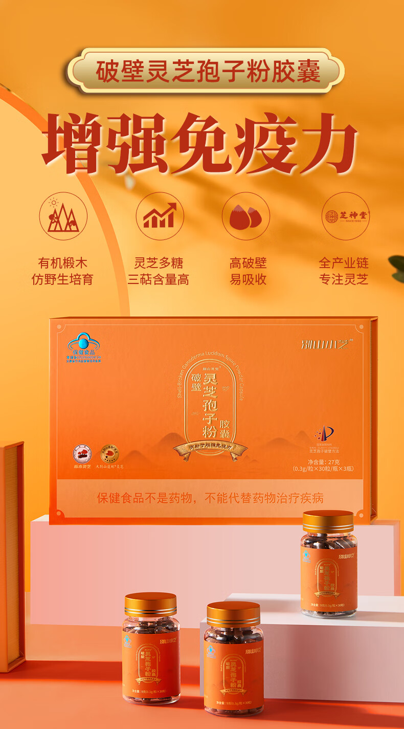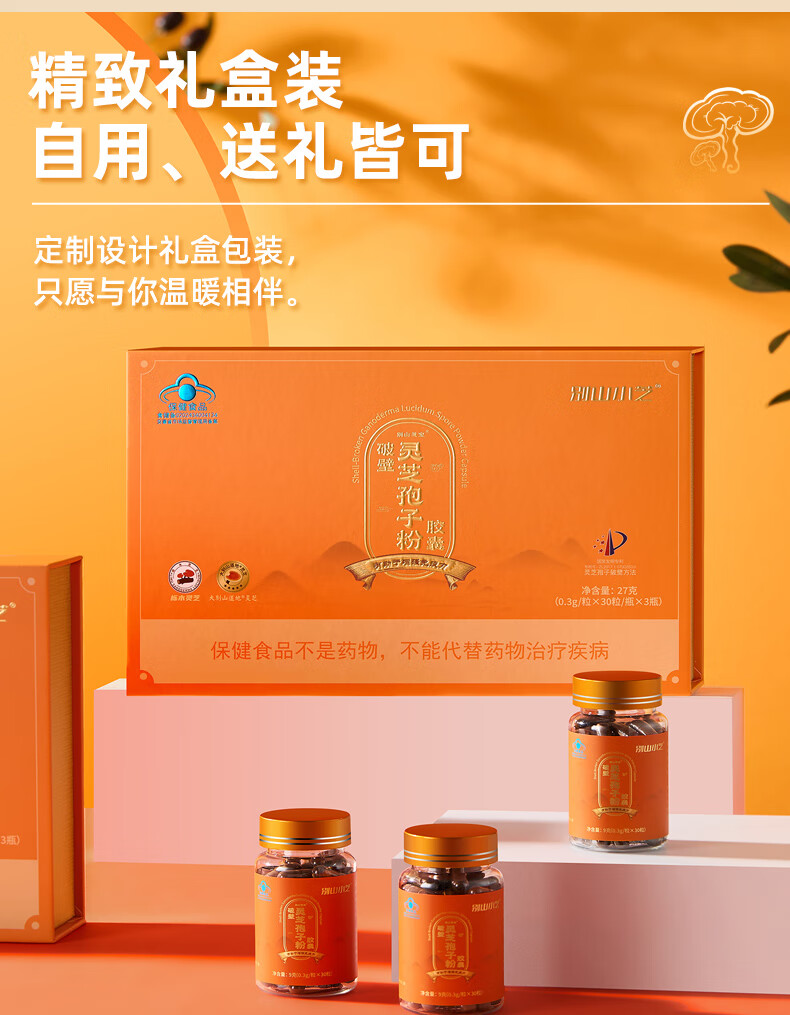 芝神堂【健康礼】破壁灵芝孢子粉有机栎木灵芝孢子粉胶囊保健品礼物礼盒 3瓶礼盒装