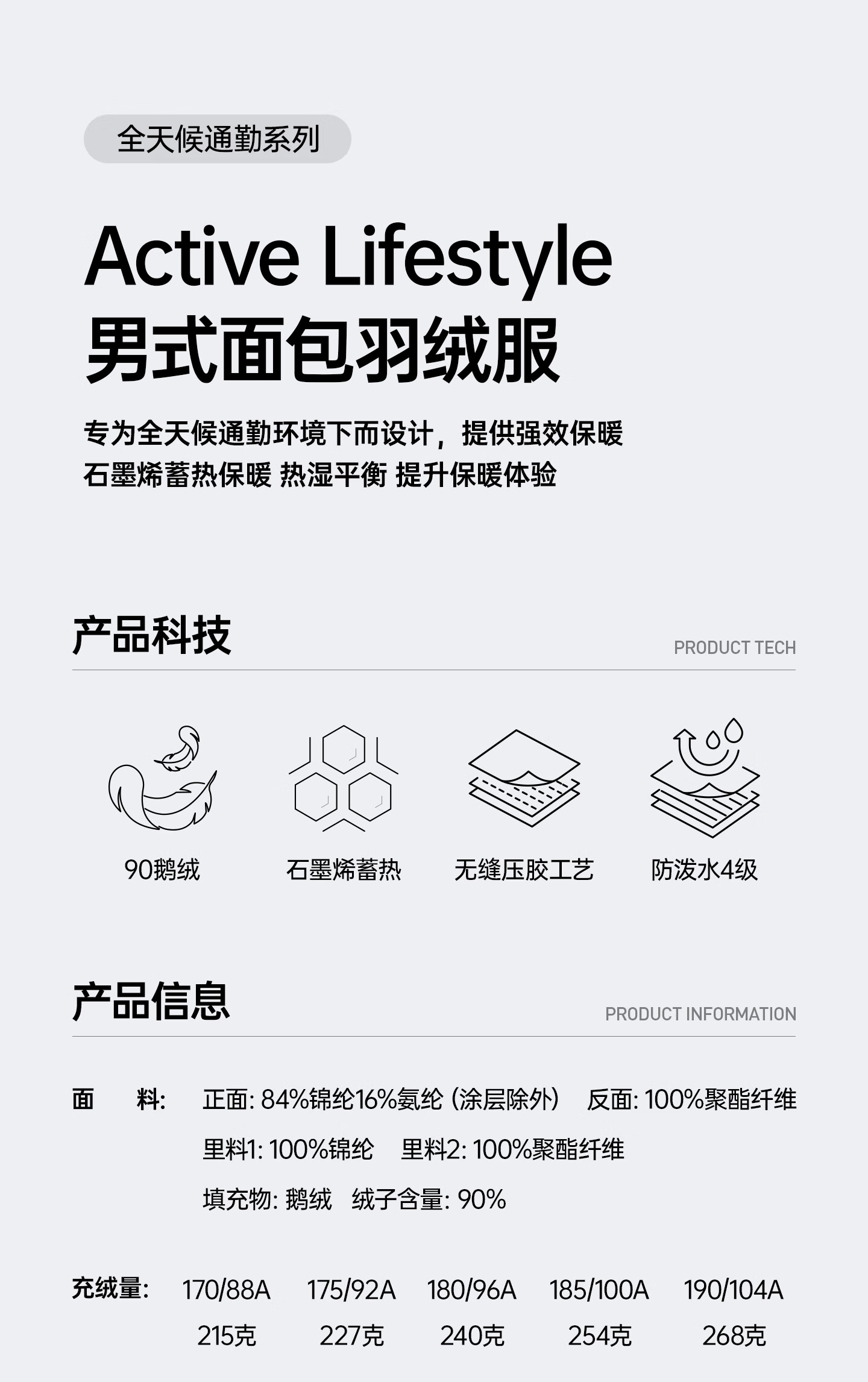 HALTI哈尔迪男士90鹅绒石墨烯蓄热防泼水鹅绒羽绒服HDTEA510628SC 暗宝石蓝 M 170/88A