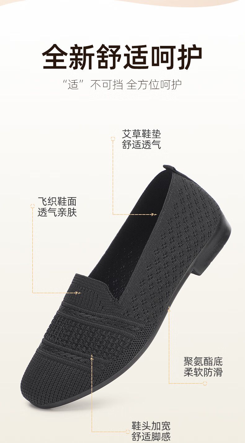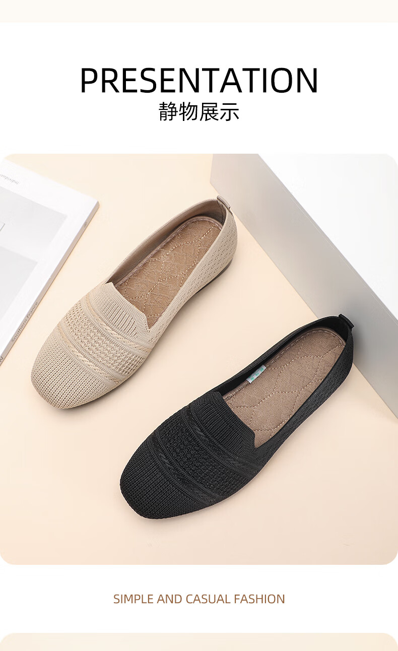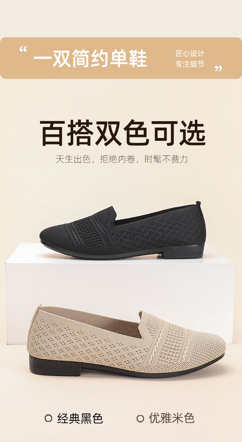 一兜老北京布鞋女单鞋春秋新款时尚一脚蹬软底上班工作鞋飞织豆豆鞋 米色20163 36